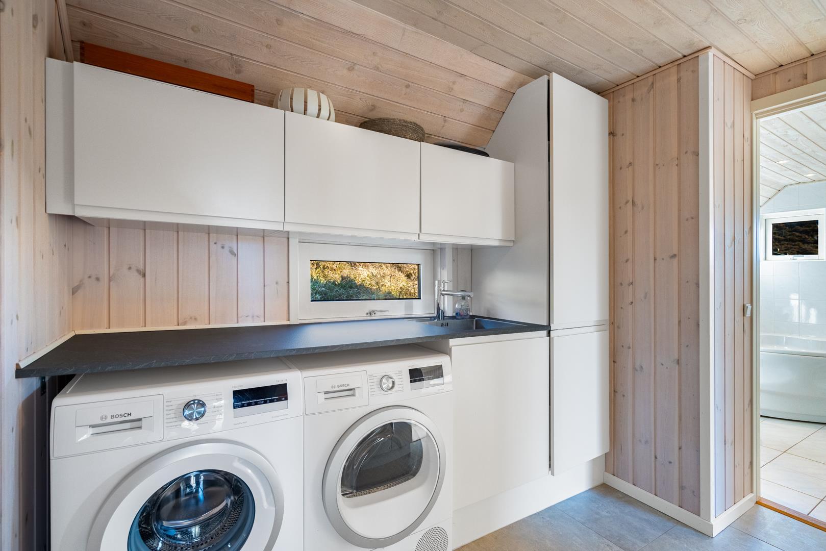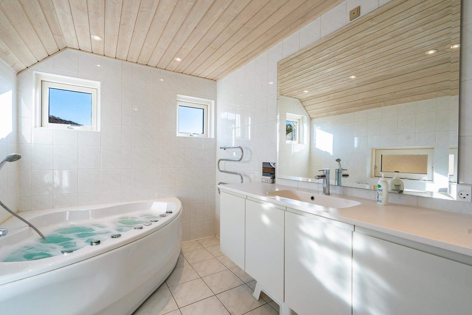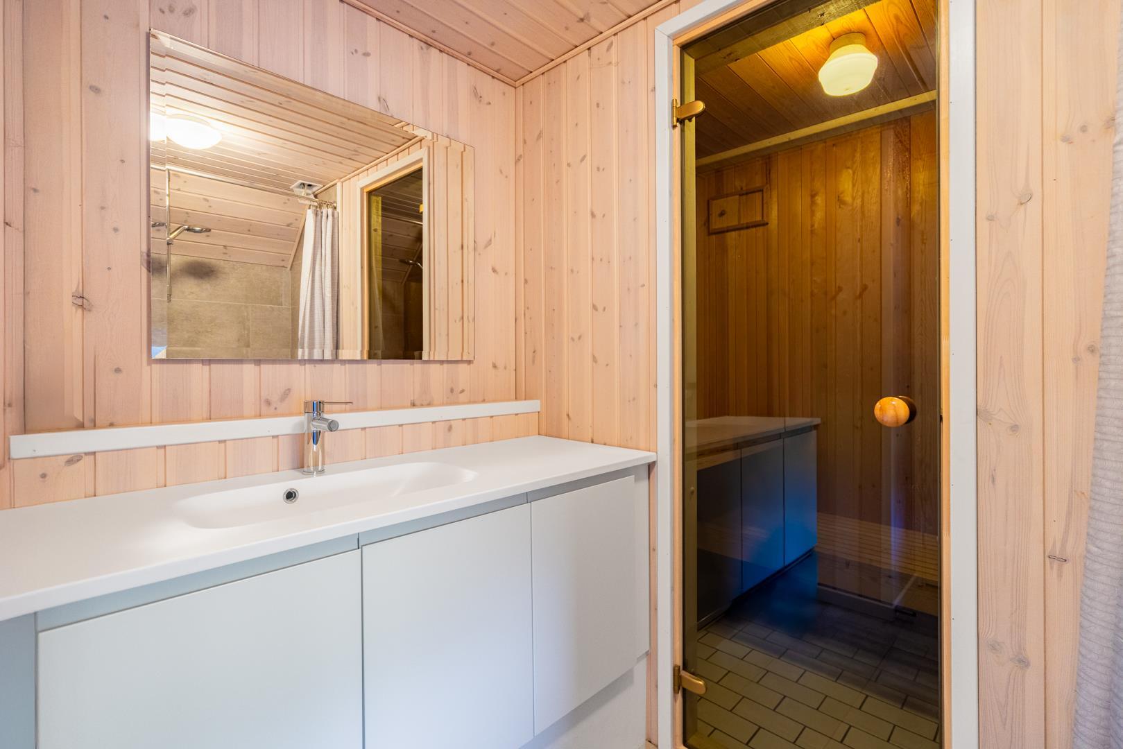 To badeværelser med gulvvarme sikrer høj komfort. Sauna og spa gør sommerhuset til et ægte wellness-sommerhus i Henne Strand – perfekt efter stranddage eller lange gåture.
