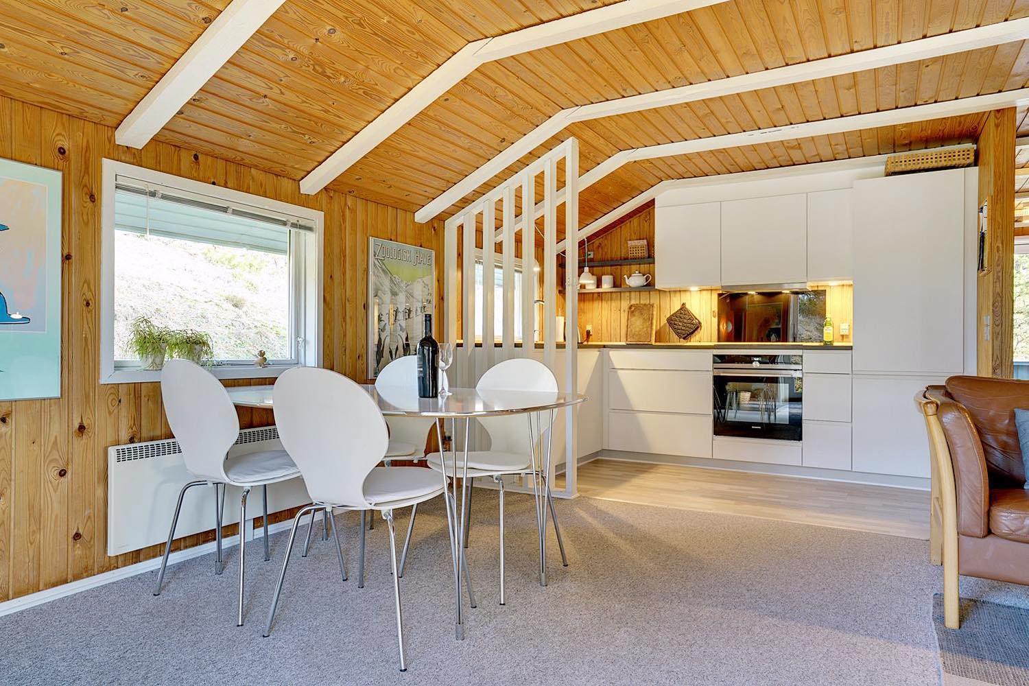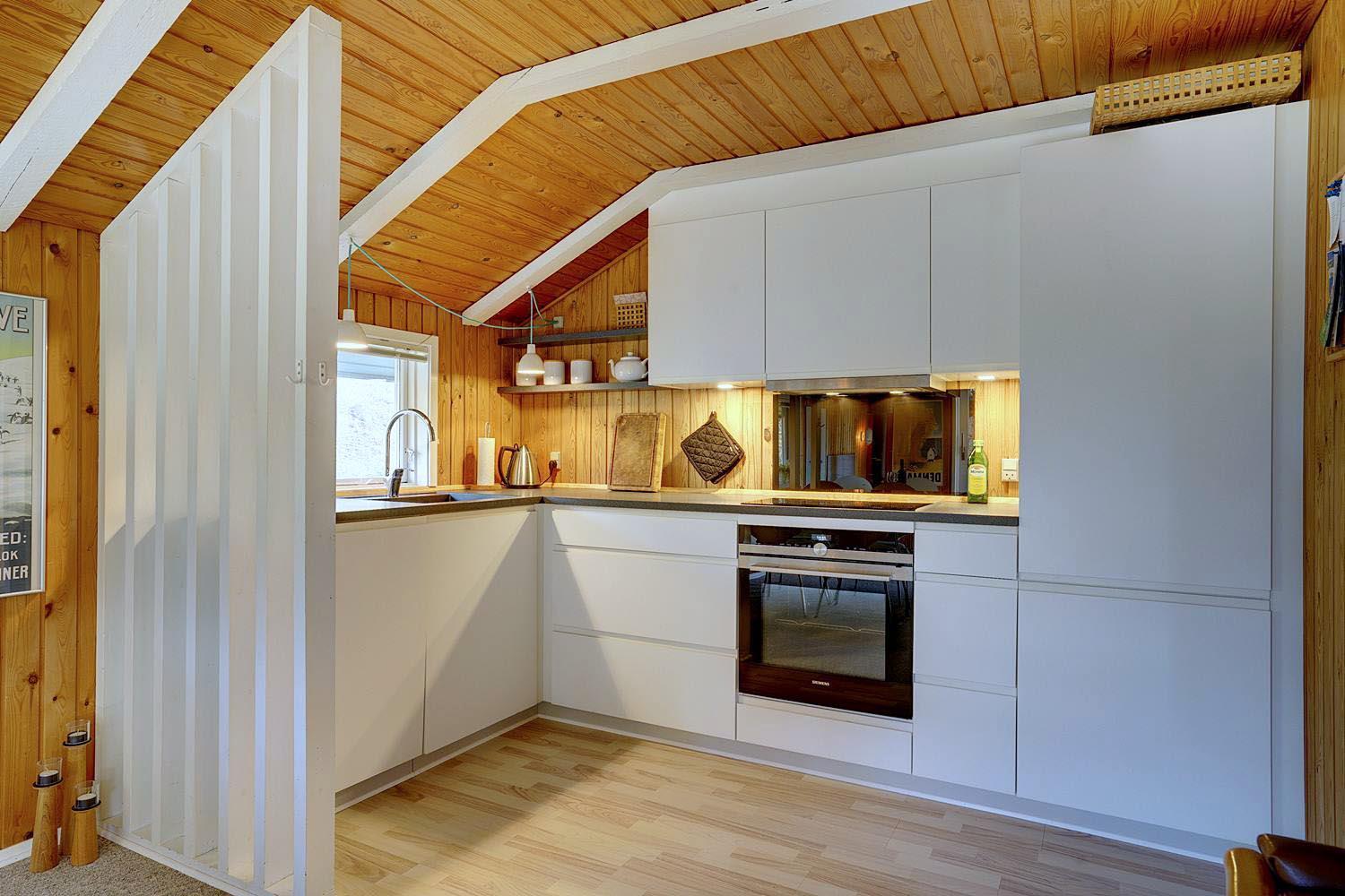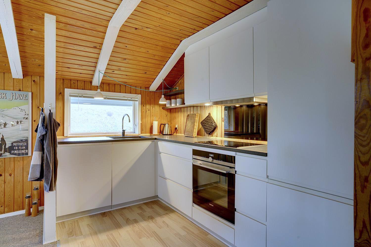 Dette dejlige, meget vedligeholdte feriehus med flere gode terrasser, hvoraf en er delvis overdækket, er beliggende på en ugeneret klitgrund. Huset er hyggeligt indrettet med køkken/alrum i åben forbindelse til pænt møbleret stue med brændeovn. Nyere badeværelse samt køkken.
