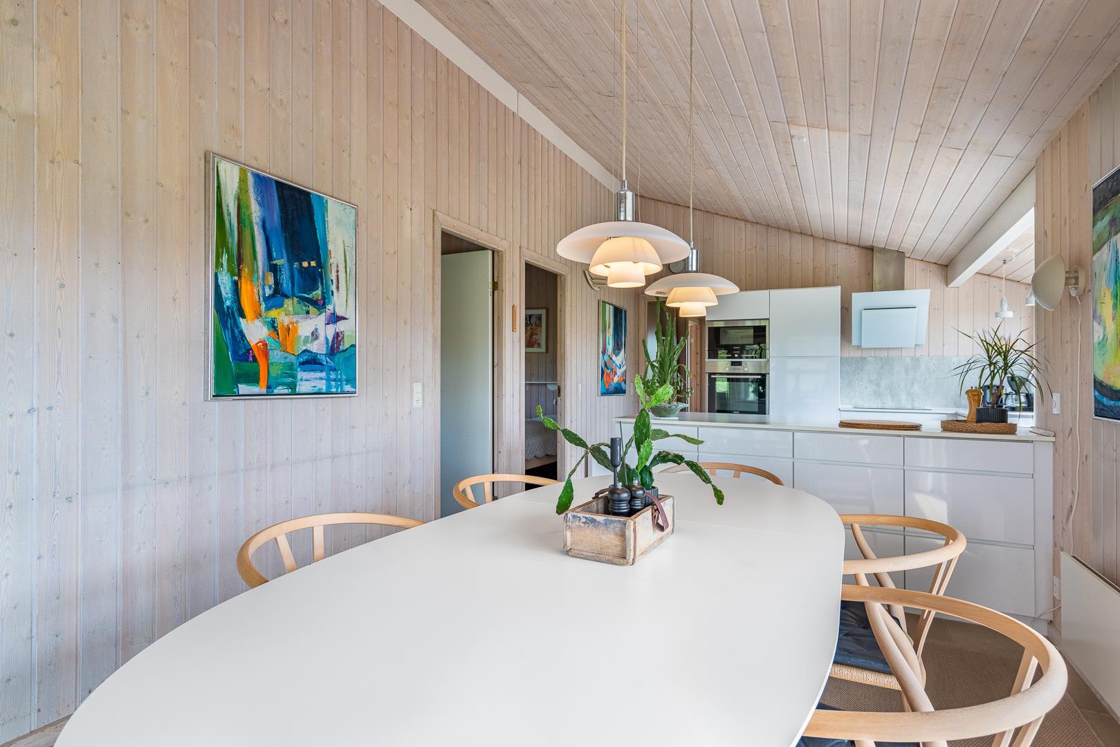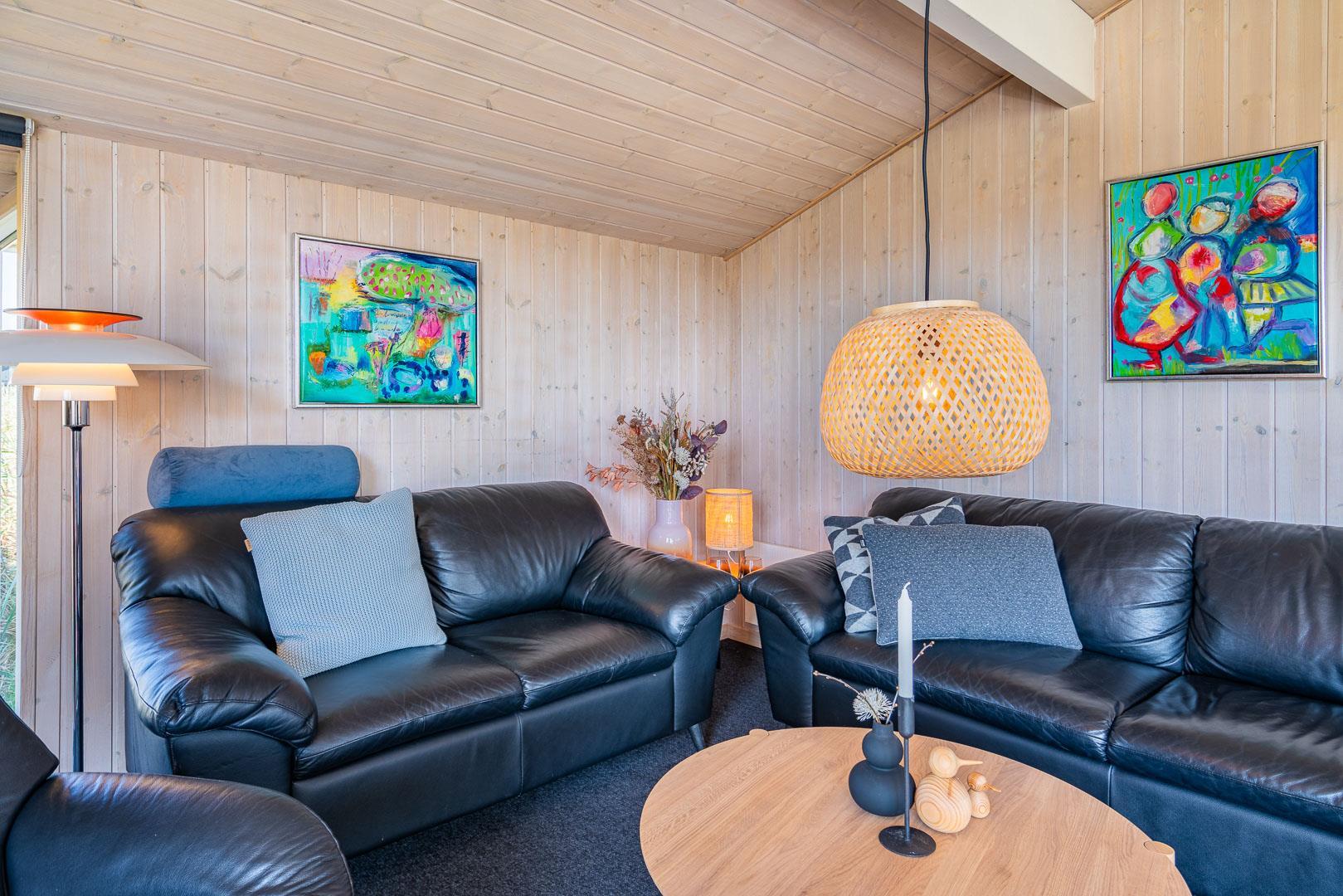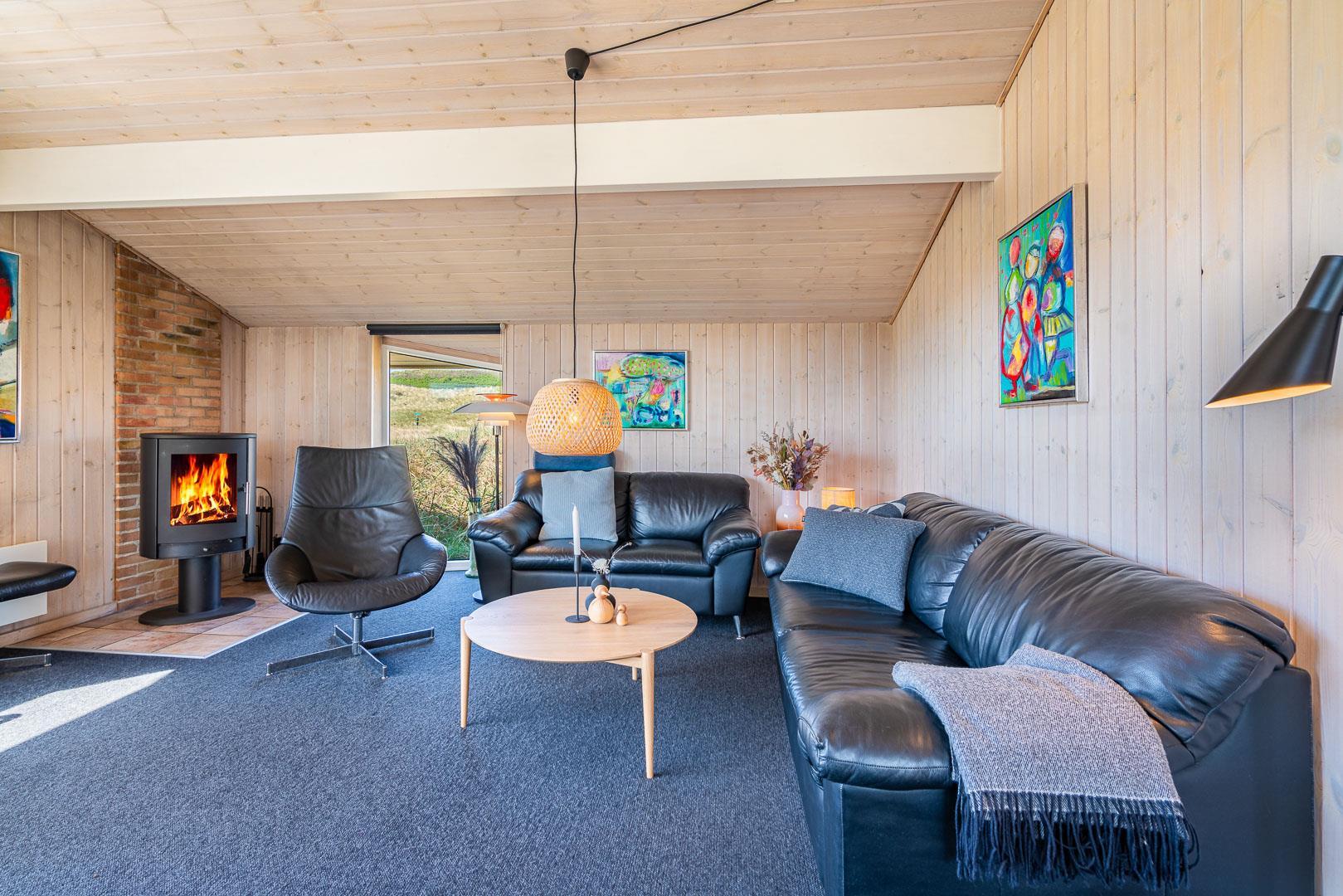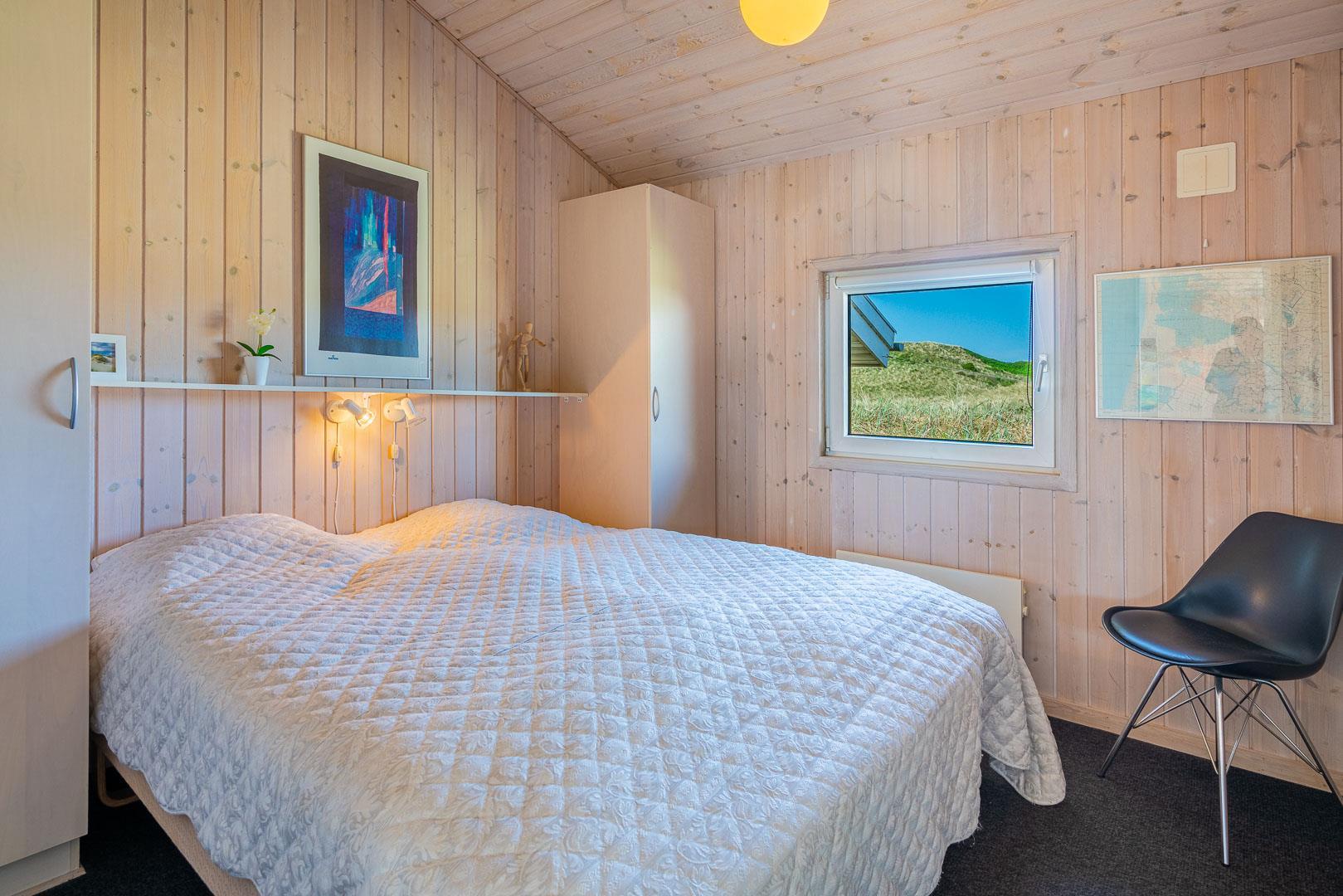 På en stor flot naturgrund ligger dette velpassede feriehus helt ugeneret og med pragtfuld udsigt over det fredede klitområde. Nyere køkken med åben forbindelse til den velmøblerede stue. 3 gode soverum som er udstyrede med boksmadrasser. Nyt flot badeværelse med badekar og sauna, samt ekstra WC i forbindelse med det ene soverum. Tre terrasser omkranser huset, så udelivet og den skønne udsigt kan nydes hele dagen. Fra køkken/spiseafdeling er der direkte udgang til terrasse hvoraf den ene er overdækket. . Et 'super-hus', hvor rammerne er til stede for en rigtig god ferie - hele året.
