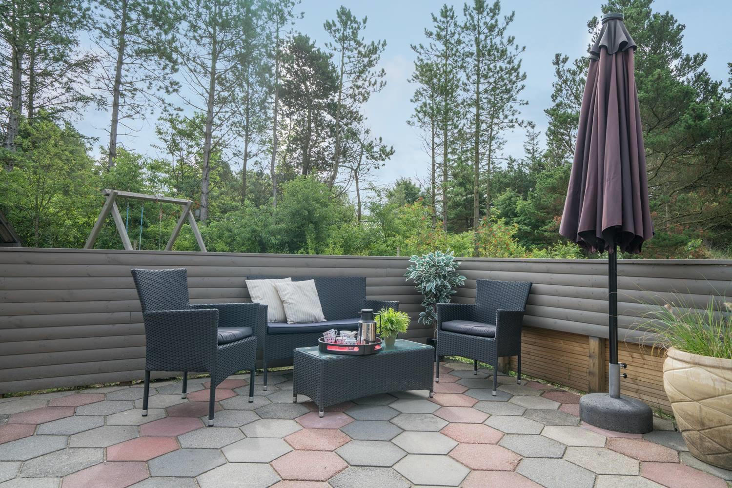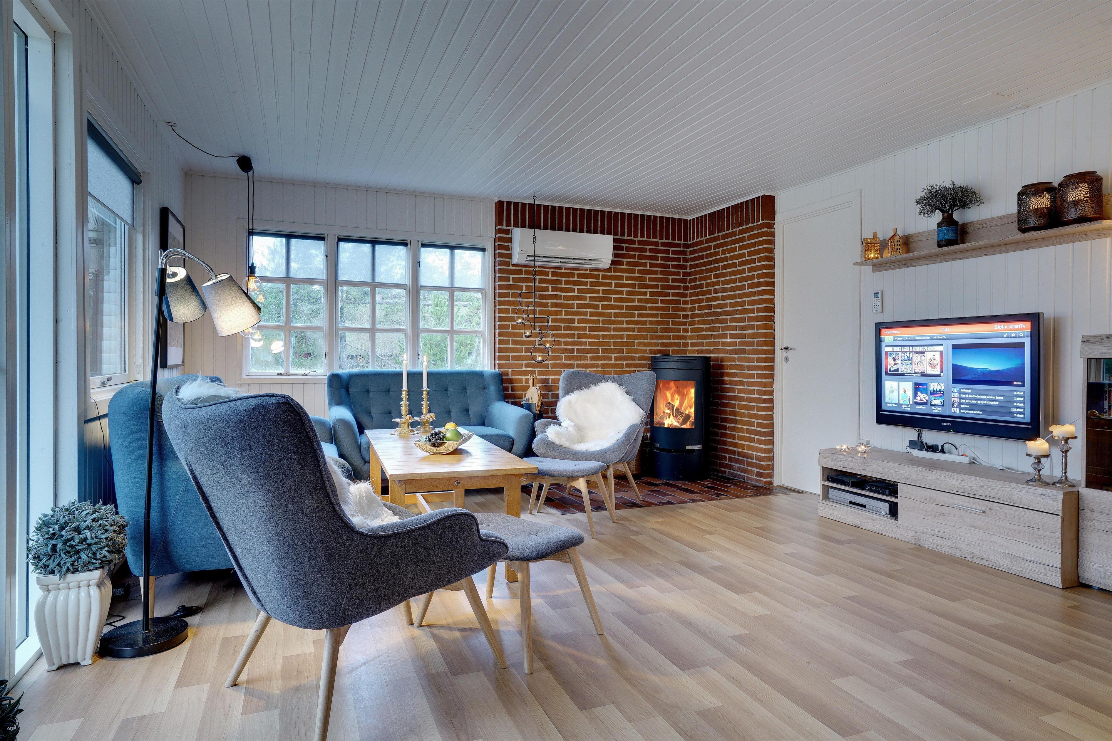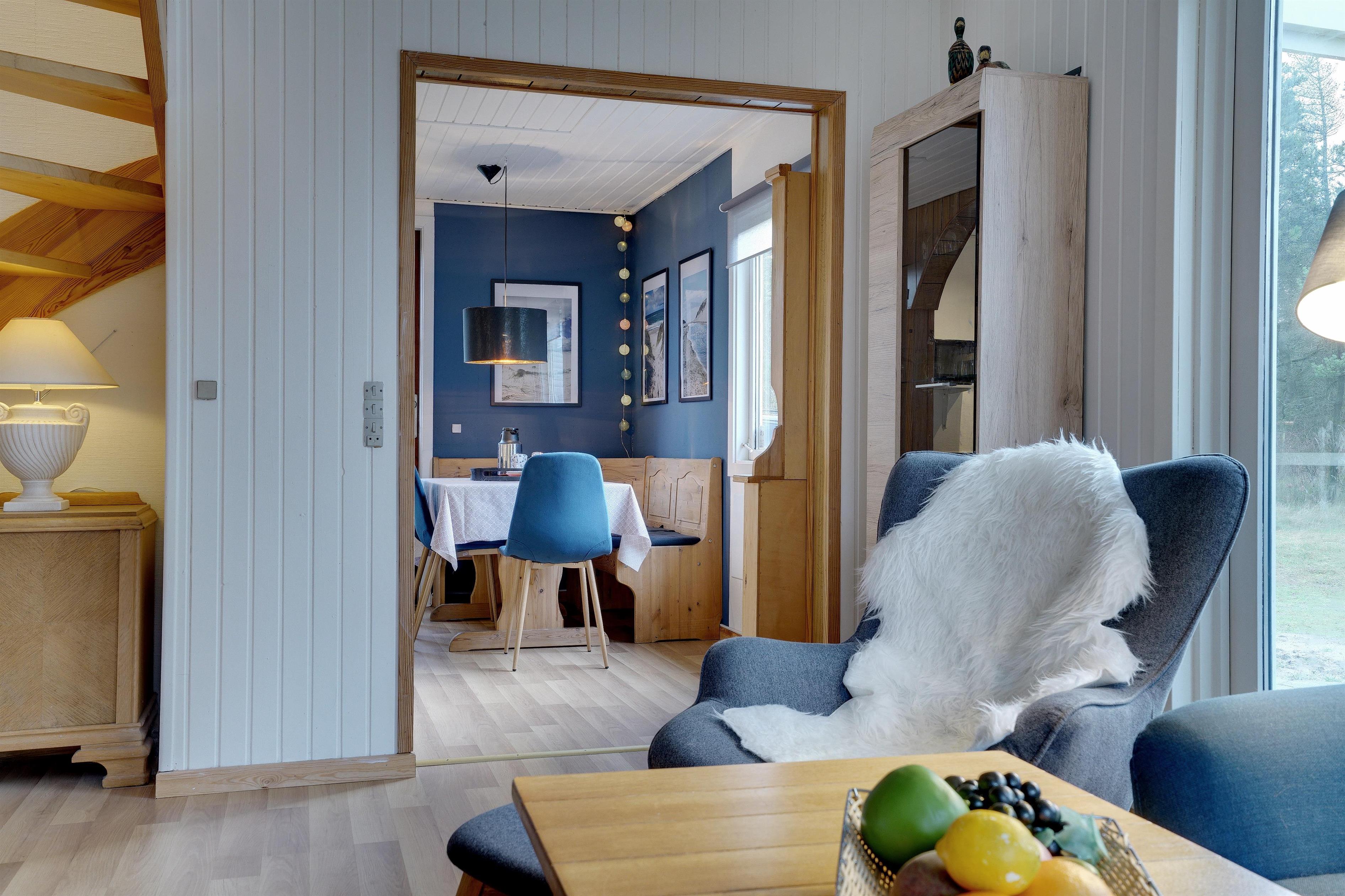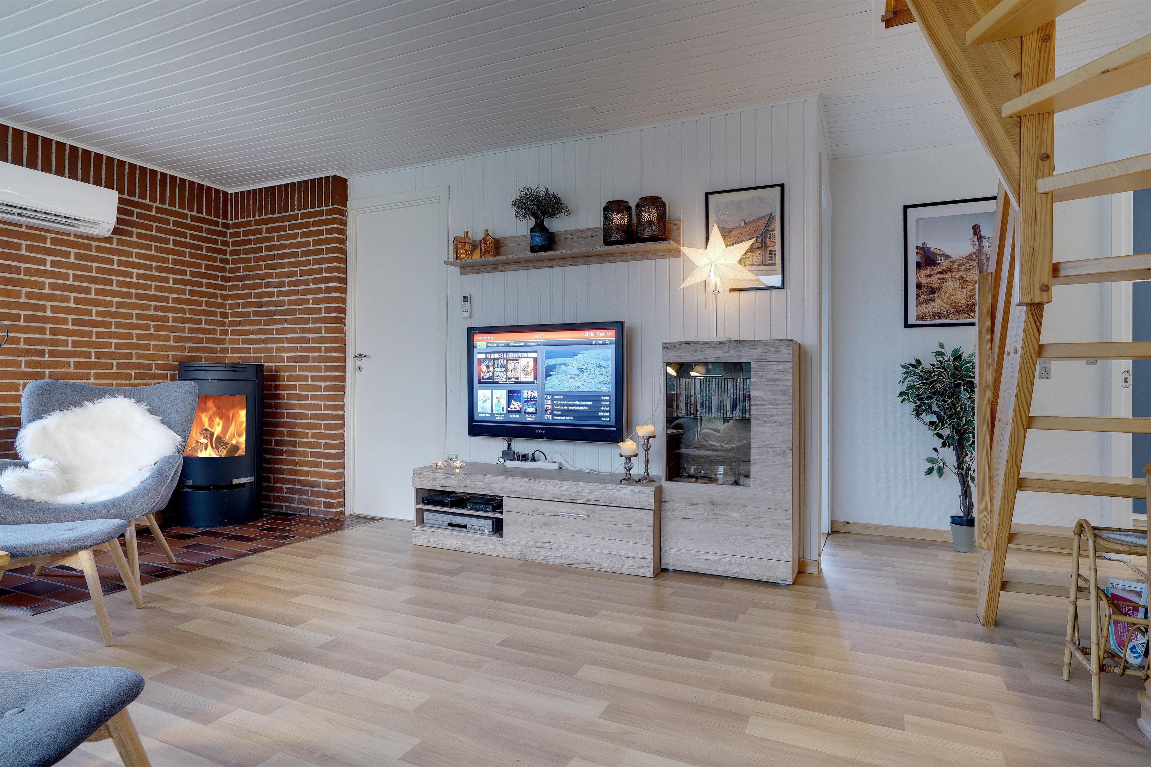 Hyggeligt feriehus i Henne Strand med sauna, brændeovn og stor, delvist indhegnet have til hunden.