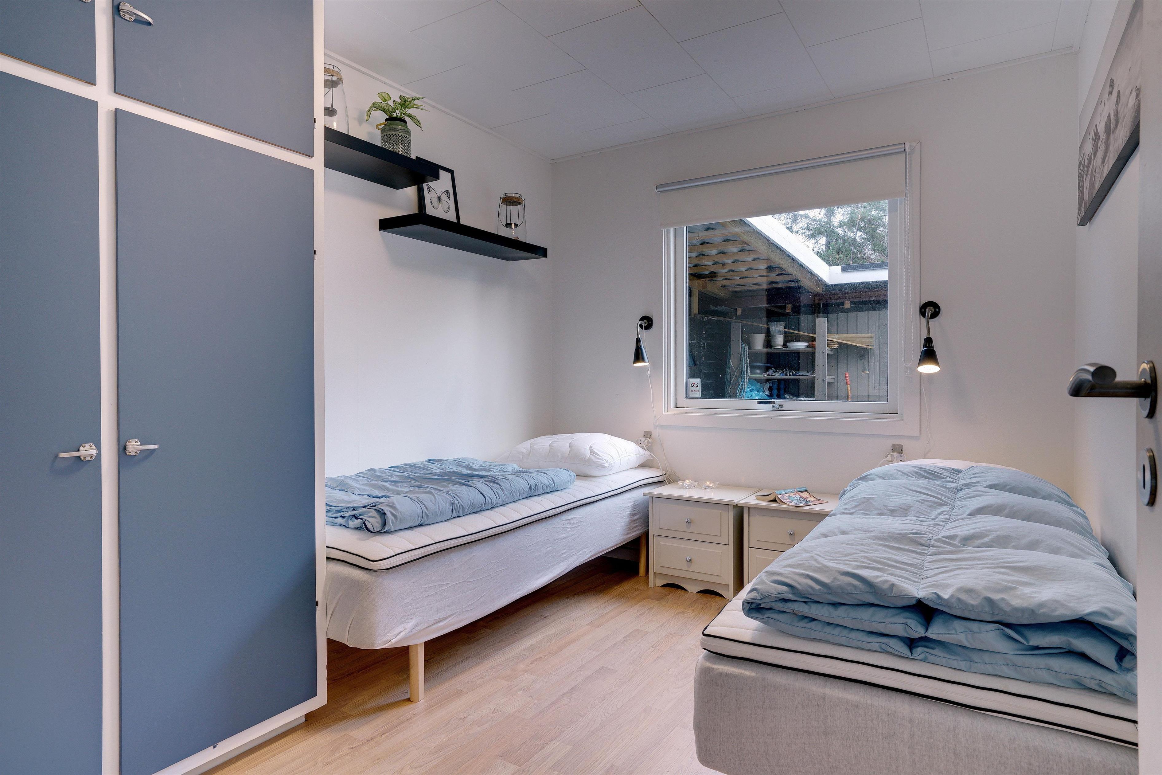 Sengestørrelser: 2 dobbeltsenge med 2 madrasser 90 x 200 cm + 1 dobbeltseng med 2 madrasser 80 x 200 cm.