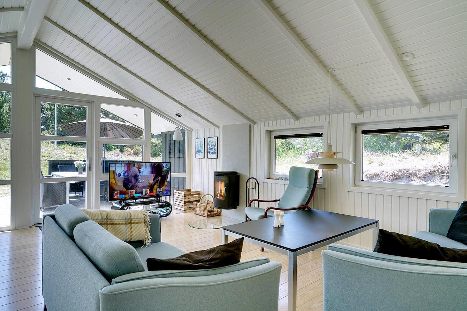 Det lækre og veludstyrede køkken har alt, hvad du behøver, inklusive opvaskemaskine, så du kan bruge mere tid på at nyde ferien. Huset har desuden brændeovn, varmepumpe og flere TV med en stor TV-pakke, så der altid er god underholdning til rådighed.