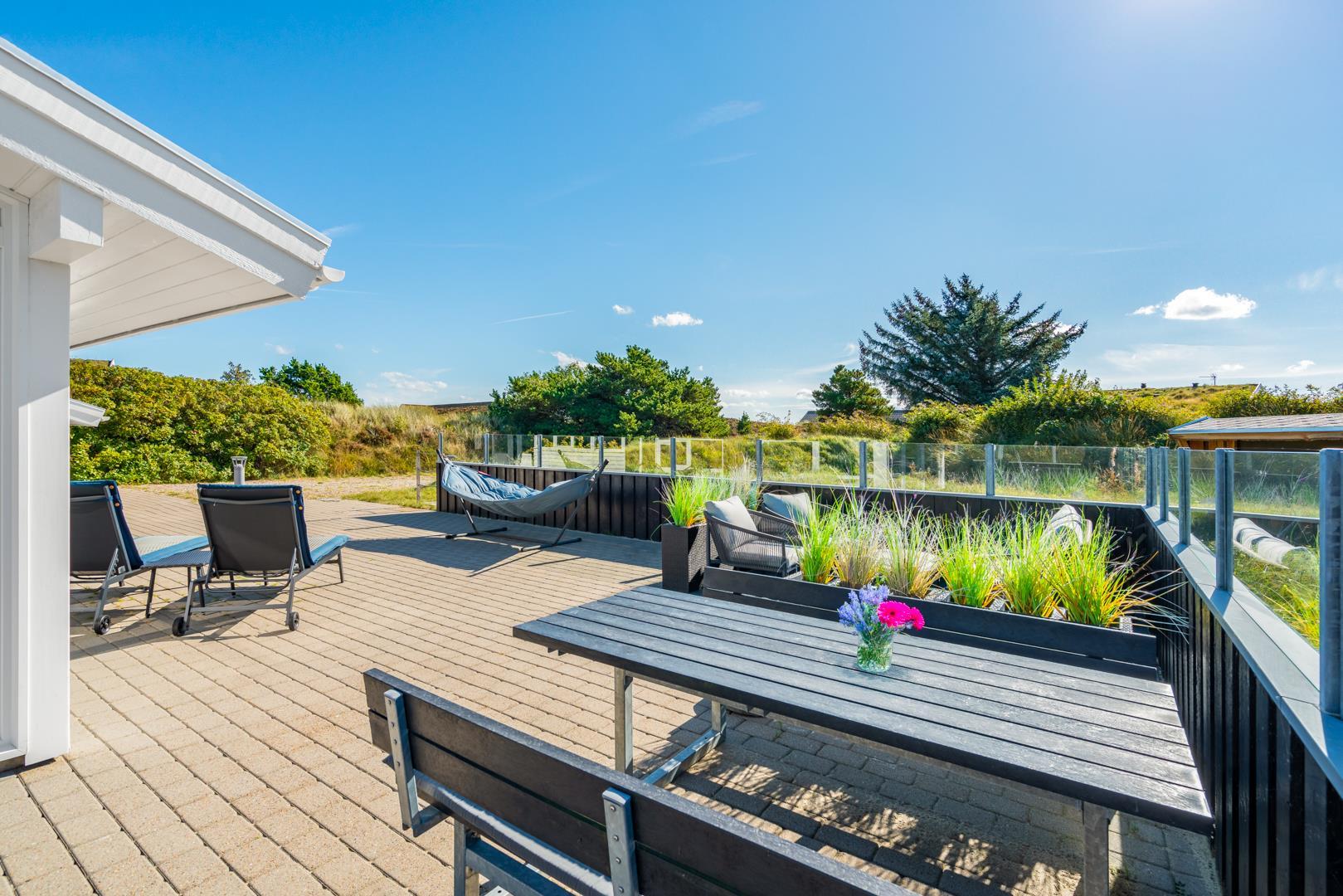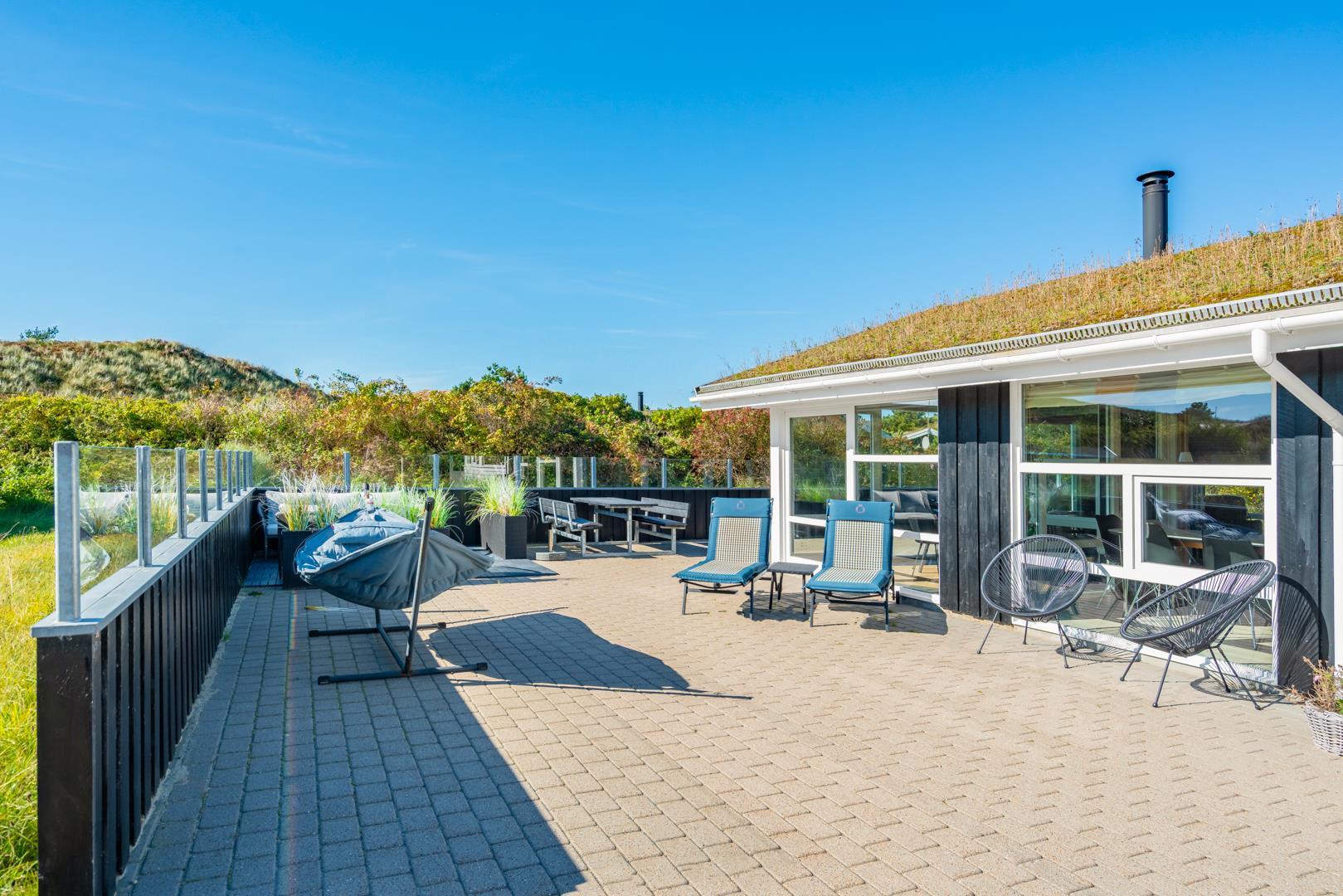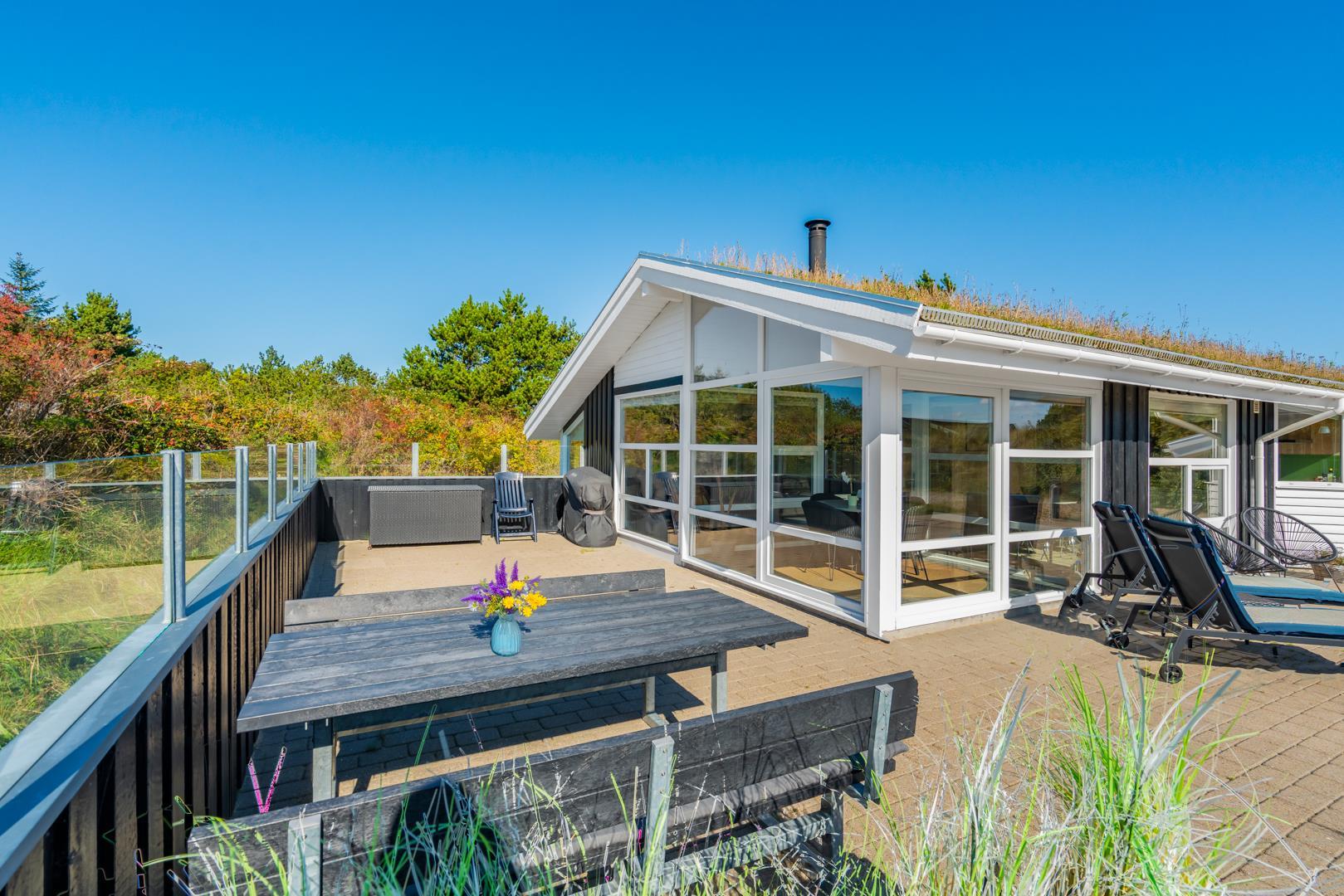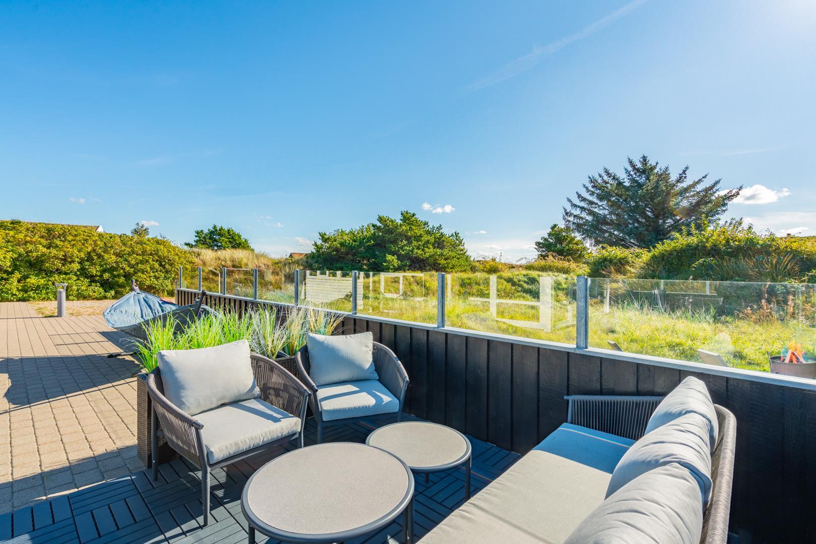 Huset ligger på en fredelig grund med udsigt til bløde klitter. Naturen er således lige udenfor døren, og der er rig mulighed for at opleve de grønklædte klitter, åbne hedelandskaber og skovens dybe stille ro. Desunden findes der en shelter med 4 sovepladser. Gåturen til stranden og Strandvejens butikker og spisesteder tager desuden knap et kvarter, og der er blot tre kilometer til Henne Golfklub.