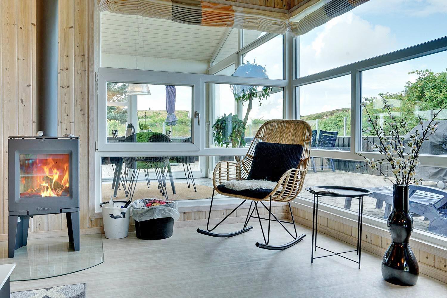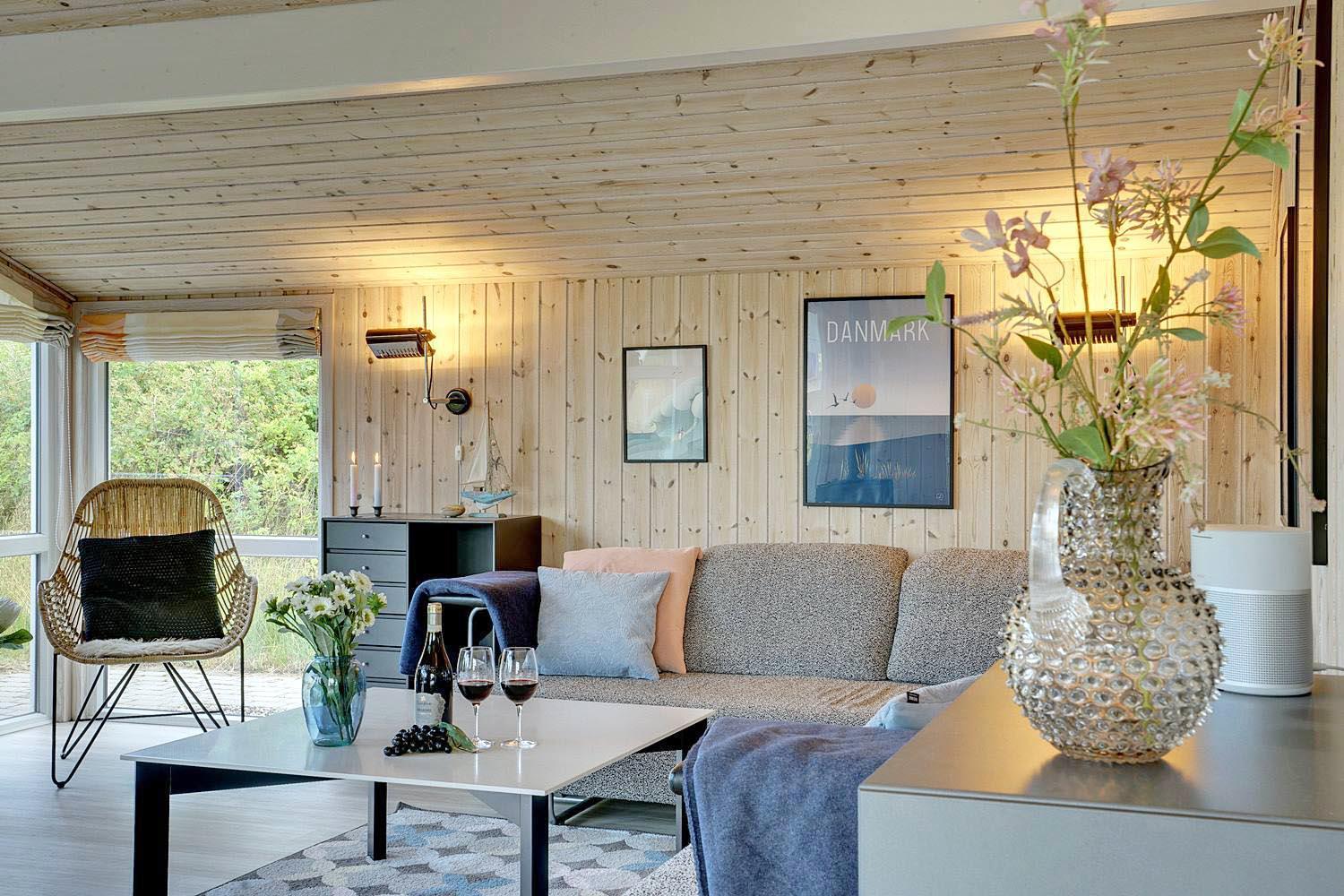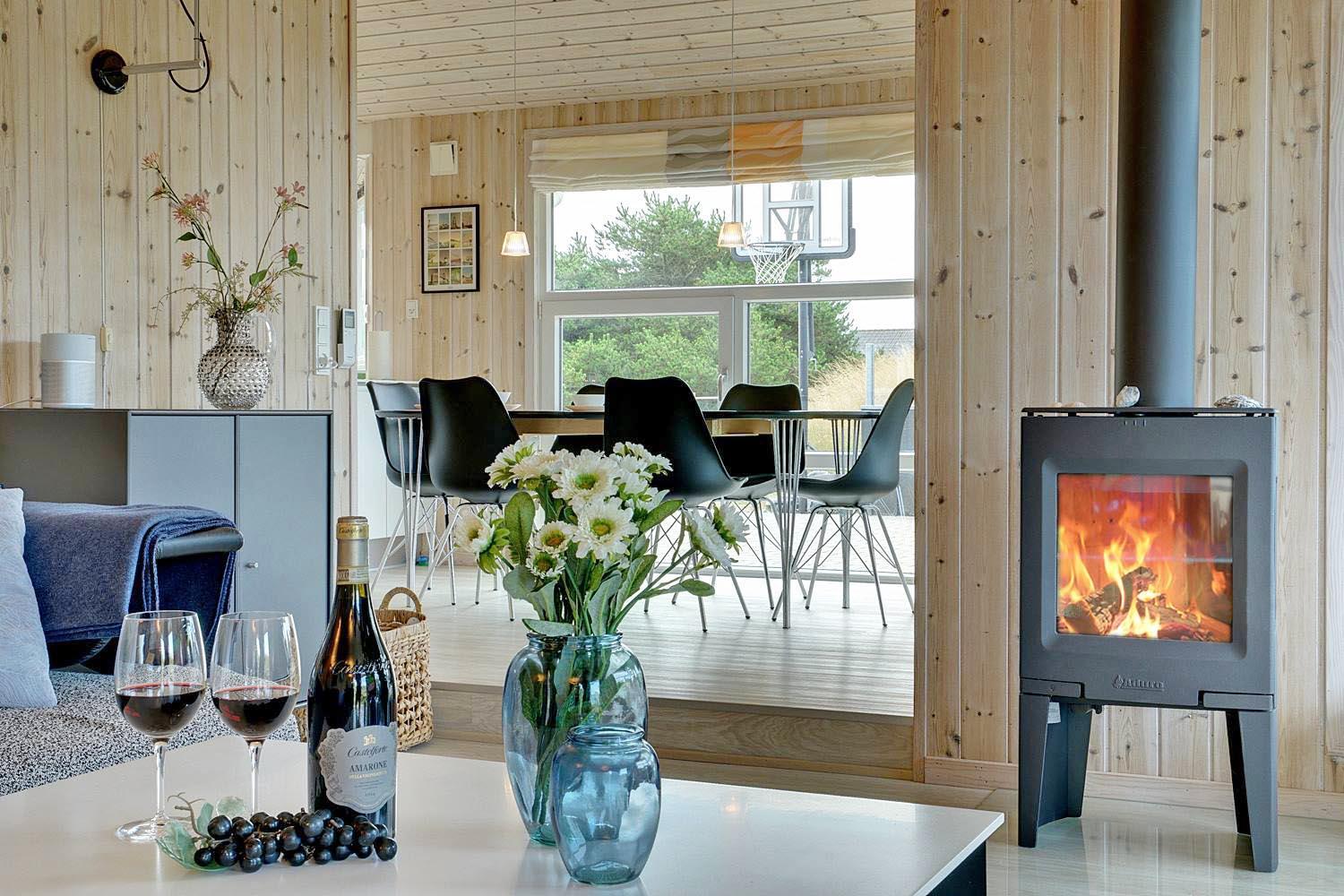 Lyset strømmer ind gennem store glaspartier i dette skønne feriehus i Henne. Huset er netop blevet moderniseret i 2020, og det står klar med spa, sauna, brændeovn og masser af hygge, så du kan invitere dine nærmeste på en ferie med masser af mindeværdige oplevelser.