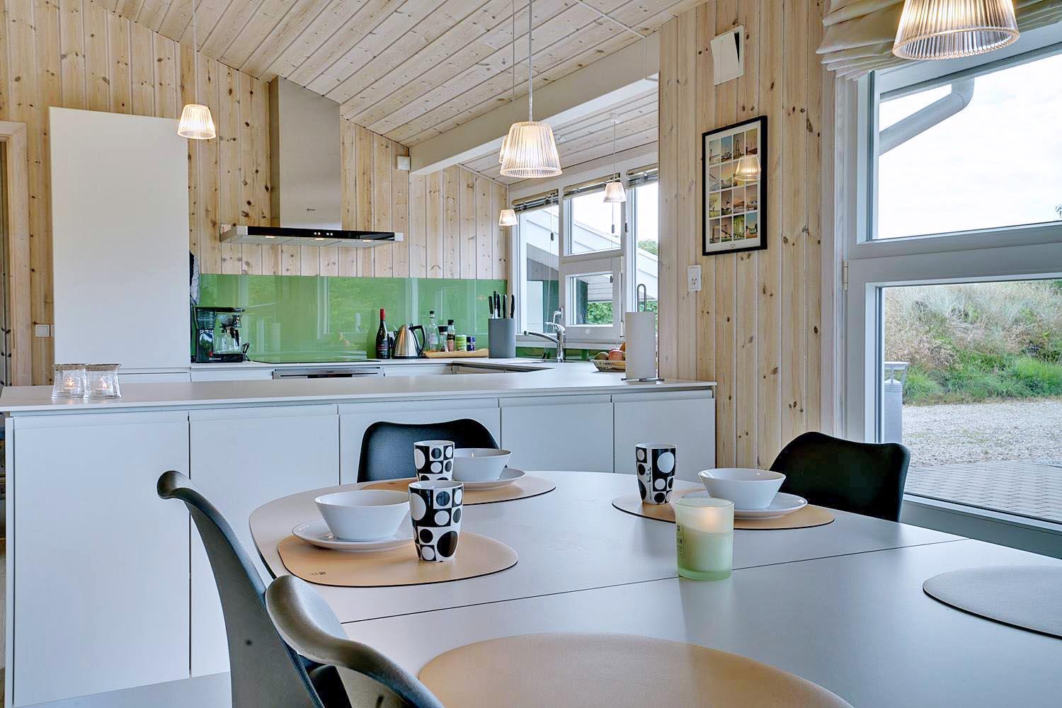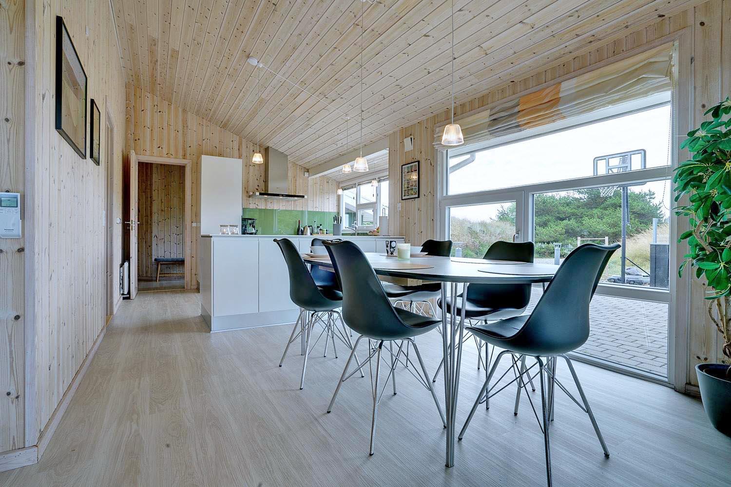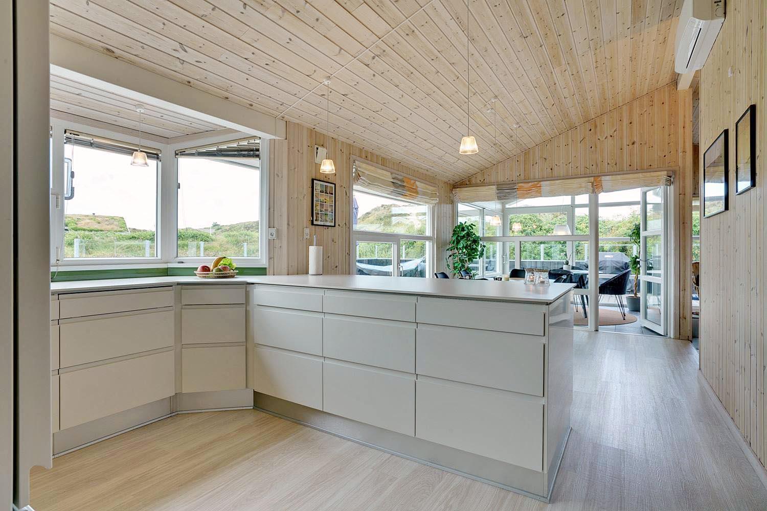 Lyset strømmer ind gennem store glaspartier i dette skønne feriehus i Henne. Huset er netop blevet moderniseret i 2020, og det står klar med spa, sauna, brændeovn og masser af hygge, så du kan invitere dine nærmeste på en ferie med masser af mindeværdige oplevelser.