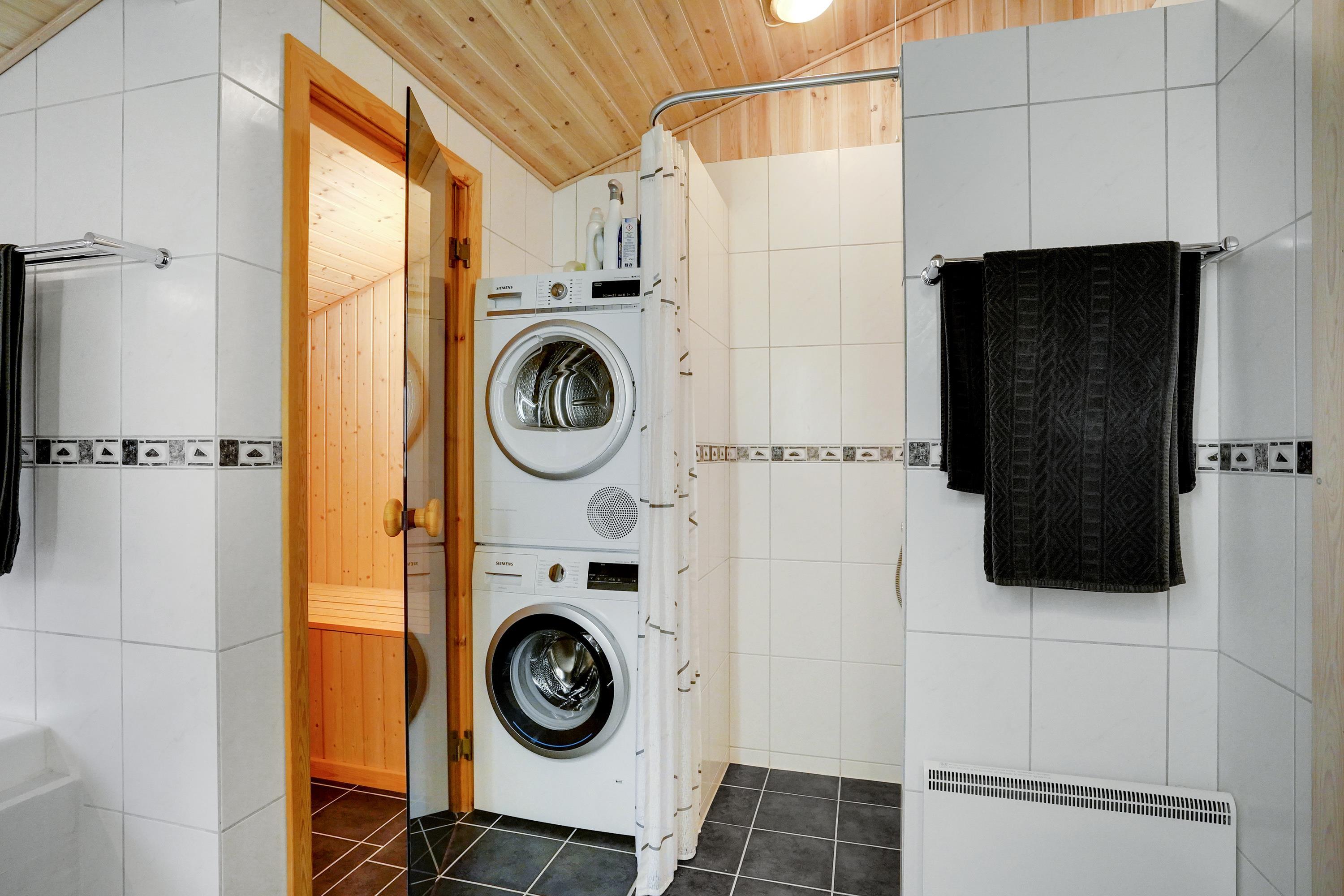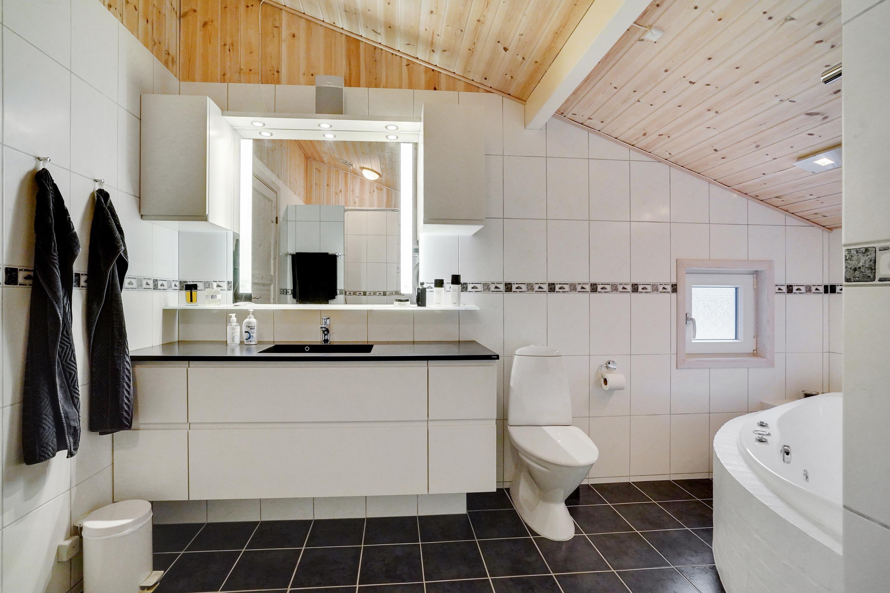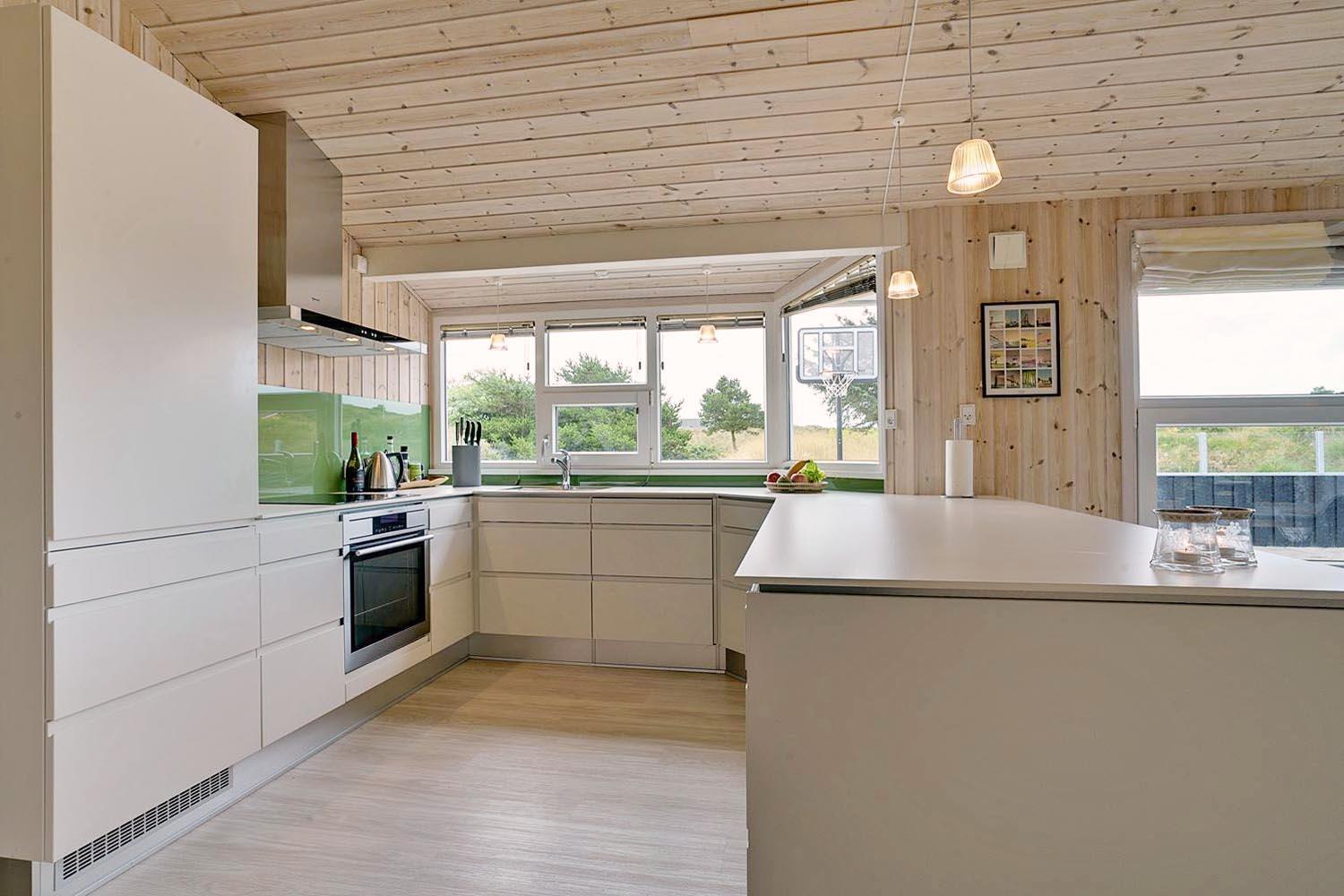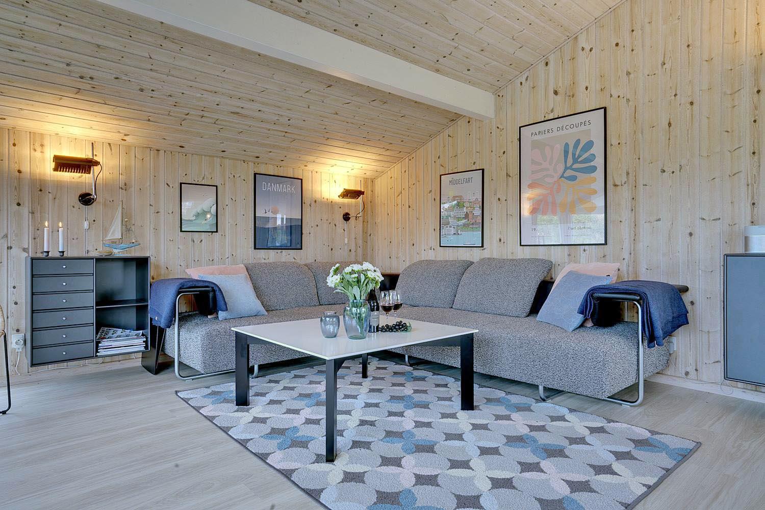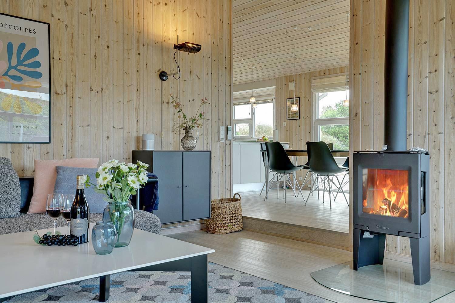 Stressniveauet falder straks, når I bevæger jer ind i sommerhusets store, sammenhængende, højloftede opholdsrum. Her er både gulvvarme og brændeovn, og interiøret er i stilrent design. Der er plads til seks overnattende gæster, som alle kommer til at ligge behageligt fordelt i tre soveværelser, hvoraf de to har dobbeltsenge. Huset byder herudover på badeværelse, gæstetoilet og et depotrum.