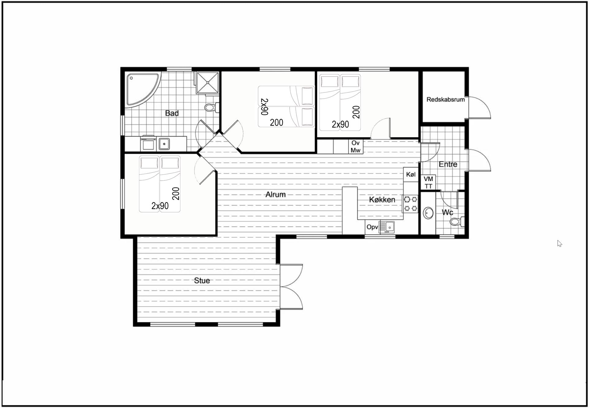 Huset råder over 3 komfortable soveværelser med dobbeltsenge. Her er der plads til alle, og du kan være sikker på en god nats søvn efter en dag fyldt med oplevelser.