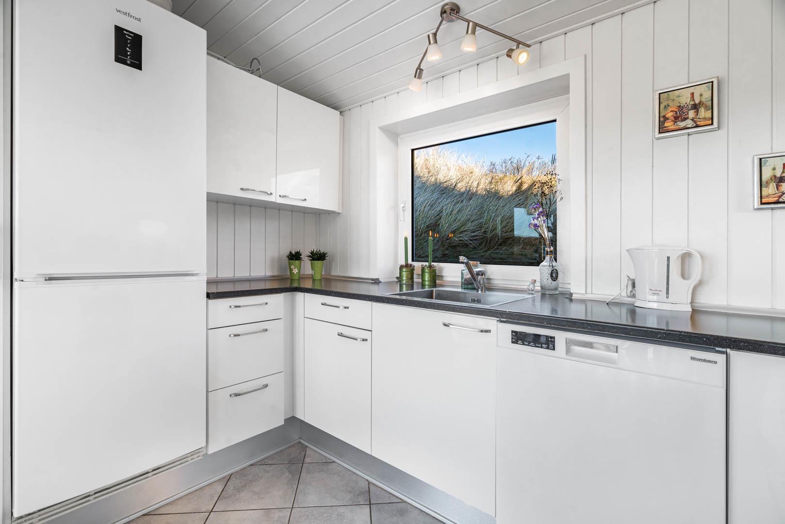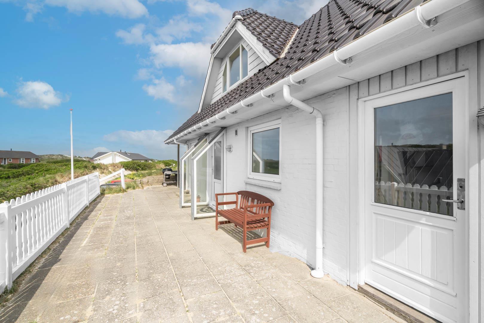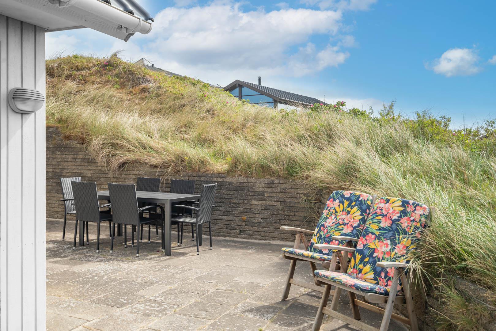 Huset har i alt tre soveværelser, som alle er udstyret med dobbeltsenge. Huset ligger på en rolig klitgrund med en stor delvist overdækket terrasse.