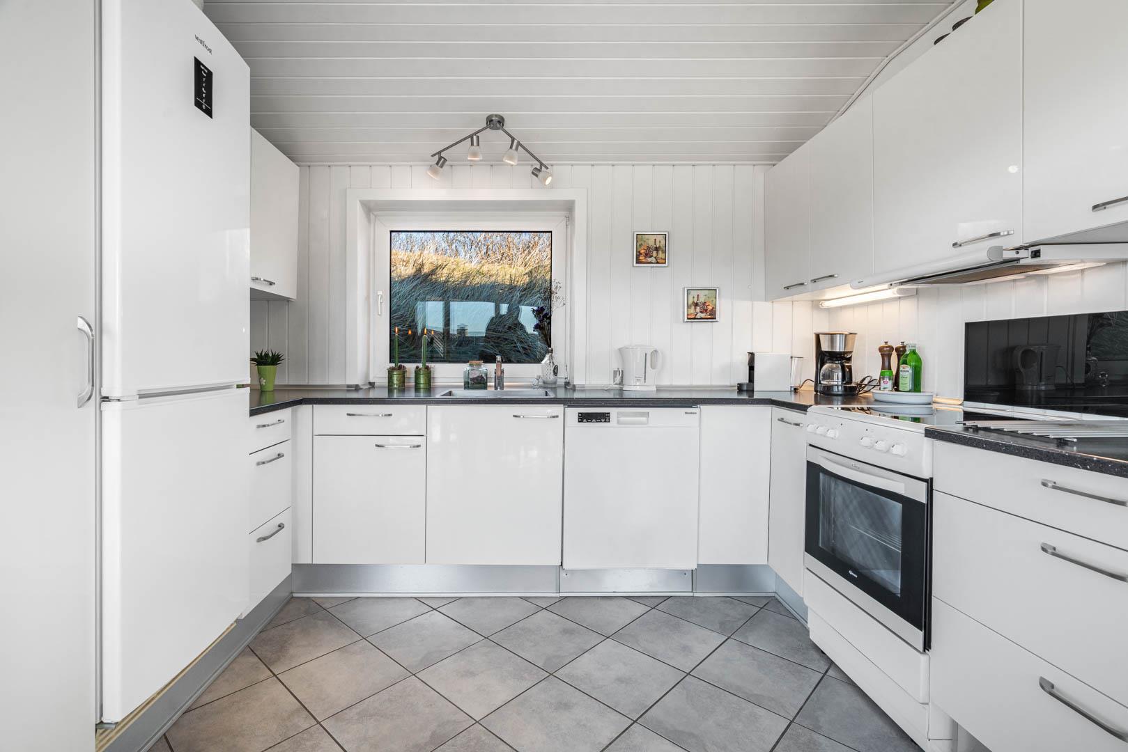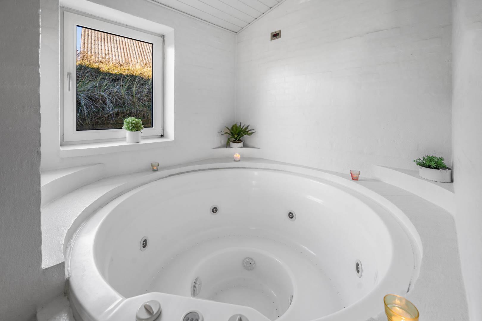 Nyd stilheden under stjernerne, mens I betragter solen, der synker ned i det aftenblanke Vesterhav. Sådan kan I tilbringe hver eneste ferieaften i dette feriehus ligger i tredje række til stranden, og hvis I på et tidspunkt får løsrevet dig fra den smukke udsigt, kan den sidste rest af hverdagsstress opløses i husets wellnessafdeling, som har både spa, dampbad og sauna.