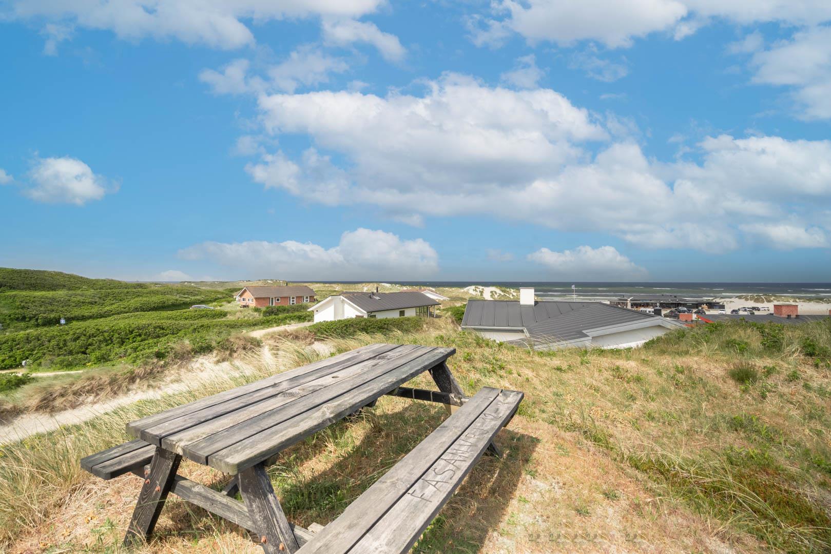 Strandvejen ligger i kort gåafstand herfra, så der er aldrig langt til gammeldags isvafler og stjerneskud med friske fisk. I nærområdet finder I også både tætte skovområder, fredede hedearealer og bløde klitrækker samt velplejede golfbaner - og så selvfølgelig den lange, brede strand, hvor det kridhvide, fine sand inviterer til leg og afslapning.