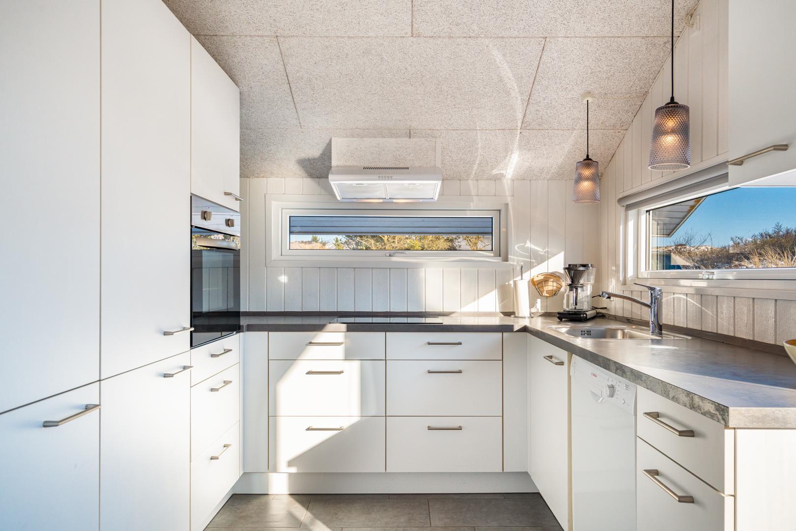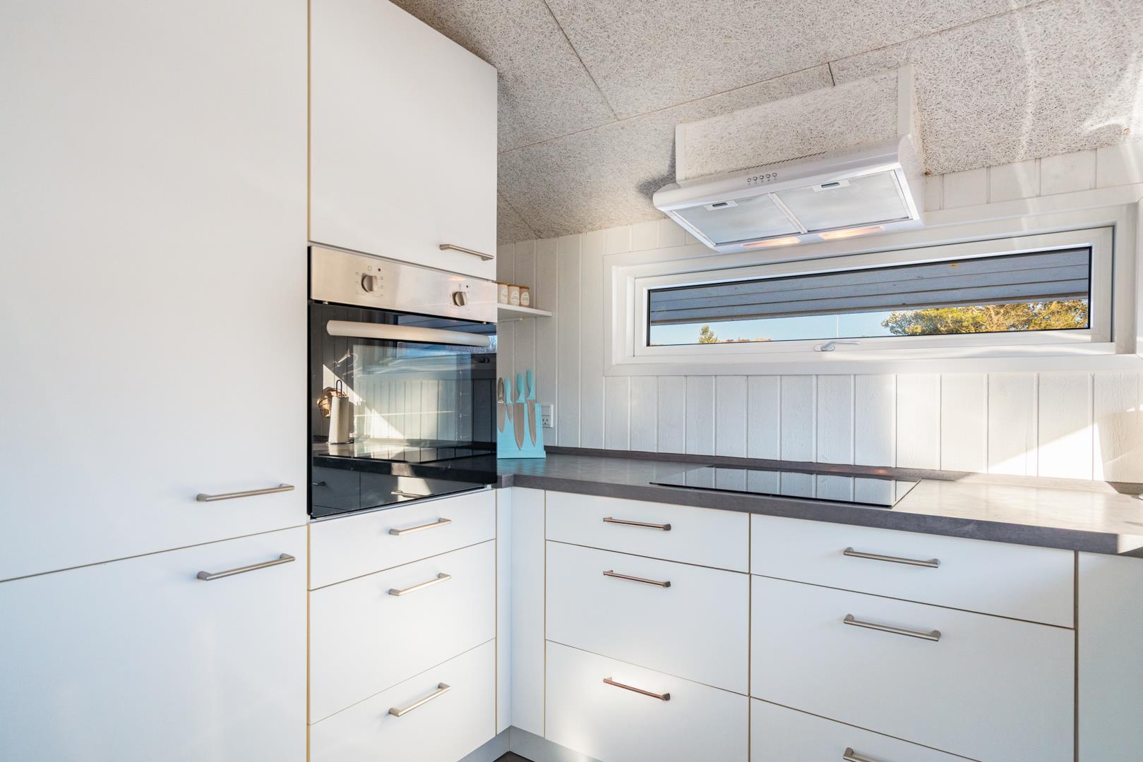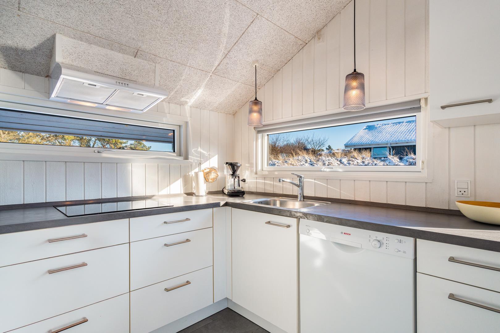 Det moderne køkken er praktisk indrettet – inklusive opvaskemaskine – og giver ekstra komfort med gulvvarme. Her kan I lave mad sammen og starte eller afslutte dagen i et roligt tempo.