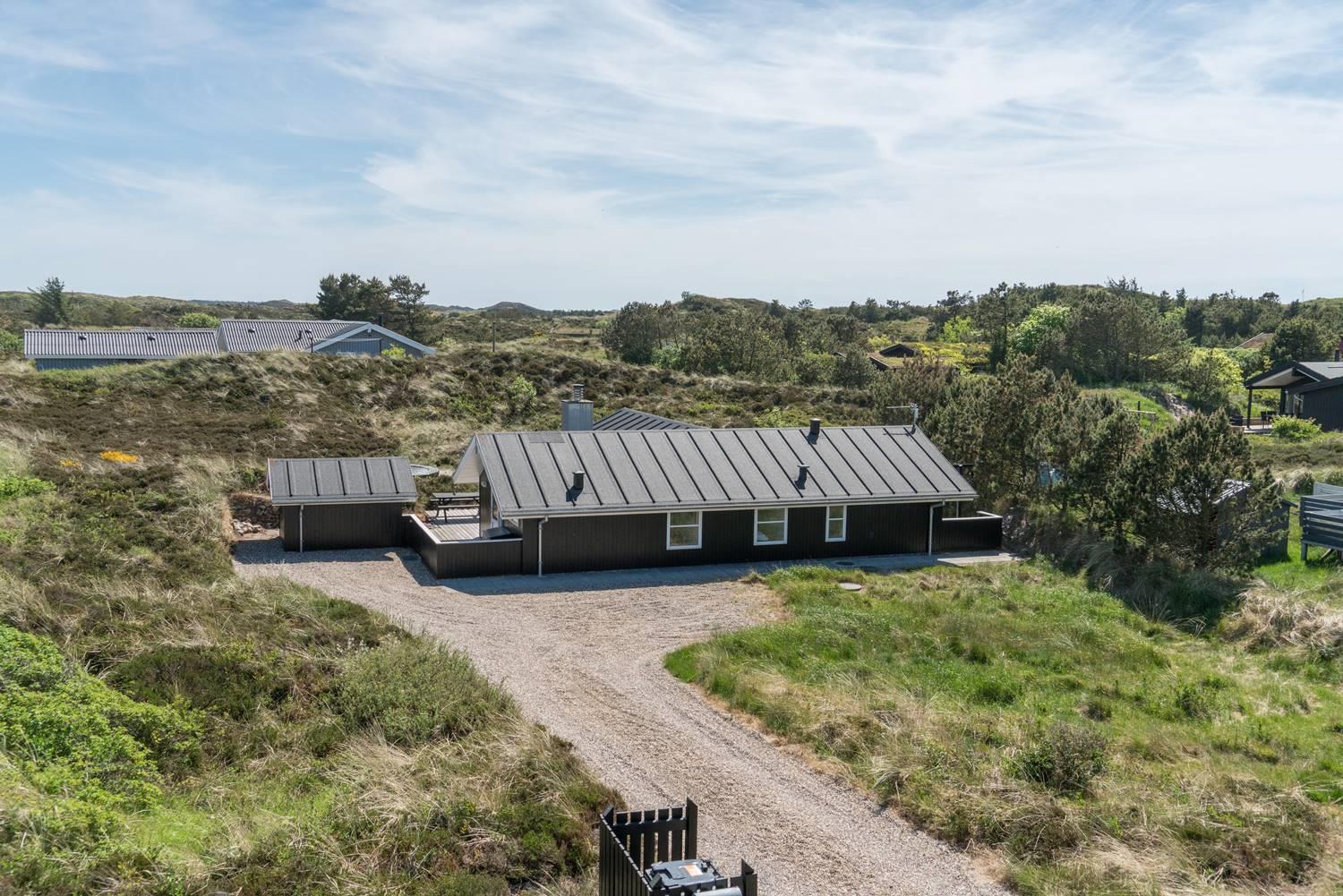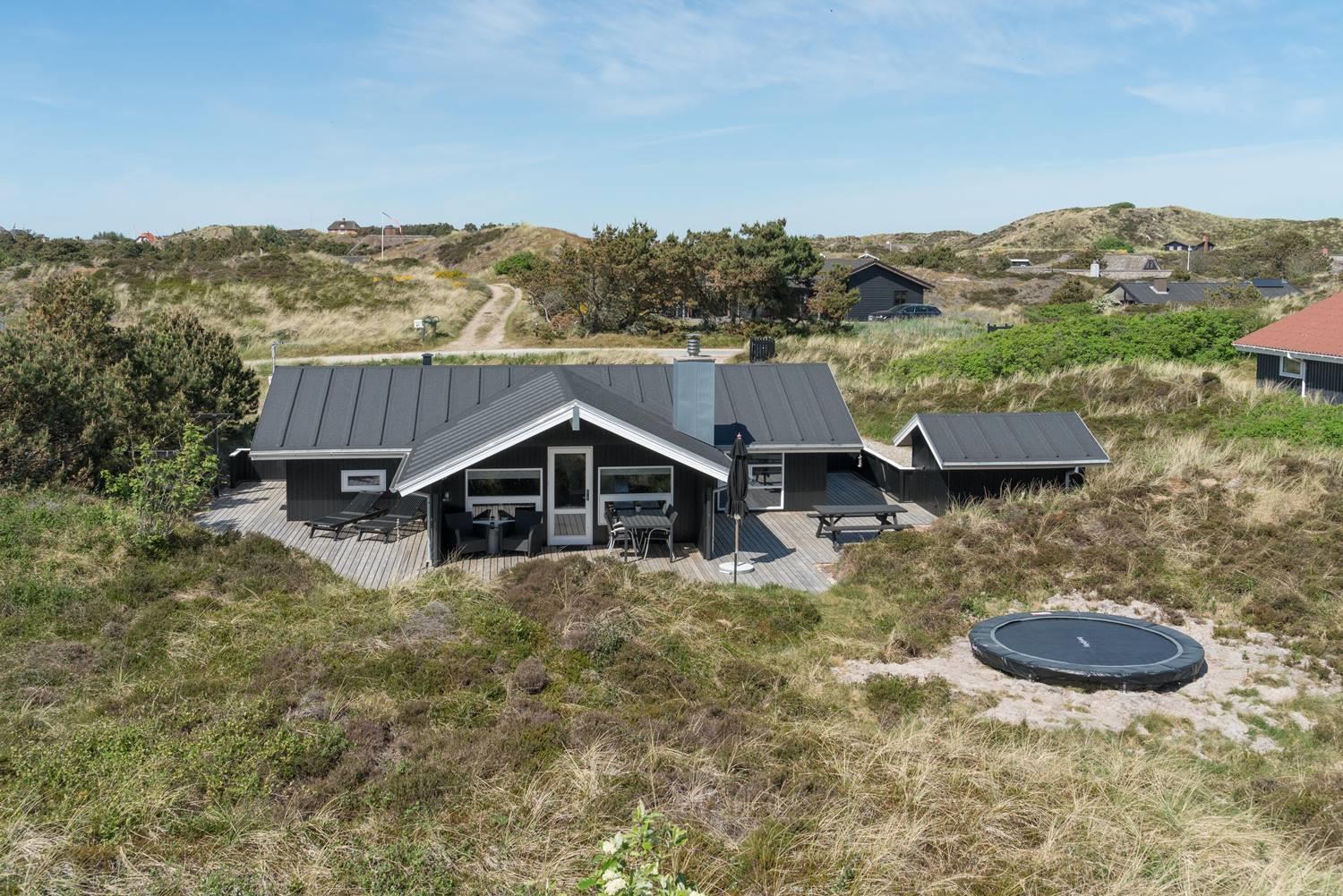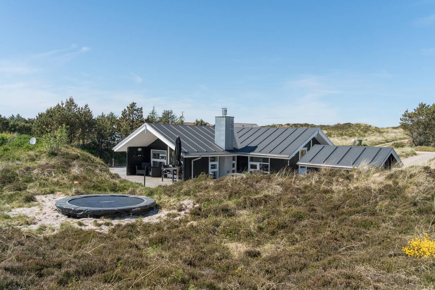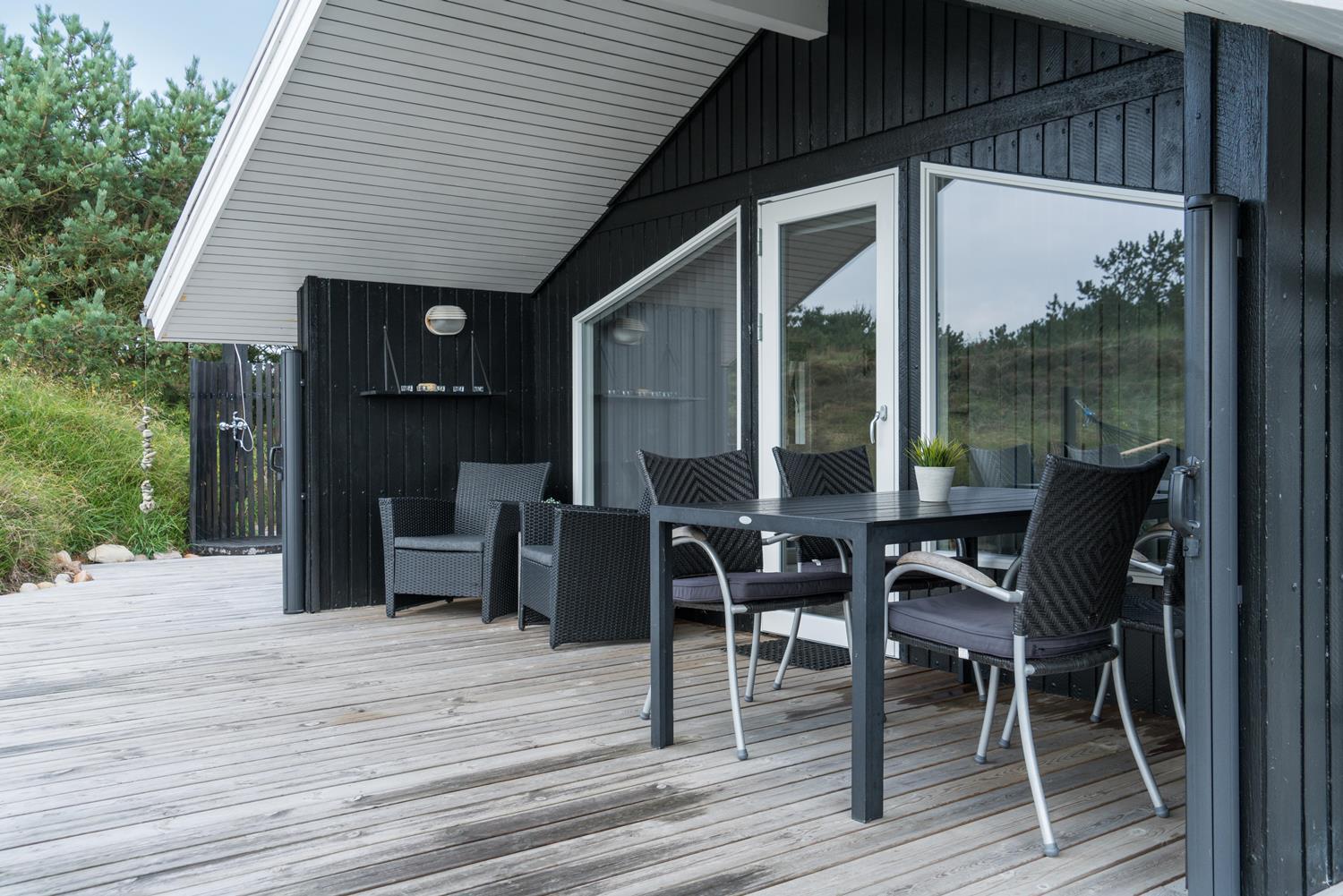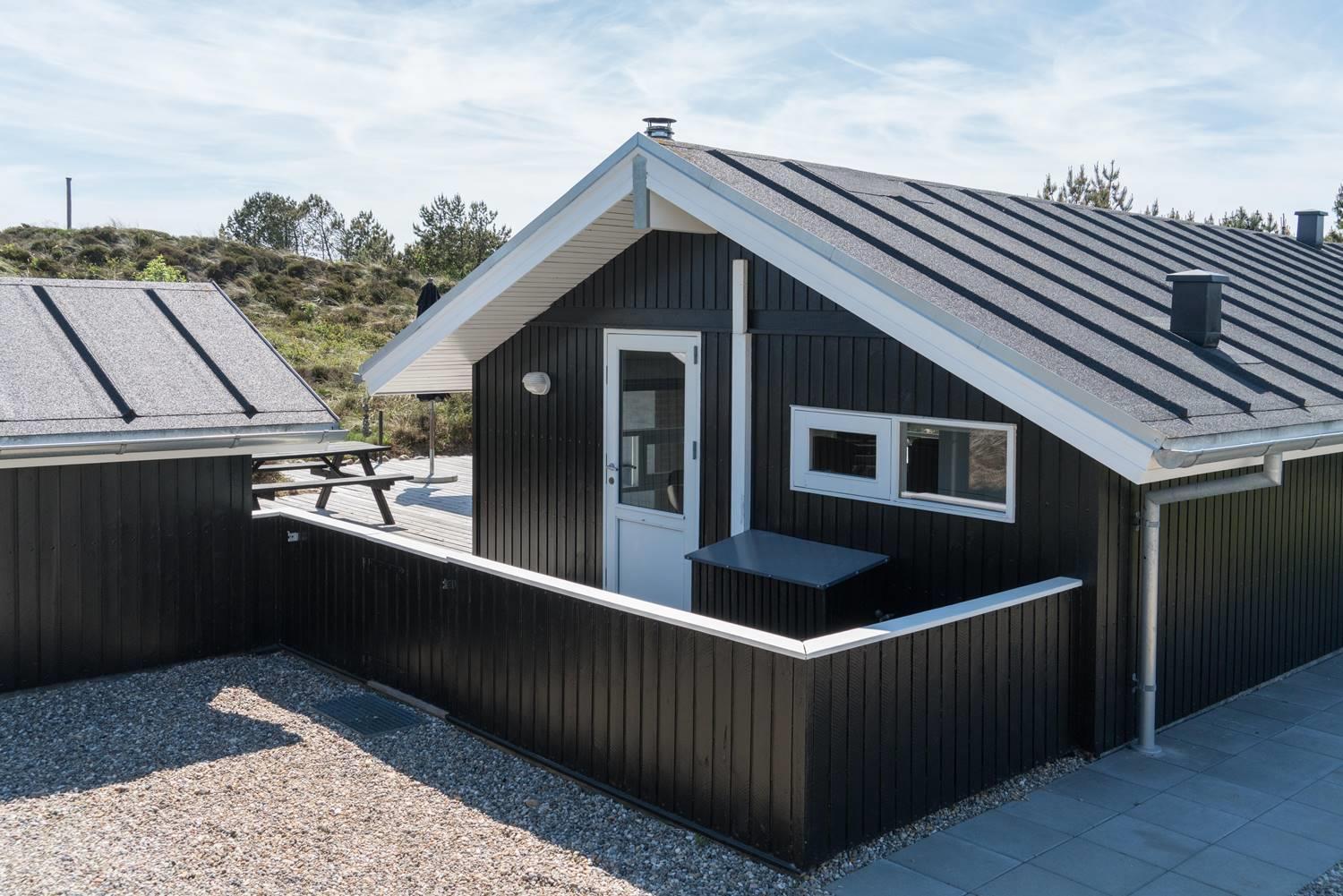 Også udendørs har dette sommerhus i Henne Strand optimale rammer for afslappende feriedage. På den overdækkede terrasse kan du nyde morgenmaden i læ for vinden eller tilbringe de lange sommeraftener i smukke omgivelser. Udebruseren giver en hurtig opfriskning efter en tur på stranden.
