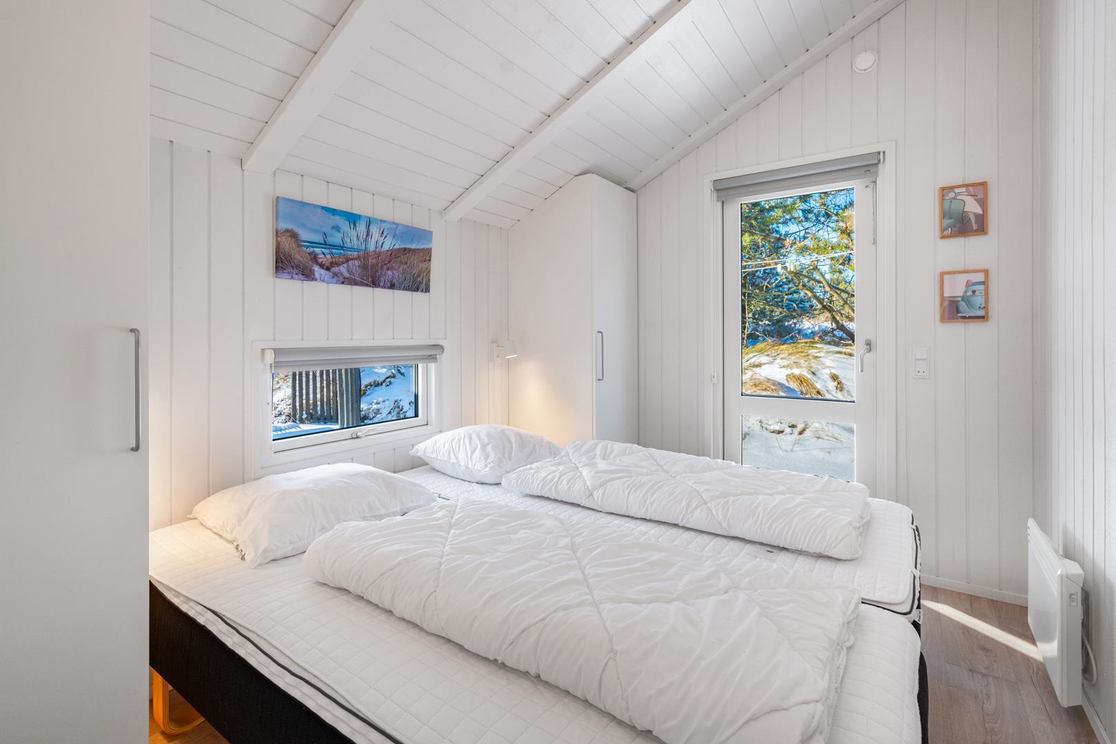 I alt 3 hyggelige soveværelser giver god plads og sikrer en god nattesøvn. Badeværelset har gulvvarme og sauna. Efter en lang gåtur ved stranden kan du varme dig og slappe helt af her.