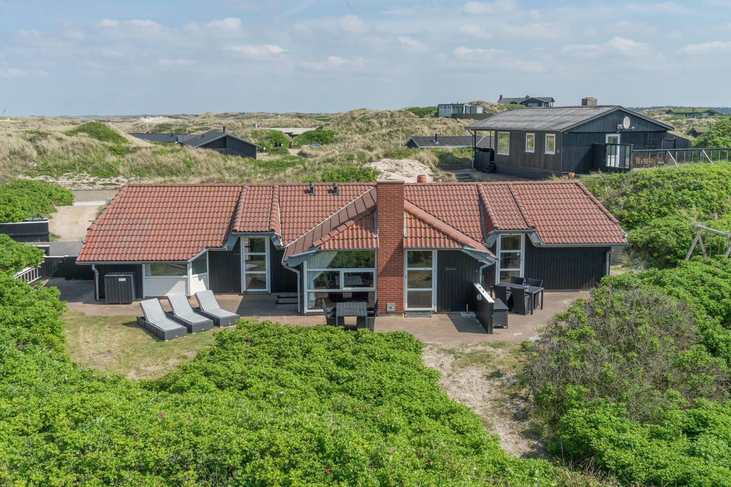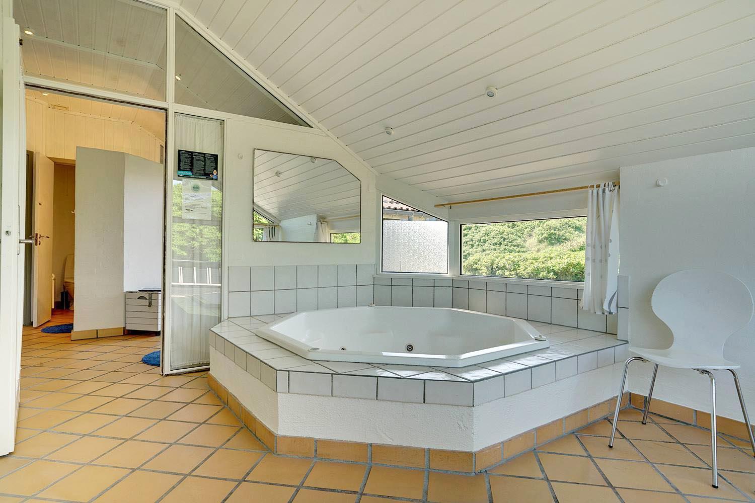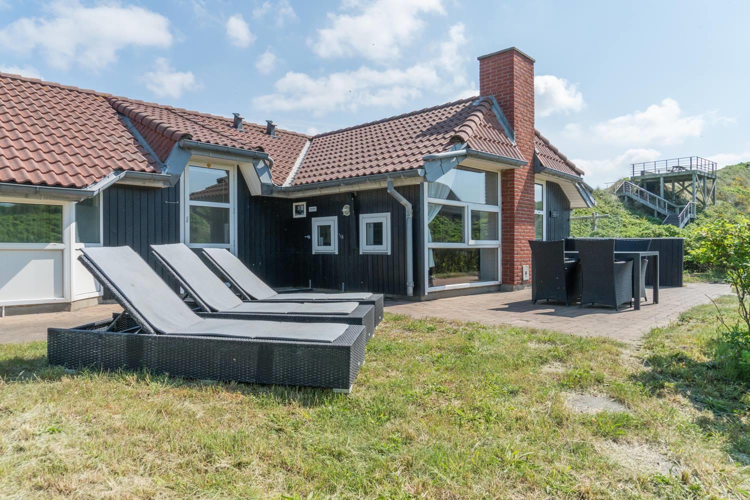 Pragtfuld beliggende feriehus kun 100 meter fra Henne Strand brede sandstrand. Huset råder over 2 badeværelser med bruser og gulvvarme. Der er separat rum hvor man kan nyde en tur i den store 6 personers spa. Køkkenet ligger i åben forbindelse med den store rummelige og pænt møblerede stue. Gratis WFI. Dejlig stor terrasse, hvor man kan nyde solen. Endvidere en 30 m2 udsigtsterrasse med en fantastisk 180 graders udsigt over havet.