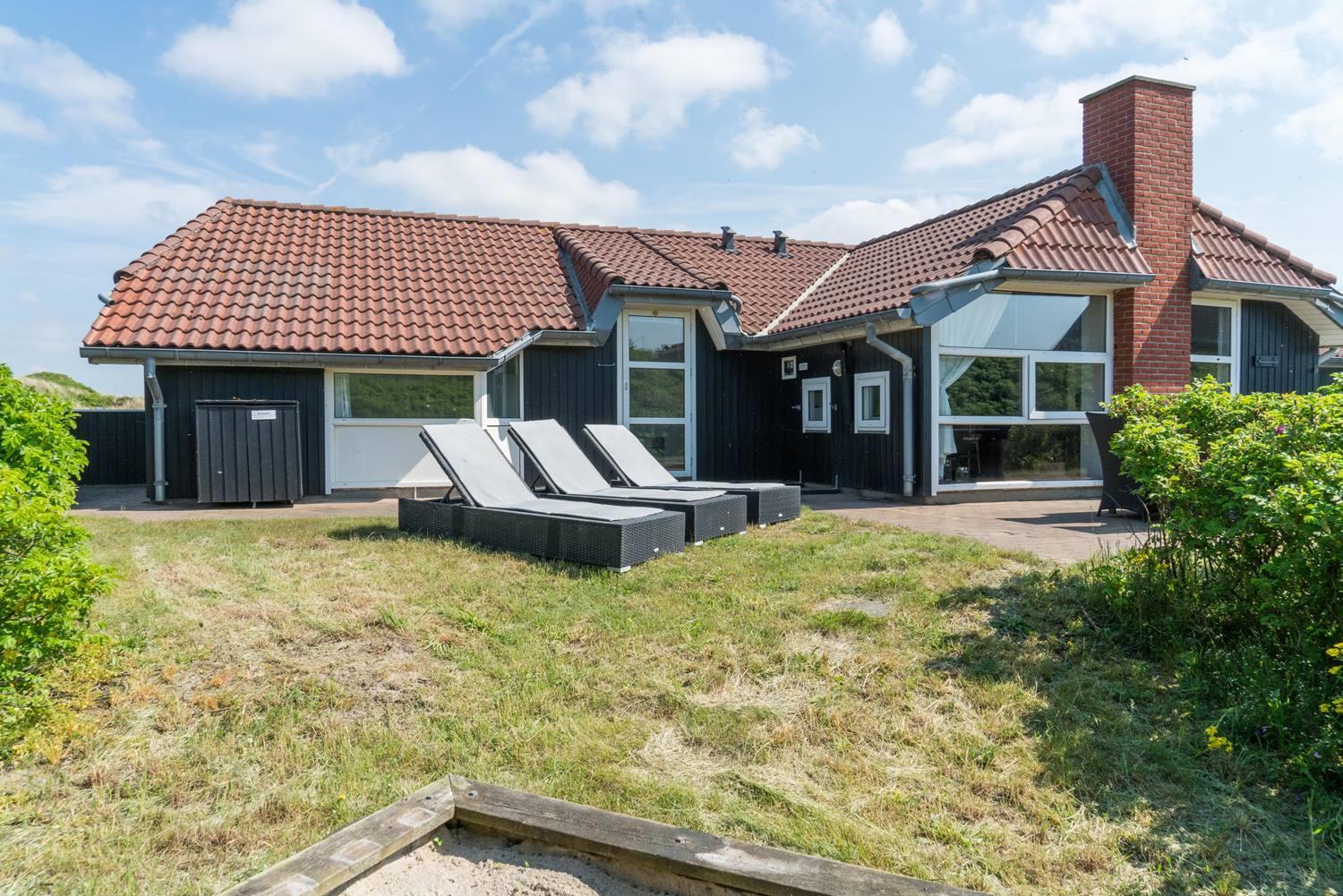 Pragtfuldt feriehus kun 100 meter fra Henne Strands brede sandstrand med spa og fantastisk havudsigt.