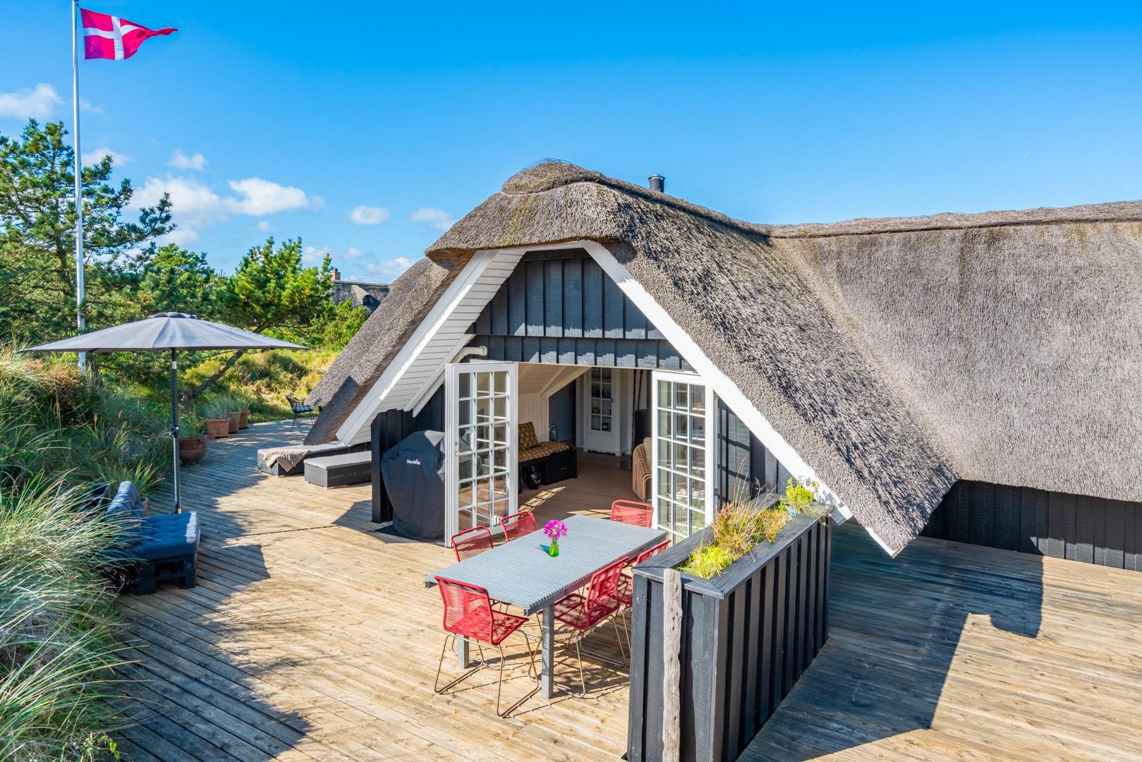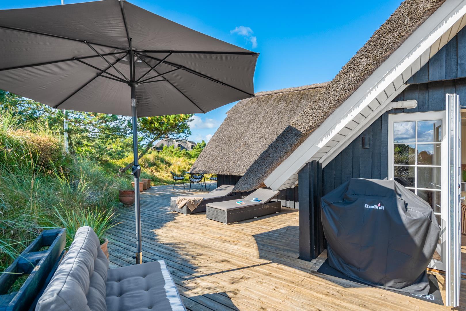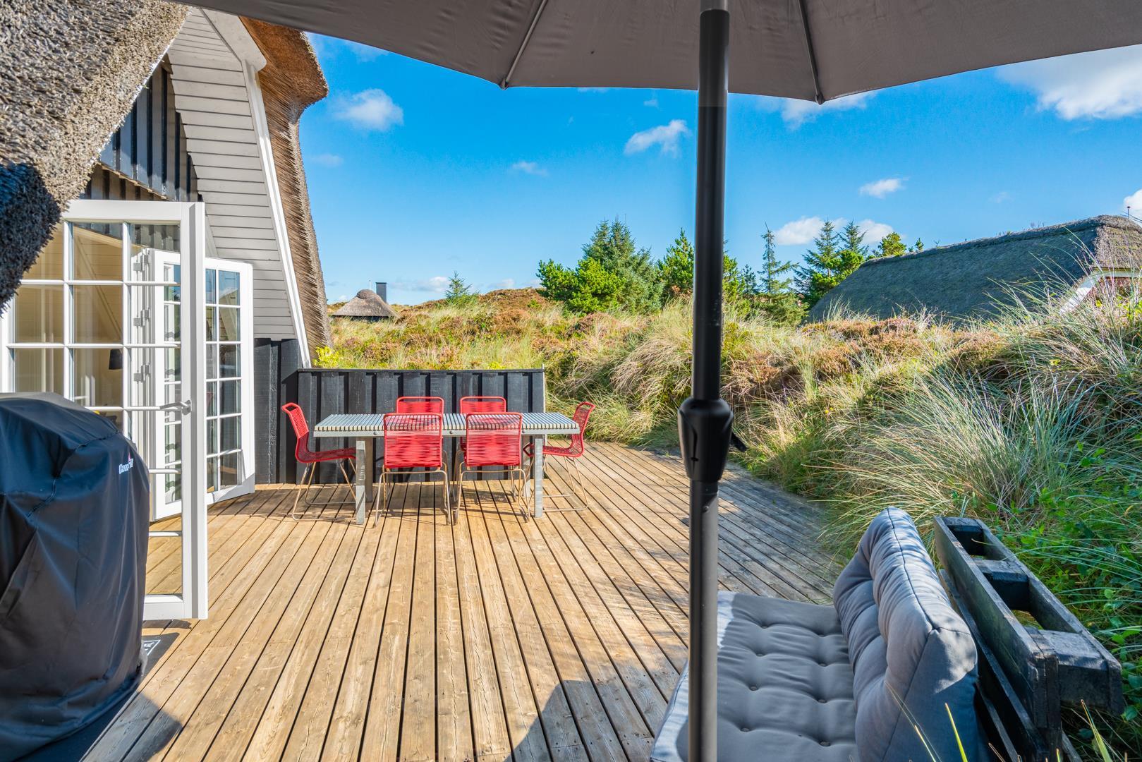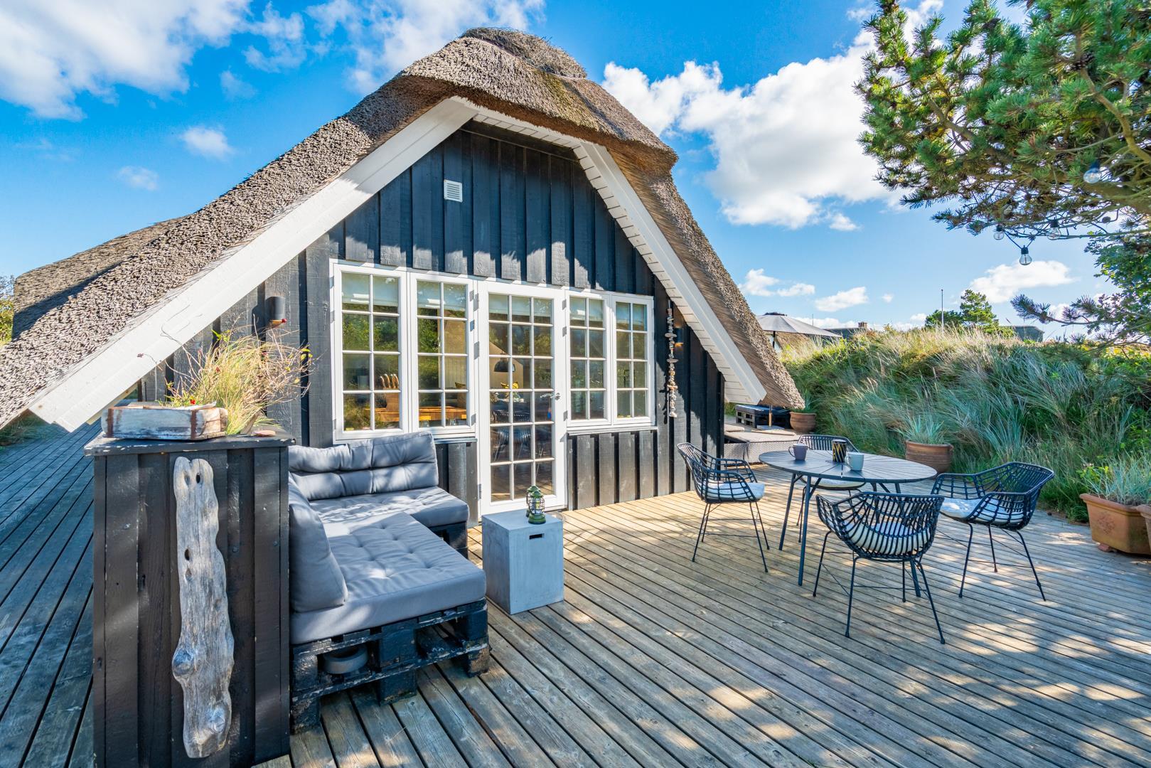 Rundt om huset findes flere dejlige solterrasser, hvor du altid kan finde en læfyldt krog, uanset vindretningen.