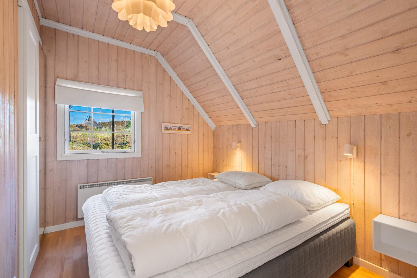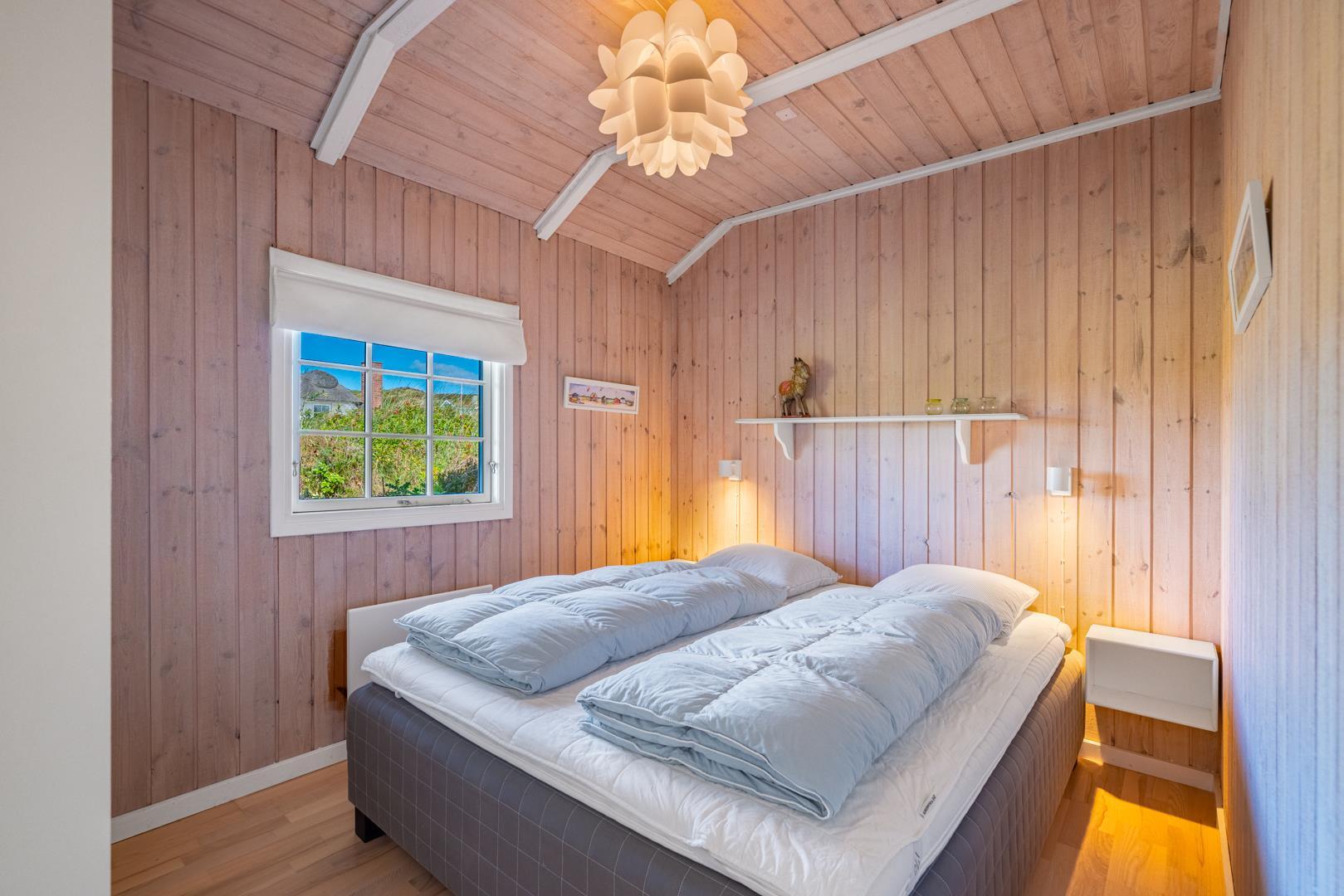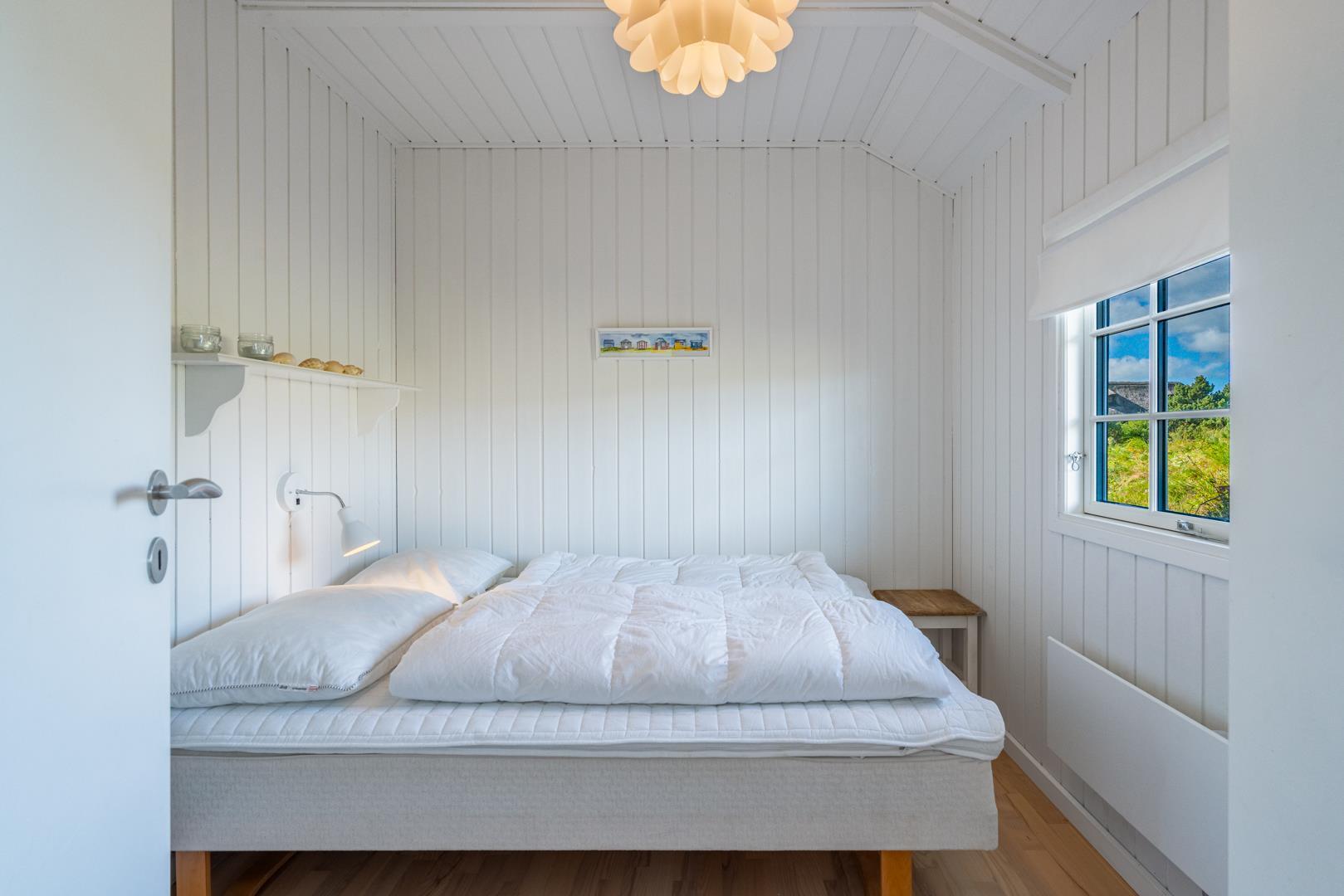 Sommerhuset rummer tre gode soveværelser – alle med dobbeltsenge – samt et lyst og velindrettet badeværelse.