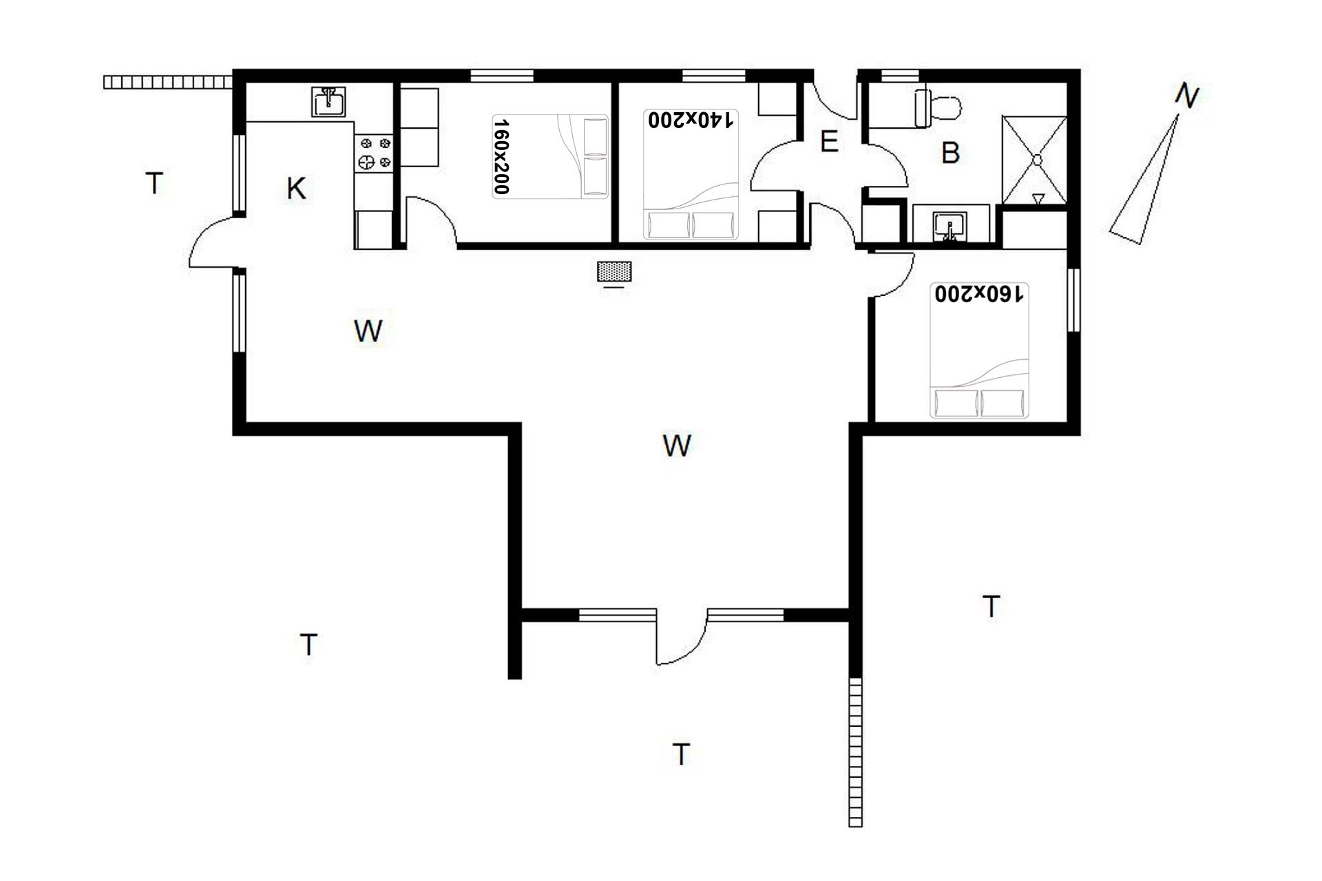 Sengestørrelse: 2 dobbeltsenge 160 x 200 cm + 1 dobbeltseng 140 x 200 cm
