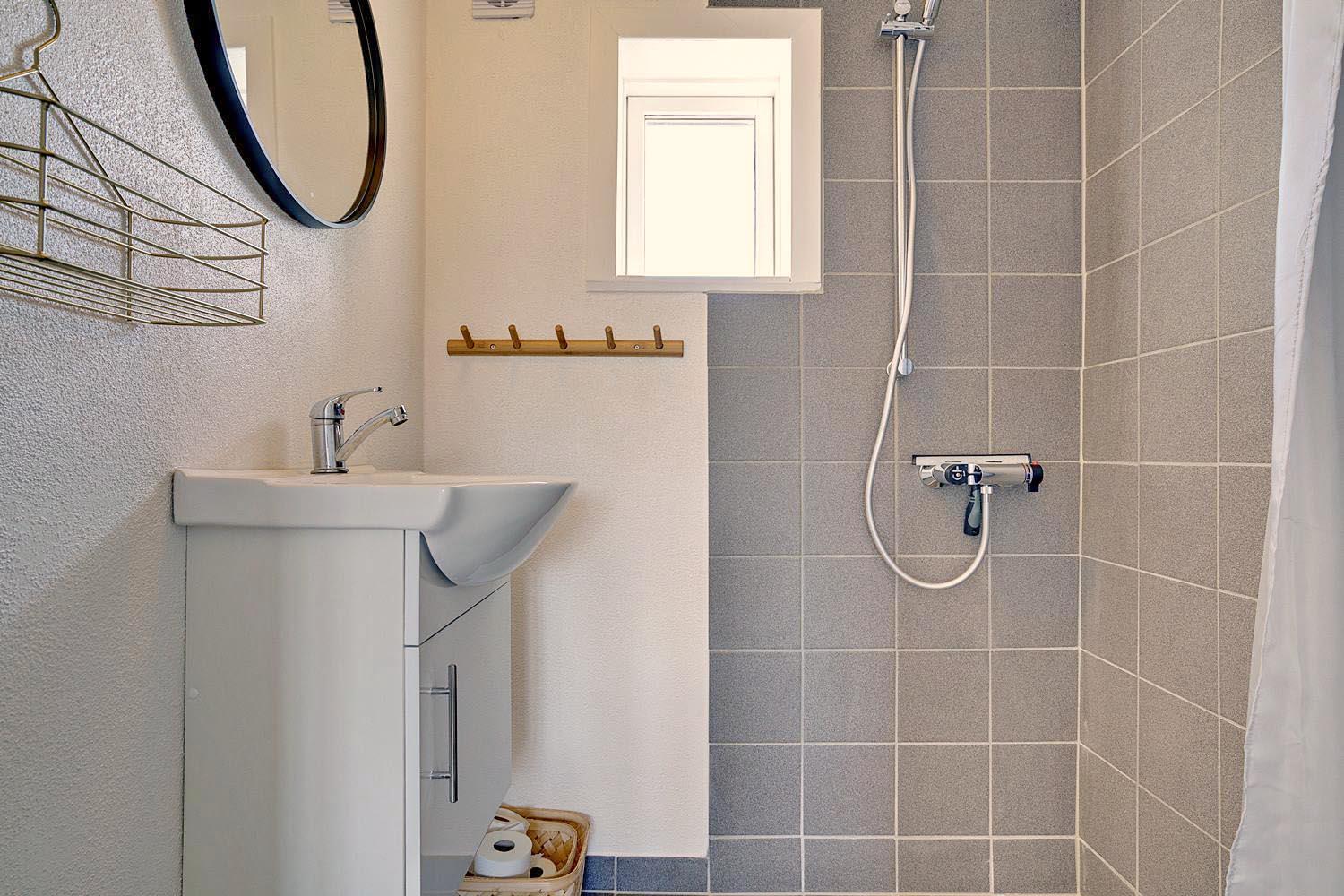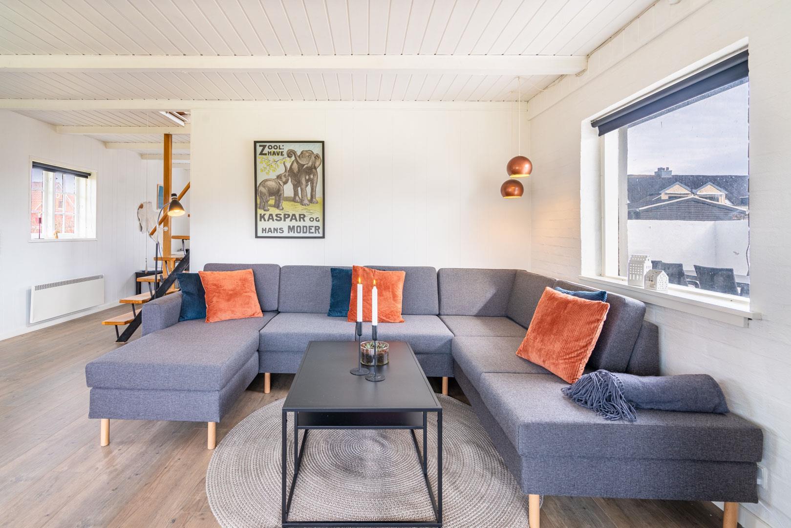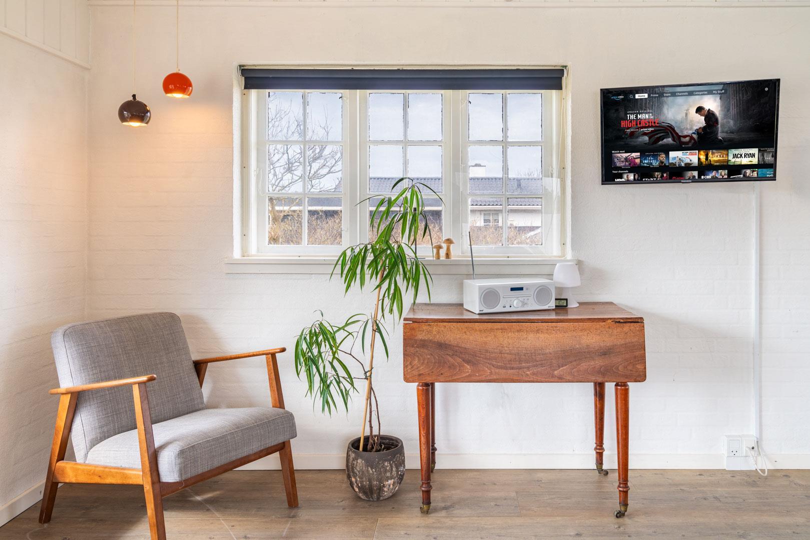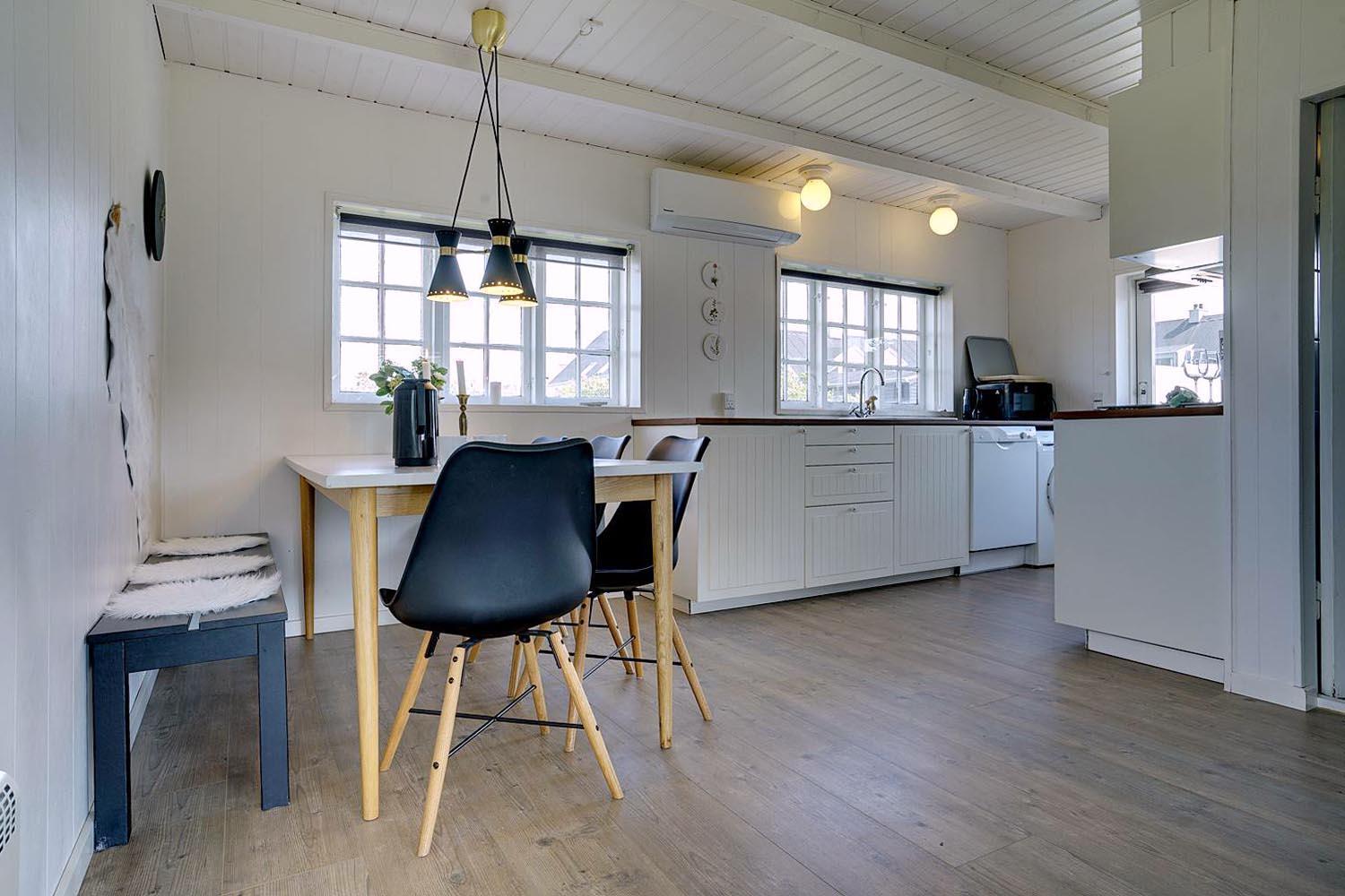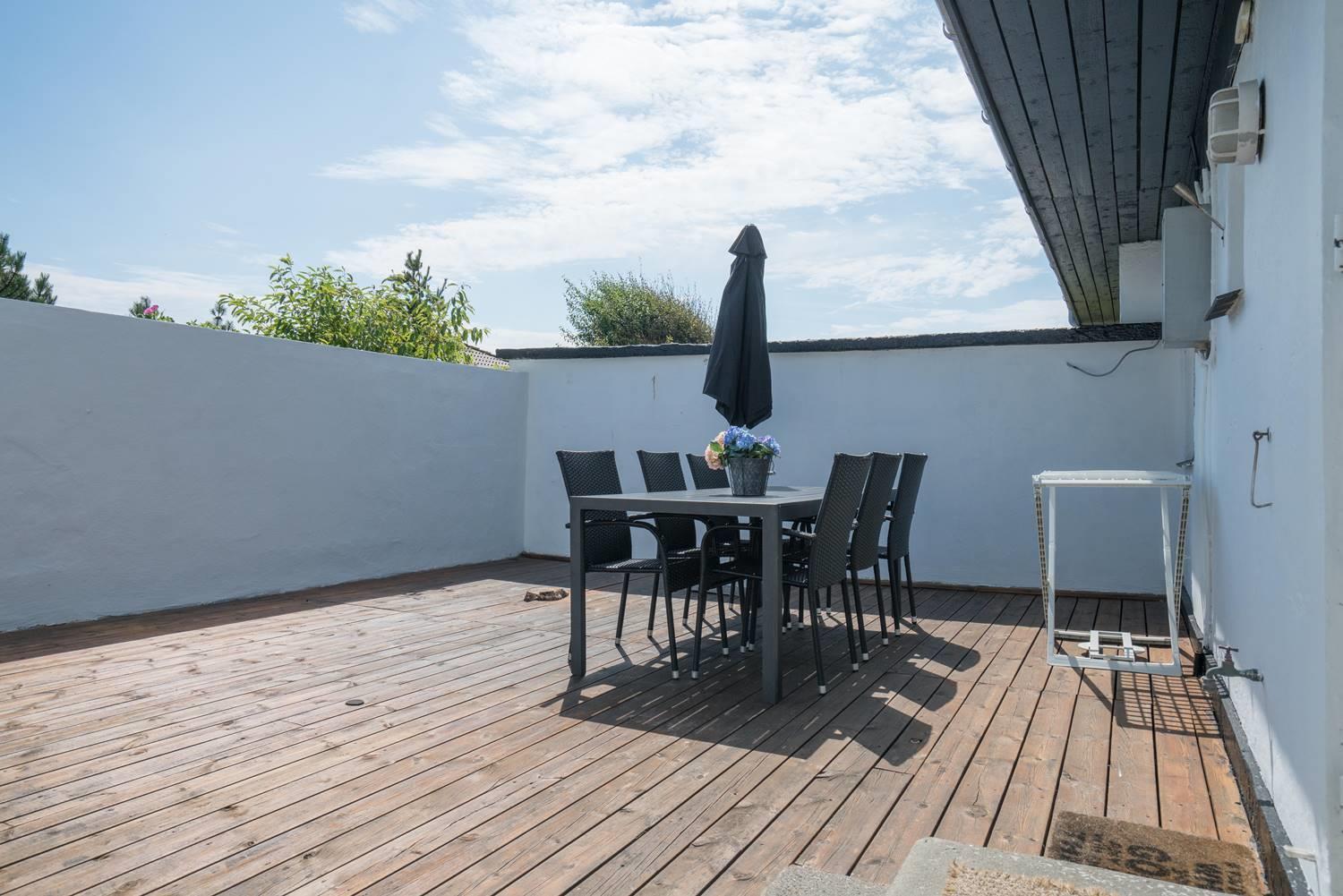 Hyggeligt feriehus nær Henne Strands centrum med lukket have, nyrenoveret badeværelse og gode faciliteter til familier.
