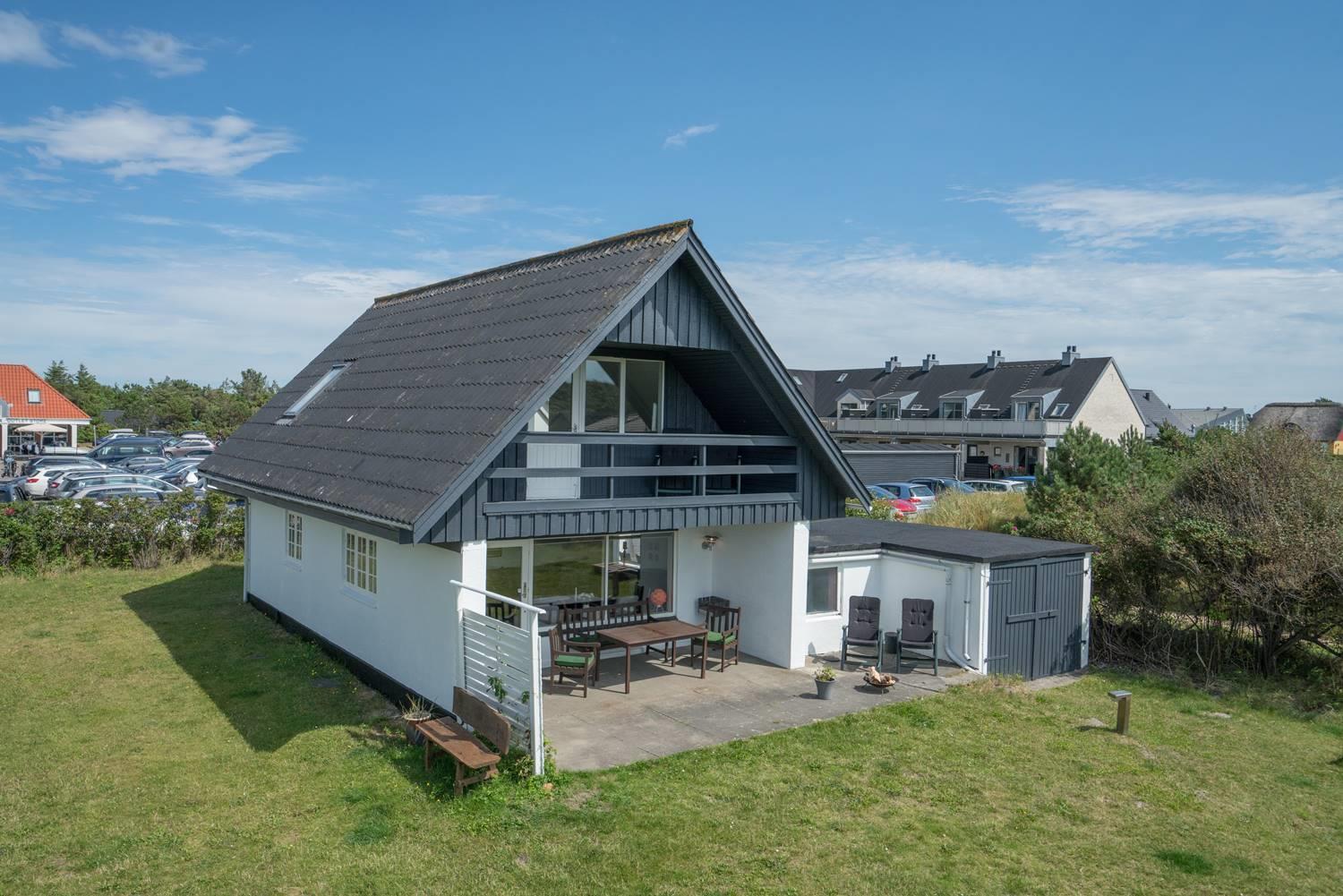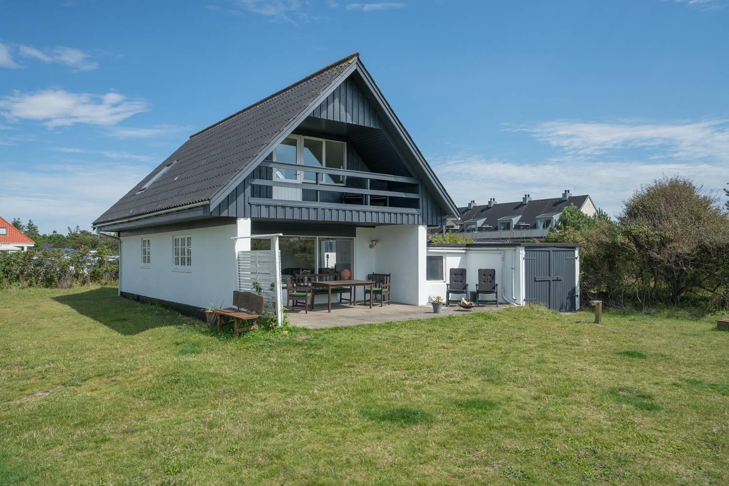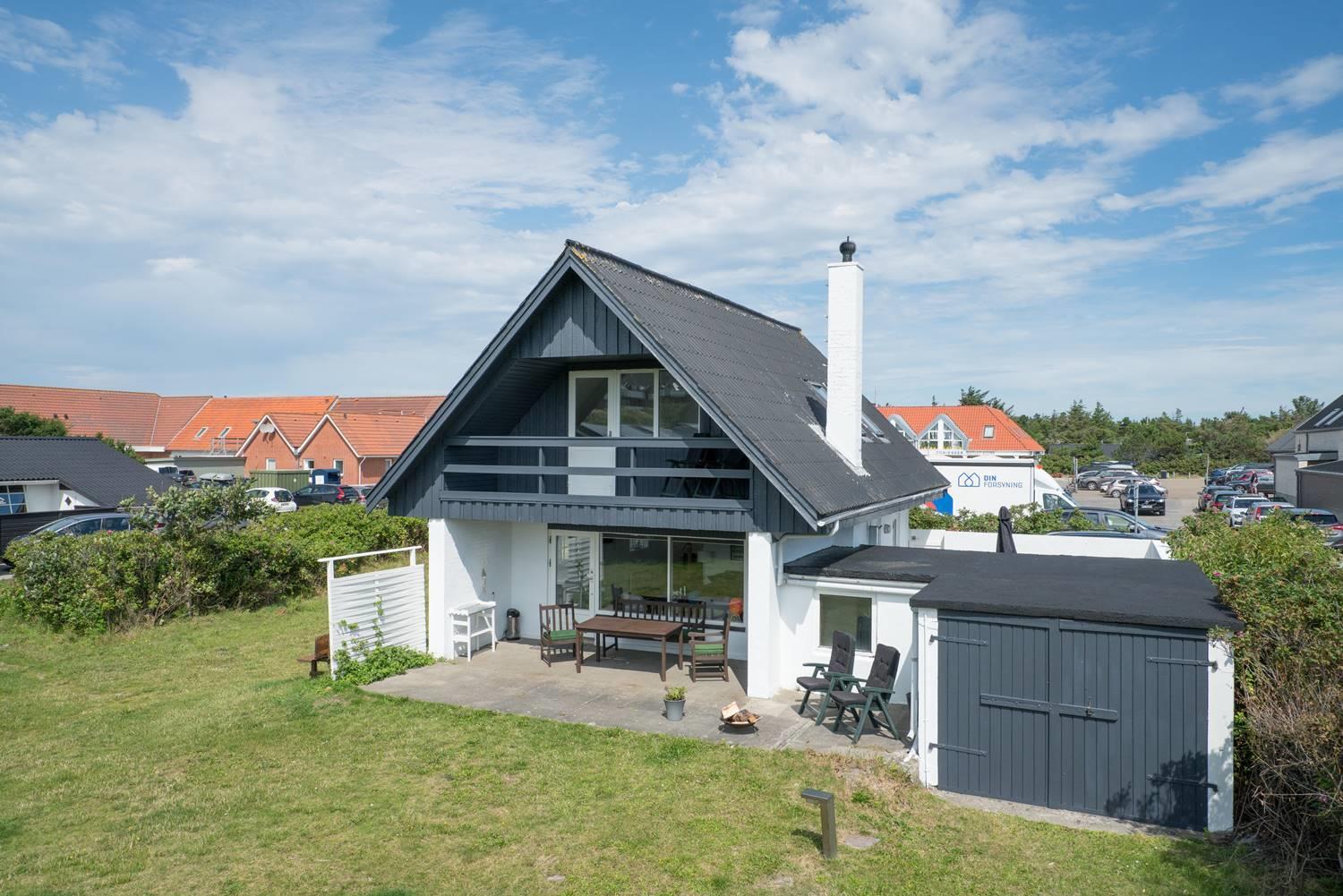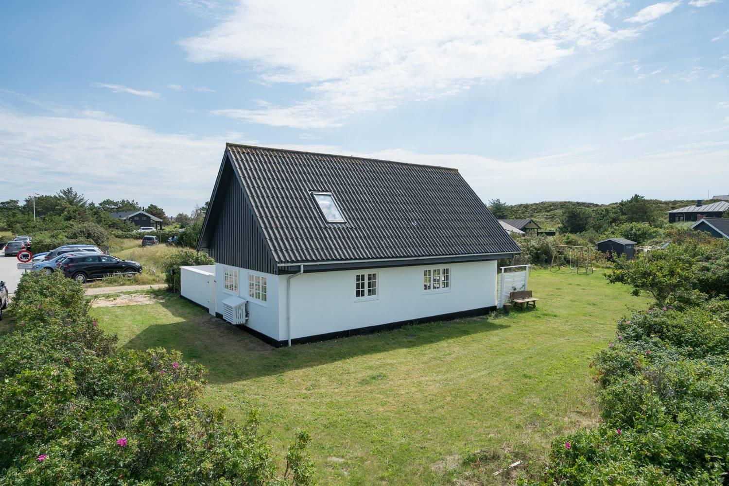 Ældre feriehus beliggende på en dejlig, lukket grund med gode muligheder for leg og boldspil (2 fodboldmål på grunden) og kun 2 min. gang fra Henne Strands livlige handelsliv. Køkken med separat fryser og opvaskemaskine. 3 gode soverum, alle med TV. Fra stuen er direkte adgang til "haven" og terrassen, der er ligeledes lukket gårdhave. Huset fremtræder lyst og venligt. Husets badeværelse er nyrenoveret.