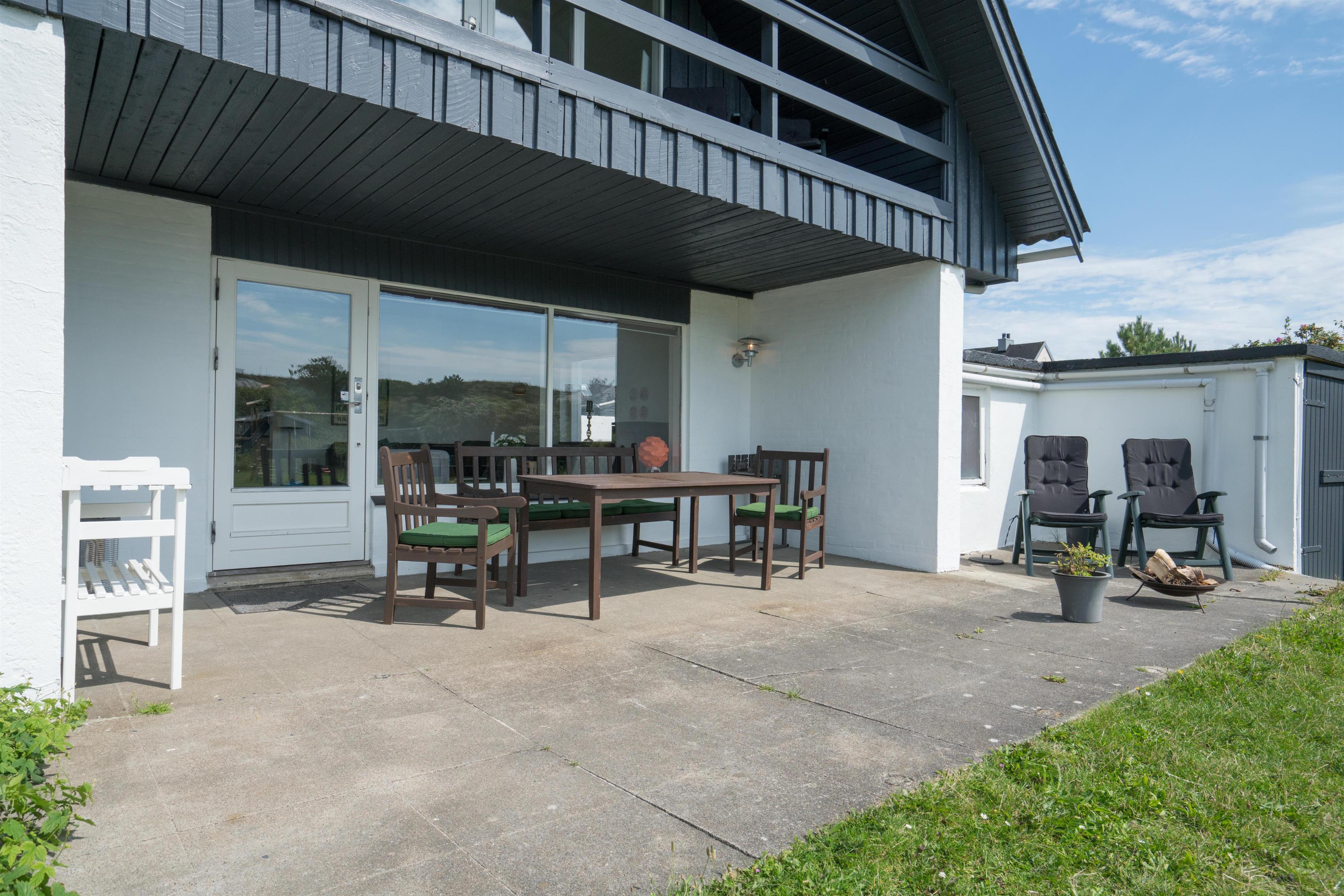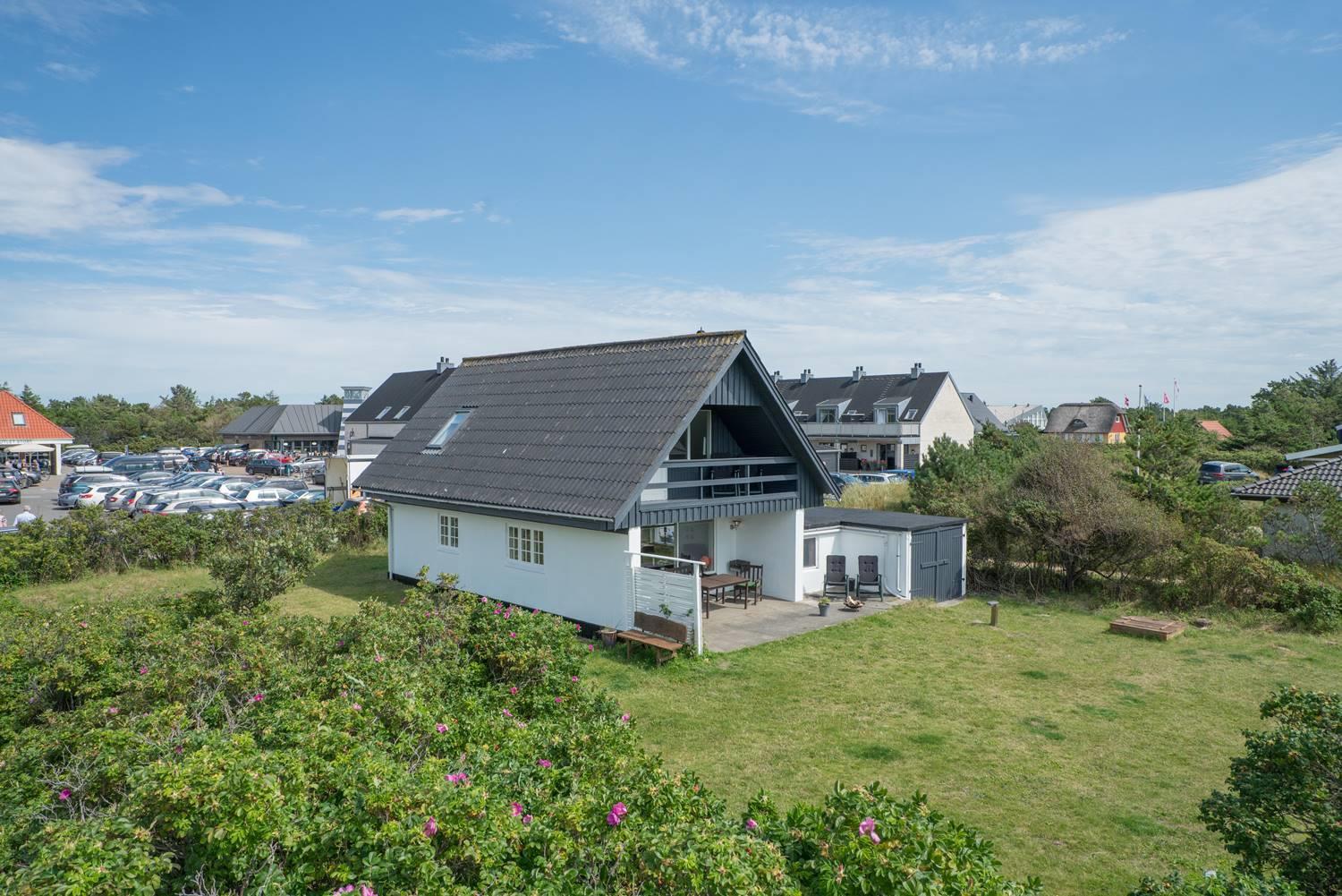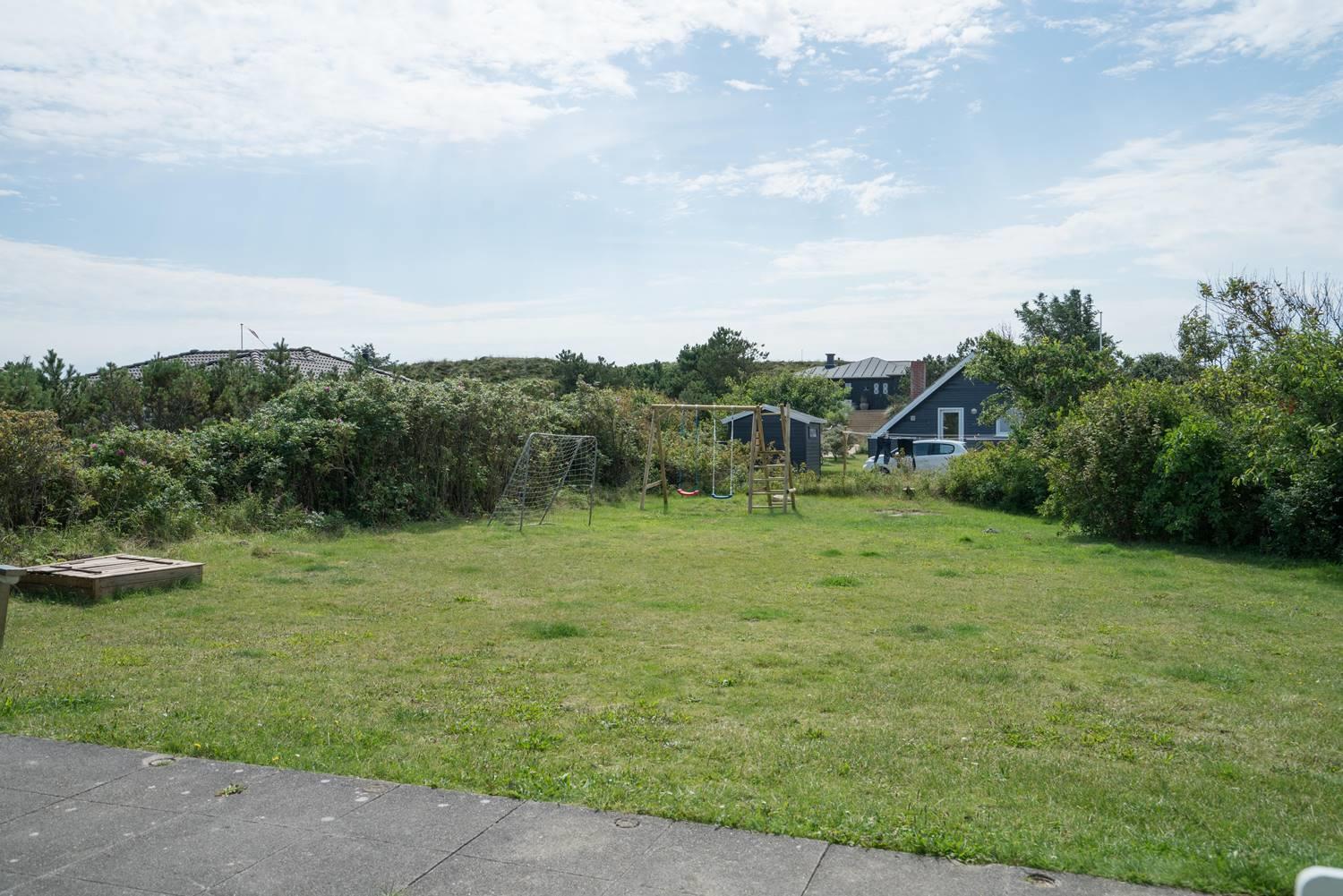 Ældre feriehus beliggende på en dejlig, lukket grund med gode muligheder for leg og boldspil (2 fodboldmål på grunden) og kun 2 min. gang fra Henne Strands livlige handelsliv. Køkken med separat fryser og opvaskemaskine. 3 gode soverum, alle med TV. Fra stuen er direkte adgang til "haven" og terrassen, der er ligeledes lukket gårdhave. Huset fremtræder lyst og venligt. Husets badeværelse er nyrenoveret.