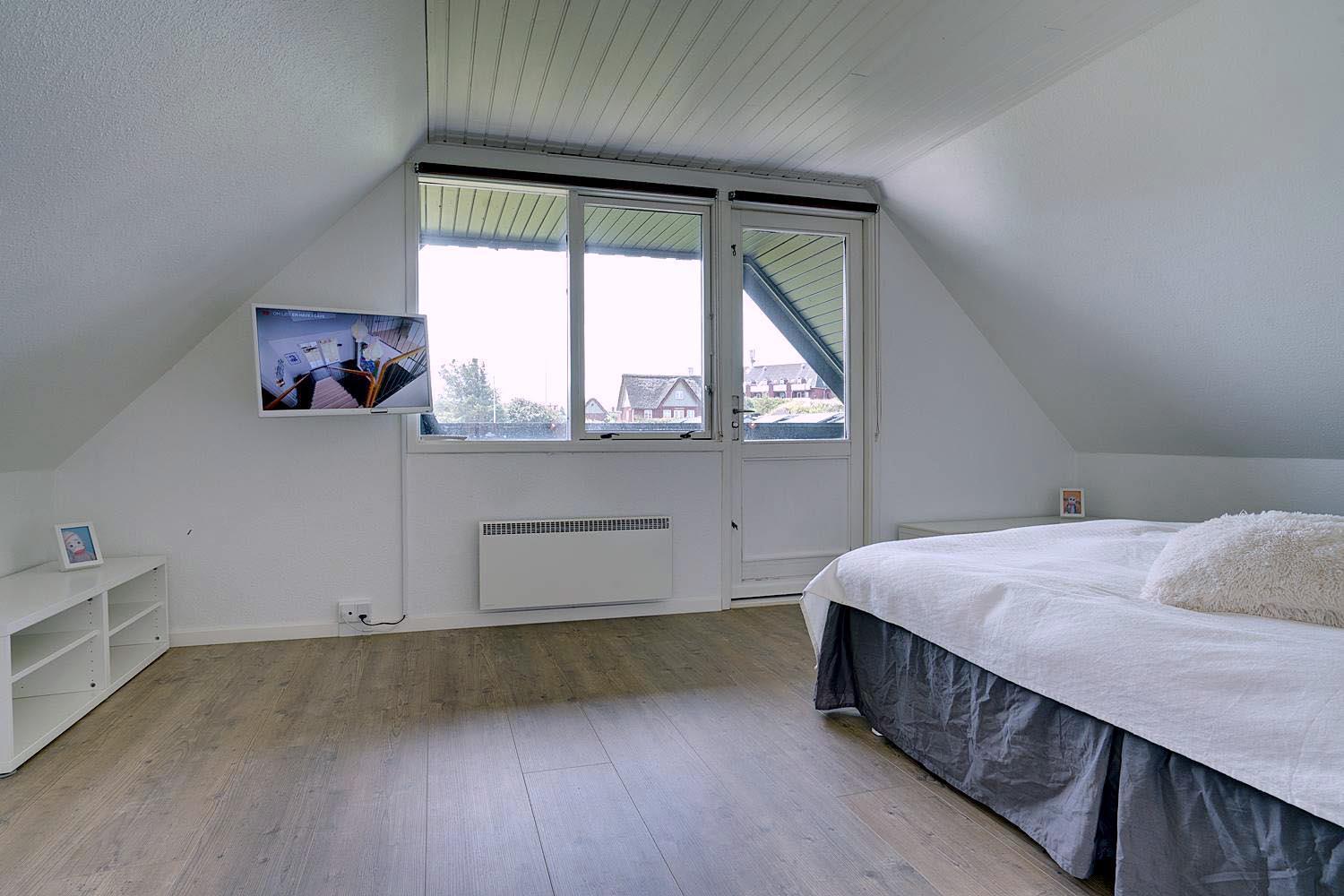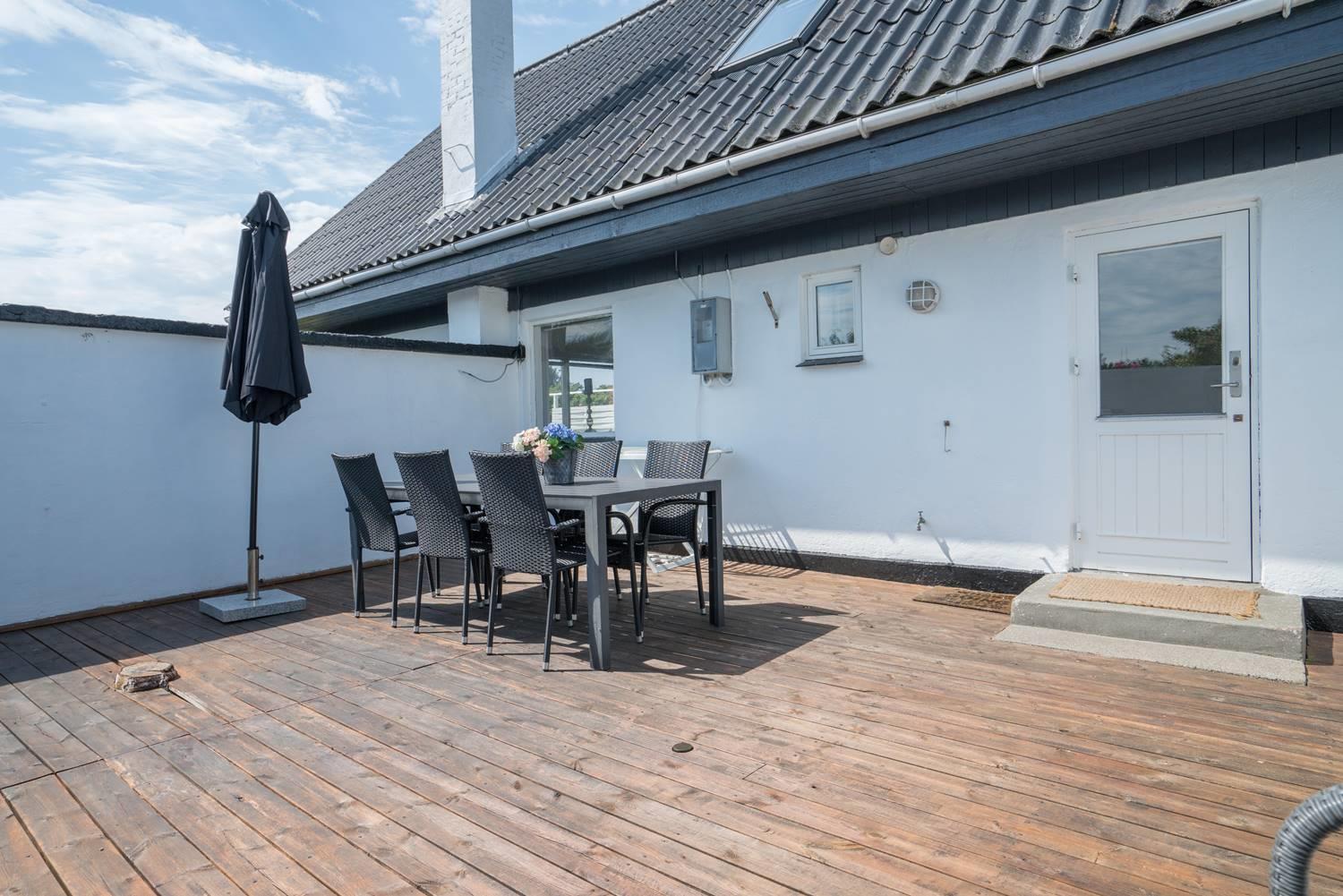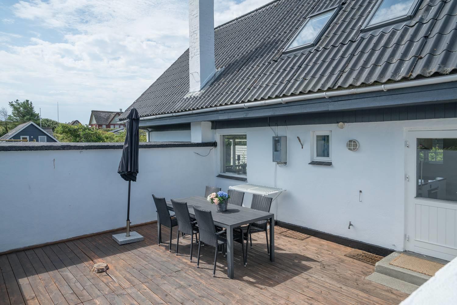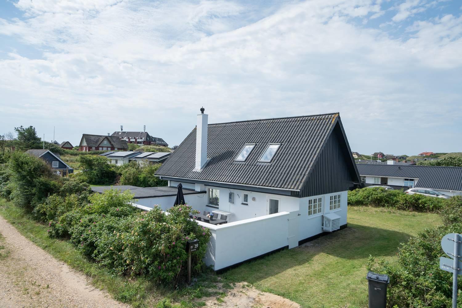 Ældre feriehus beliggende på en dejlig, lukket grund med gode muligheder for leg og boldspil (2 fodboldmål på grunden) og kun 2 min. gang fra Henne Strands livlige handelsliv. Køkken med separat fryser og opvaskemaskine. 3 gode soverum, alle med TV. Fra stuen er direkte adgang til "haven" og terrassen, der er ligeledes lukket gårdhave. Huset fremtræder lyst og venligt. Husets badeværelse er nyrenoveret.