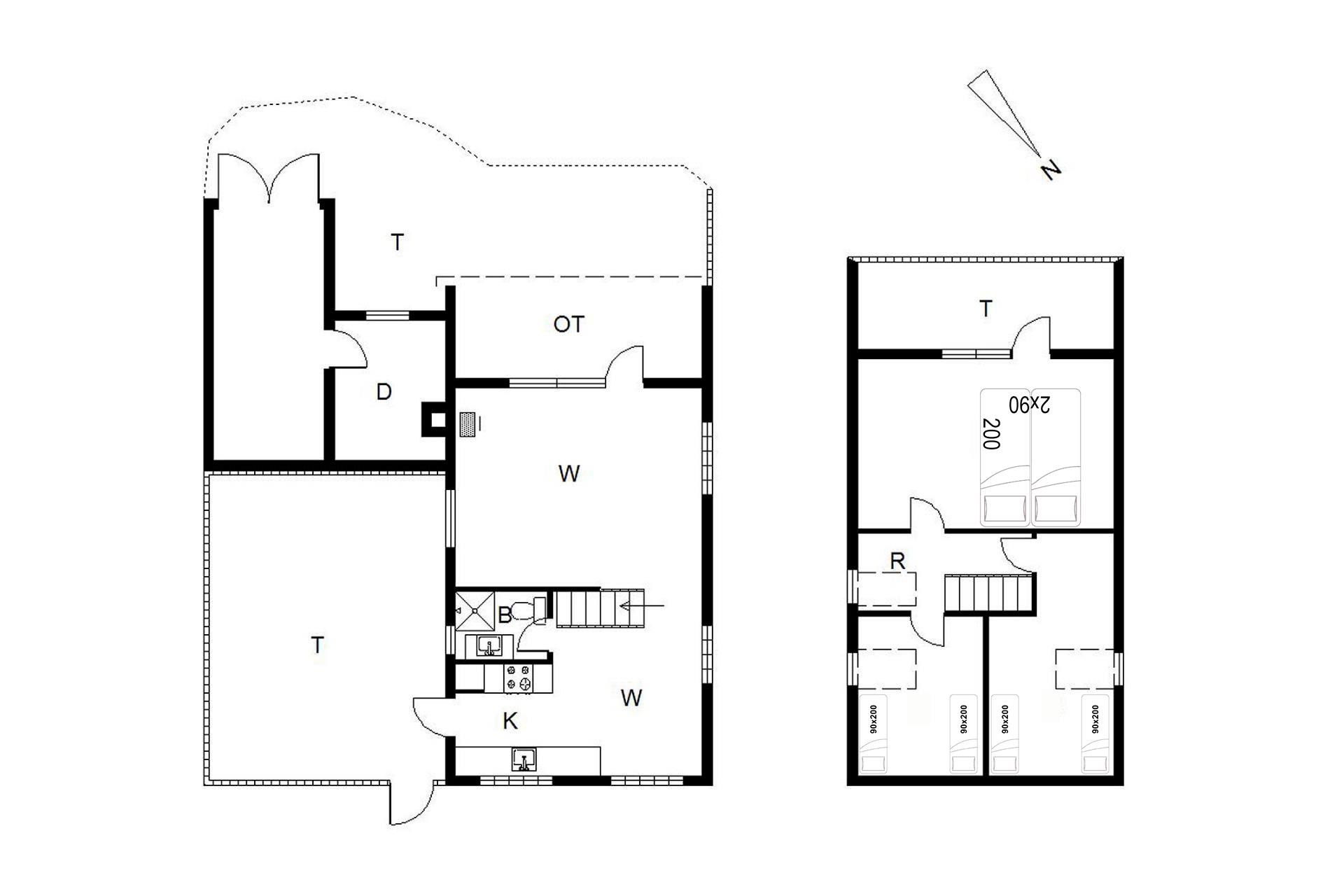 Sengestørrelse: 1 dobbeltsenge med 2 madrasser 90 x 200 cm + 4 enkeltsenge 90 x 200 cm