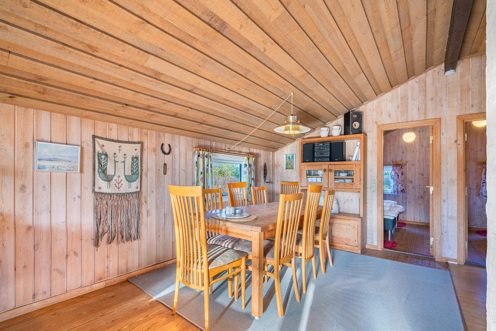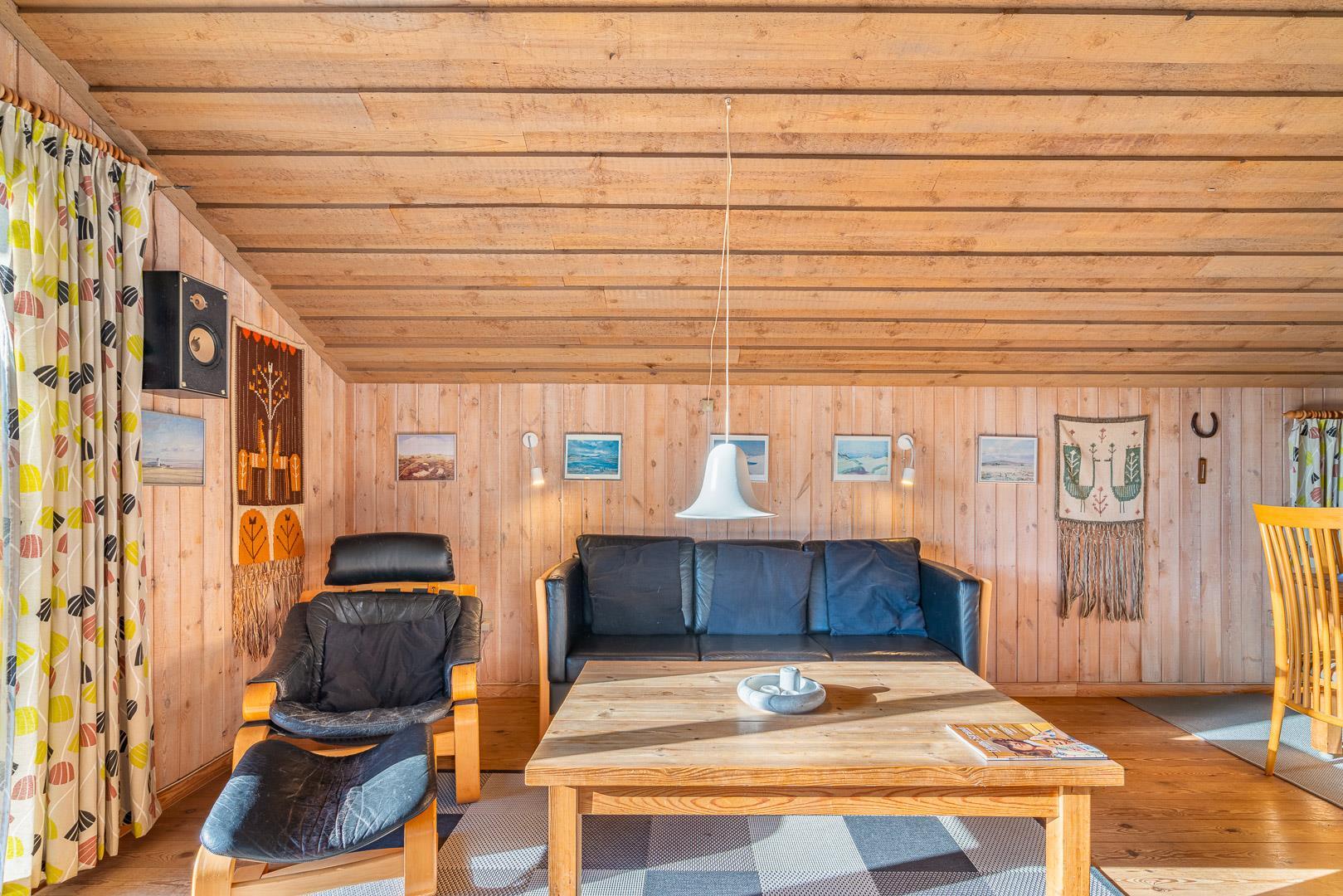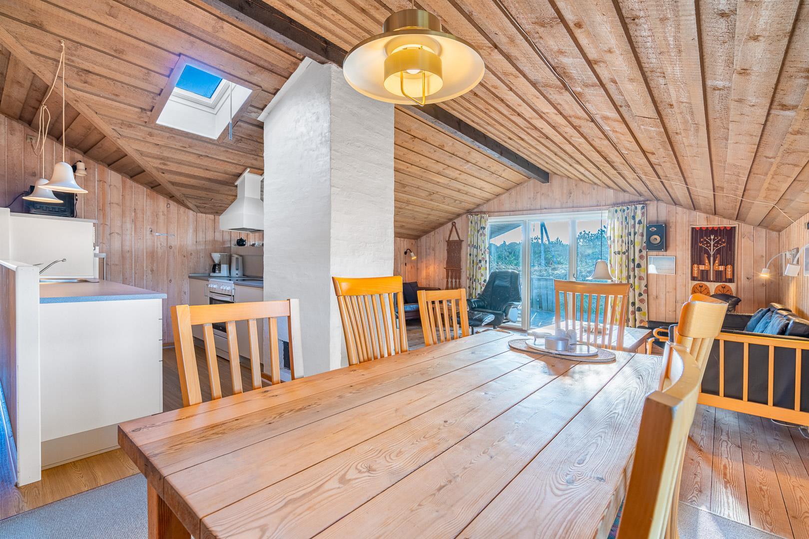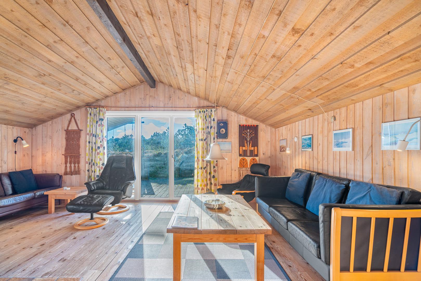 Indendørs mødes I af en hjemlig atmosfære. Køkkenet ligger i forlængelse af stuen, hvor brændeovnen sætter stemningen på kølige aftener.
