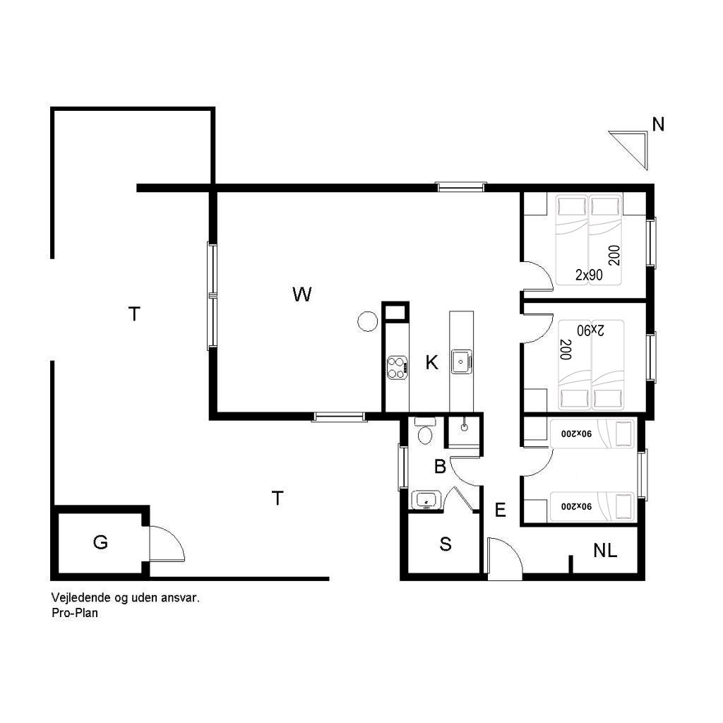 Sengestørrelse: 2 dobbeltsenge med 2 madrasser 90 x 200 cm + 2 enkeltsenge 90 x 200 cm