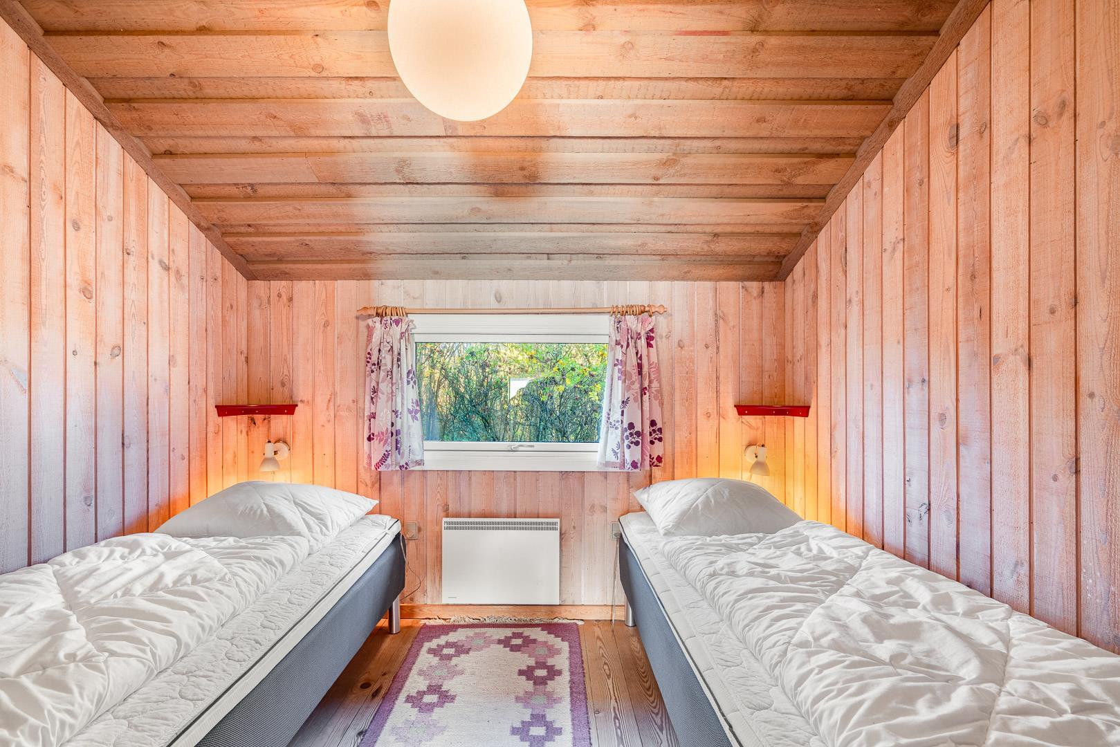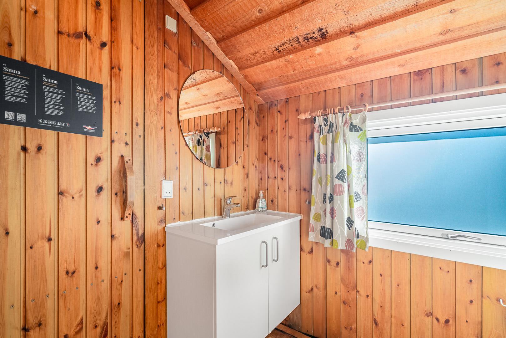 Feriehuset har plads til op til 6 personer fordelt på 3 soveværelser – to med dobbeltsenge (bestående af to madrasser à 90 x 200 cm) og ét værelse med to enkeltsenge. Badeværelset byder på ekstra luksus i form af en sauna – perfekt til afslapning efter en aktiv dag i naturen.