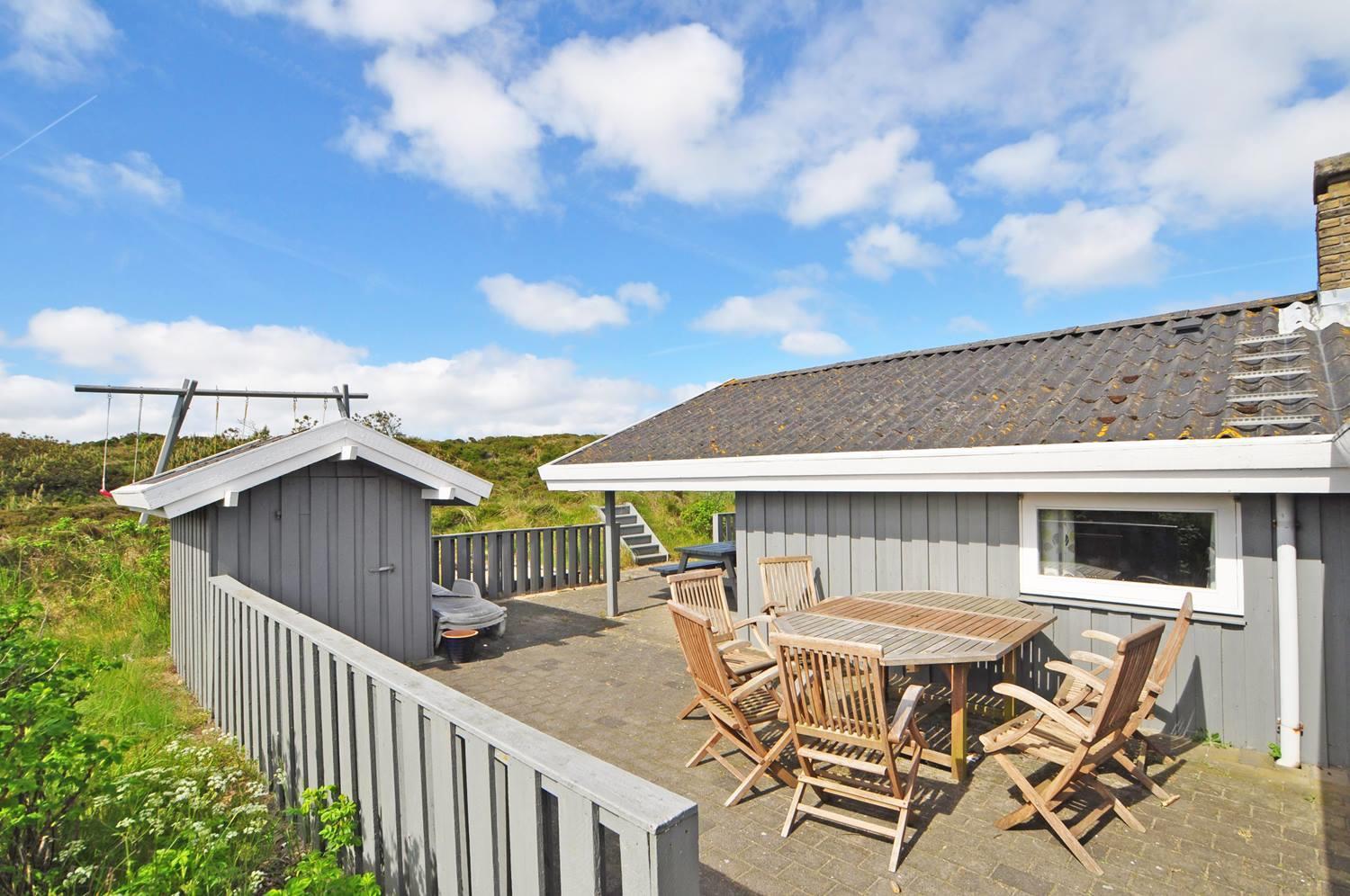 Huset har en skøn, stor terrasse med både overdækkede og åbne områder, hvor I altid kan finde en solrig eller læfuld krog – perfekt til morgenkaffen, grillmiddage eller bare ren afslapning med en god bog.