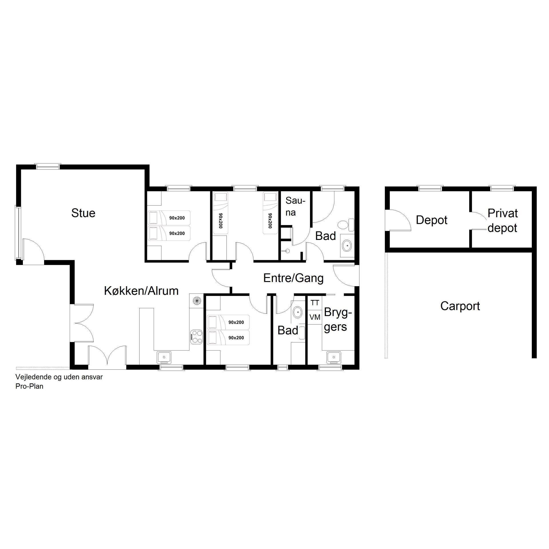 Sengestørrelse: 2 dobbeltsenge med 2 madrasser 90 x 200 cm + 2 enkeltsenge 90 x 200 cm.