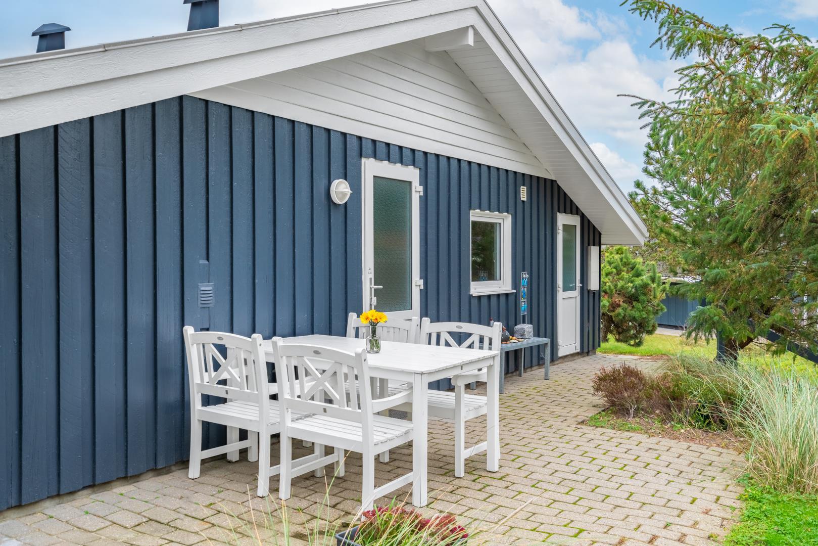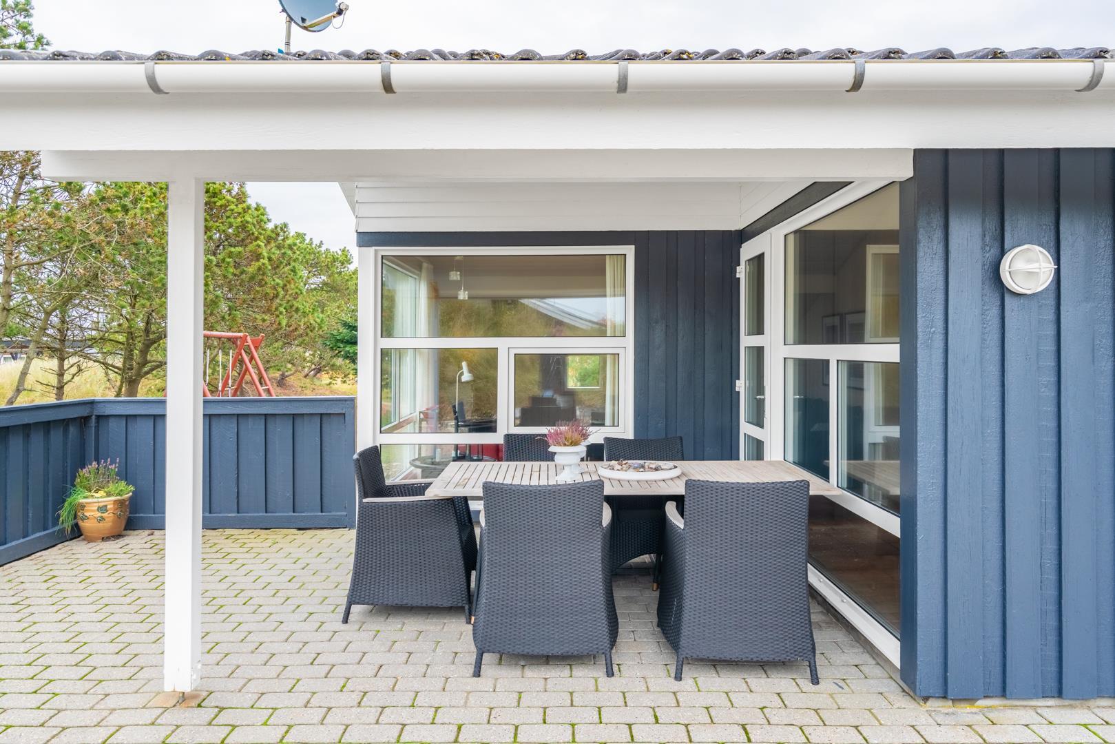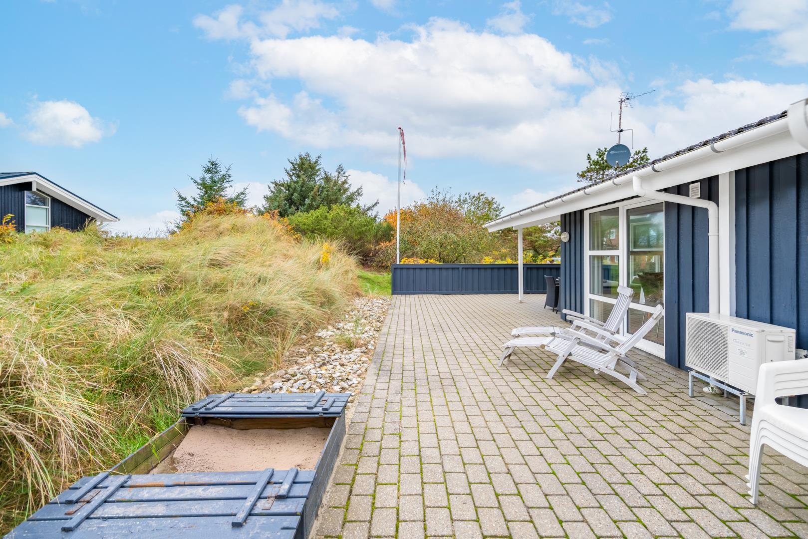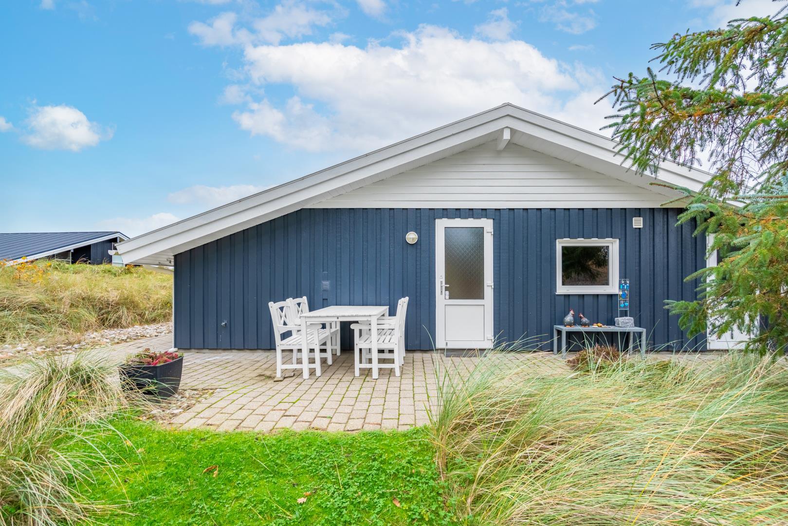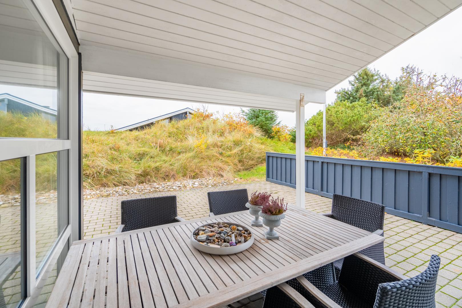 Velholdt kvalitetshus med sauna og spa nær Henne Strand, perfekt til afslapning hele dagen på overdækket terrasse.