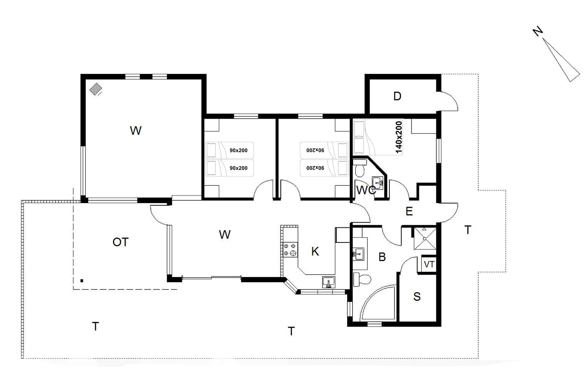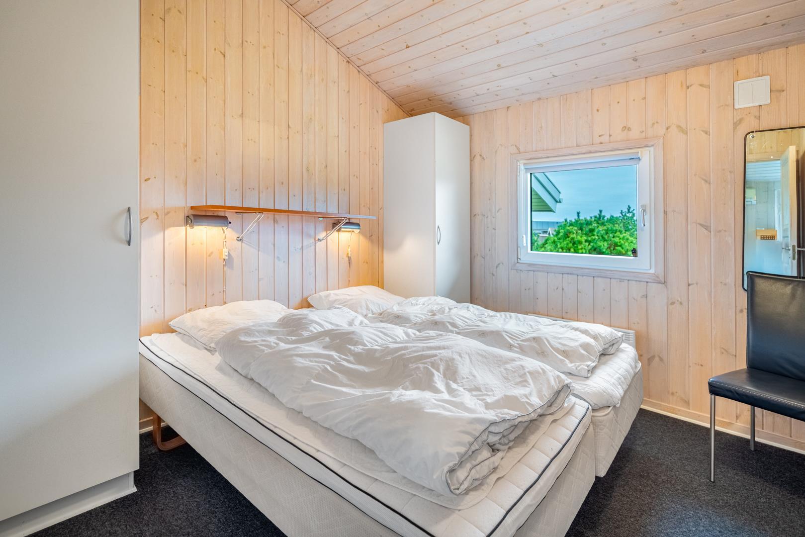 Sengestørrelse: 2 dobbeltsenge med 2 madrasser 90 x 200 cm + 1 dobbeltseng 140 x 200 cm.