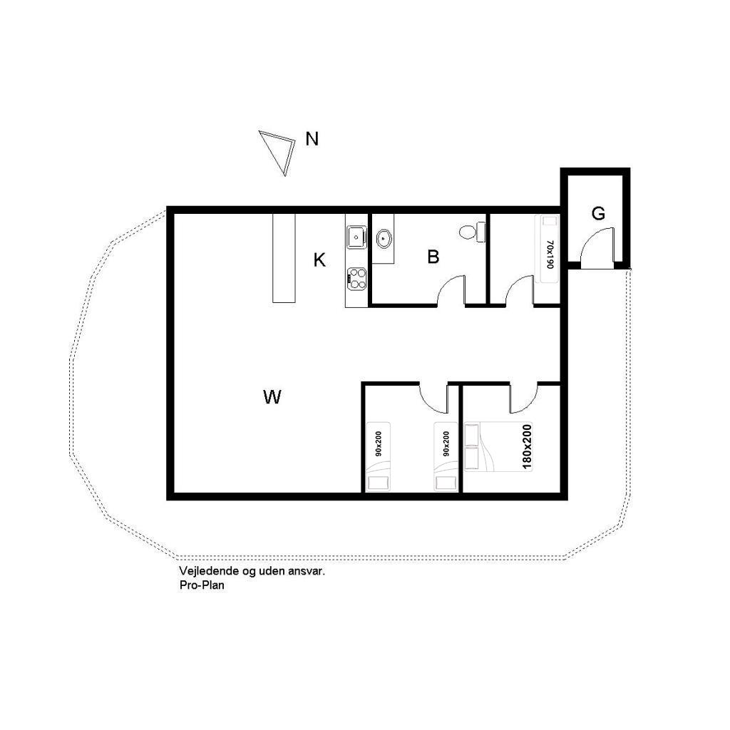 Sengestørrelse: 1 dobbeltseng 180 x 200 cm + 2 enkeltsenge 90 x 200 cm + 1 køjeseng 70 x 190 cm.