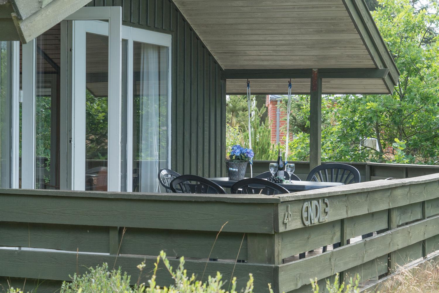Hyggeligt feriehus i Henne Strand med brændeovn, delvis overdækket terrasse og tæt på både strand og indkøb.
