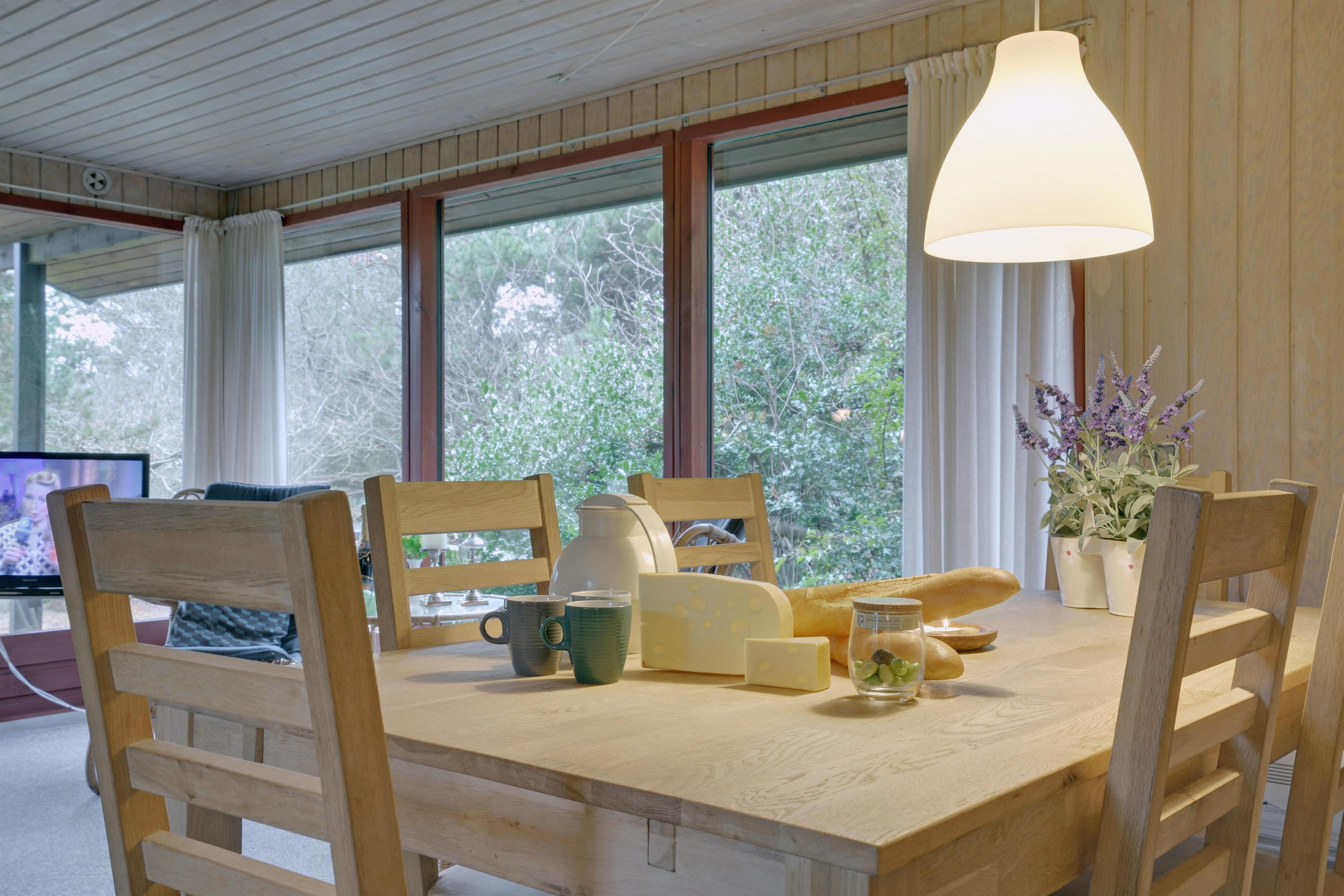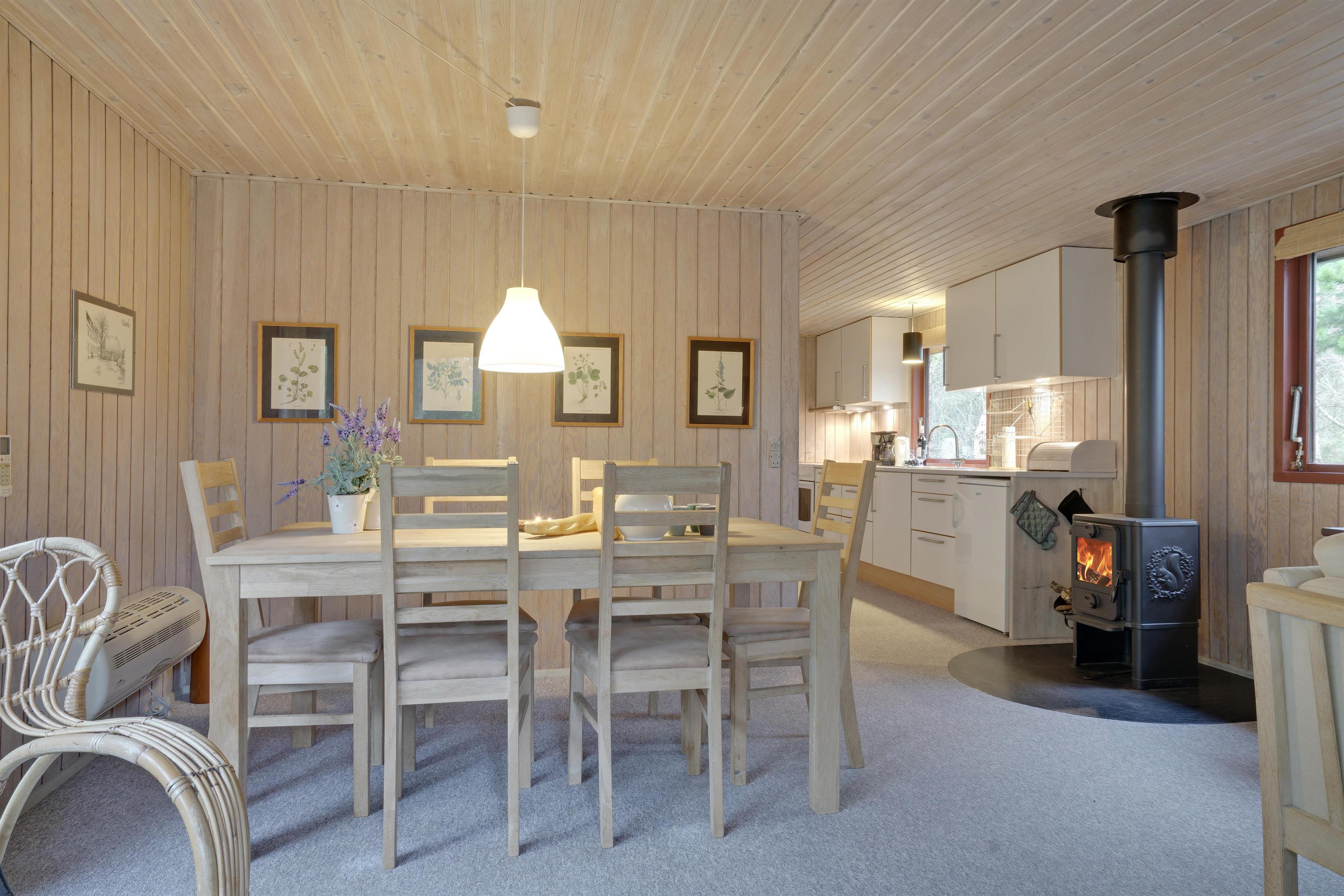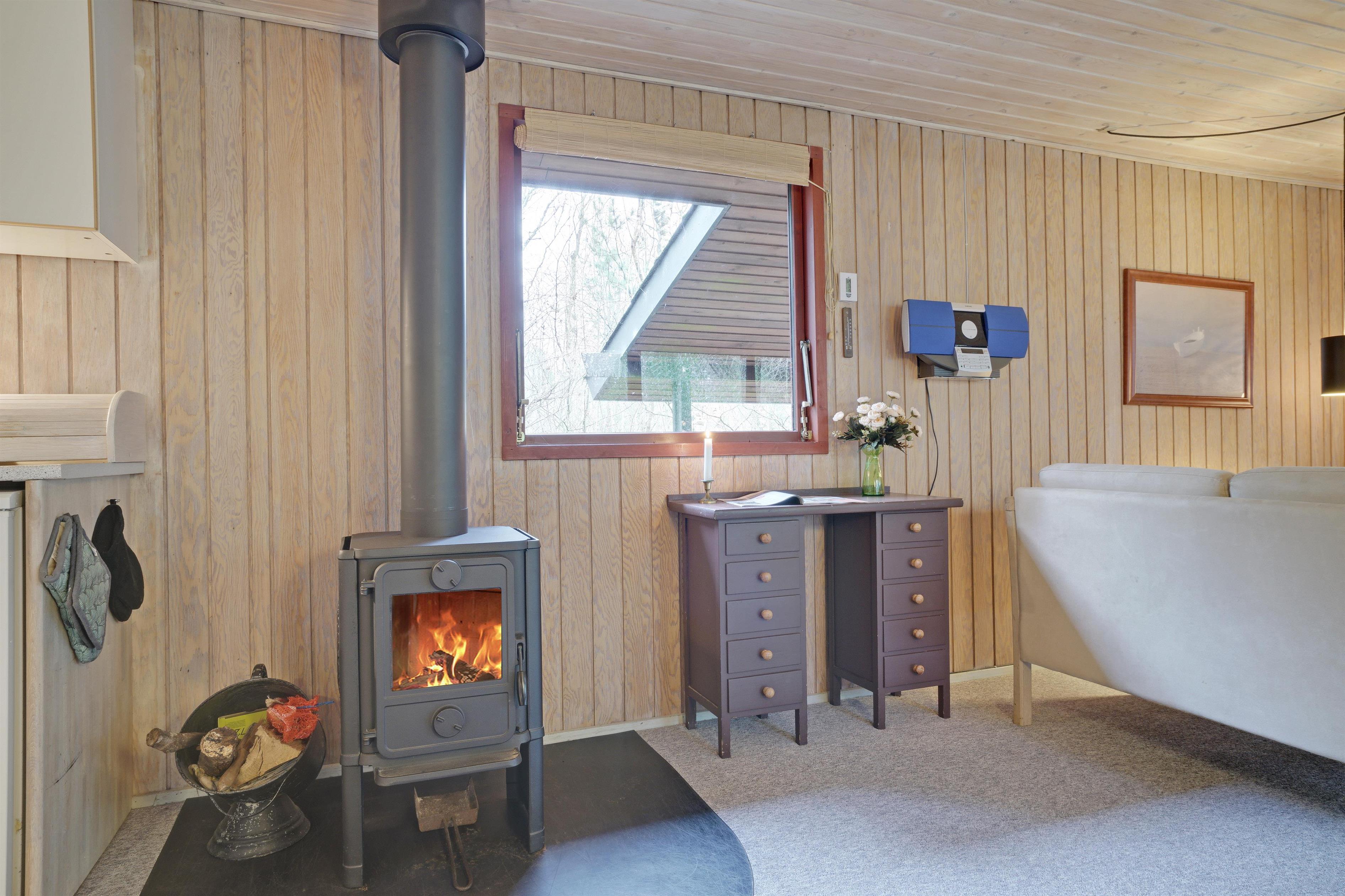 Hyggeligt feriehus beliggende på en ugeneret og meget børnevenlig naturgrund omkranset af høje træer. Der er også tænkt på de små gæster så der er en sandkasse på grunden, samt god plads til boldspil. Der er både åben og overdækket terrasse. Velholdt Køkkenet og badeværelse med bruser. 3 soverum samt en hyggelig stue med brændeovn og gratis internet. Energibesparende varmepumpe (aircondition).
