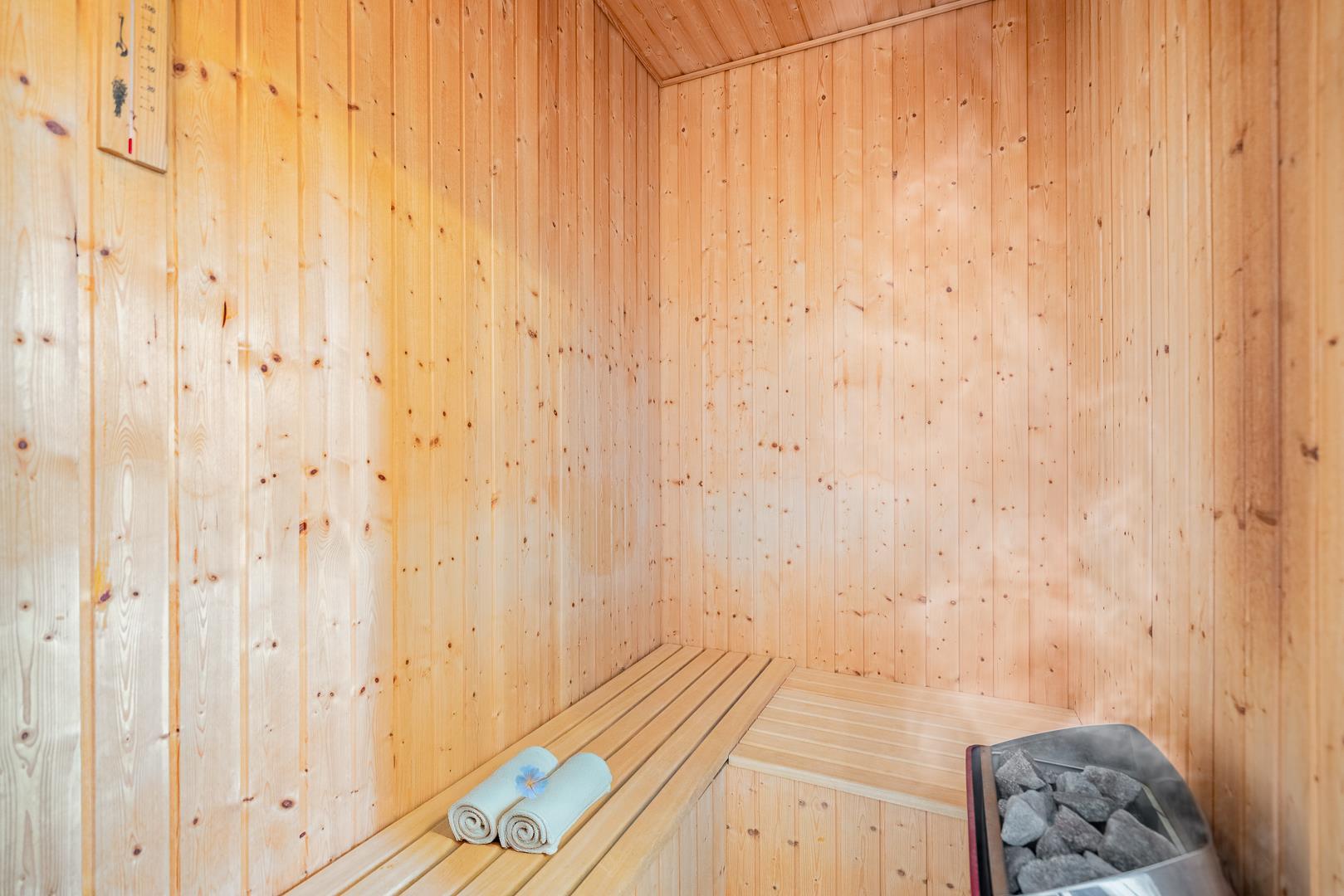 Huset har to flotte badeværelser med bruser, hvor det ene har både spabad og sauna – ideelt til at forkæle dig selv og løsne op for spændinger efter en aktiv dag.