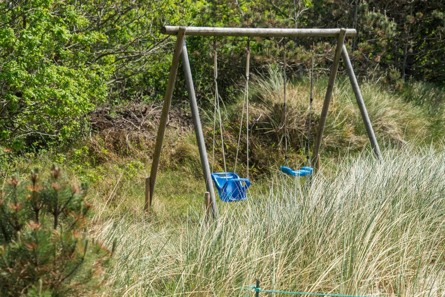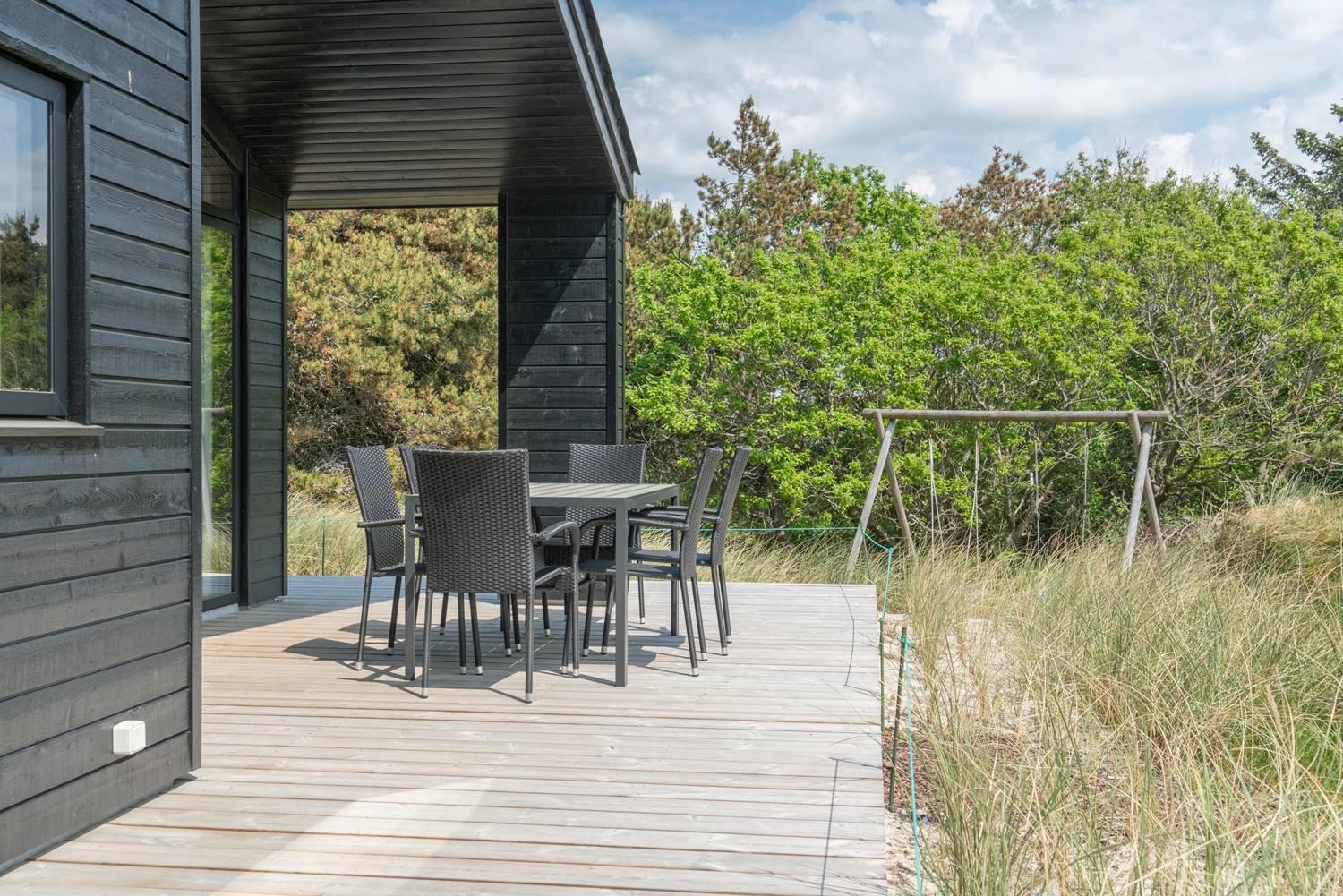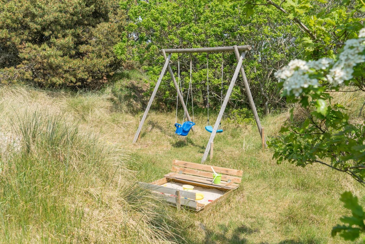 Udenfor kan I nyde hinandens selskab uden forstyrrelser fra andre takket være de smukke nåletræer, der indrammer grunden. Foruden den skønne træterrasse, som der er udgang til fra stuen, byder haven på både gyngestativ og sandkasse.