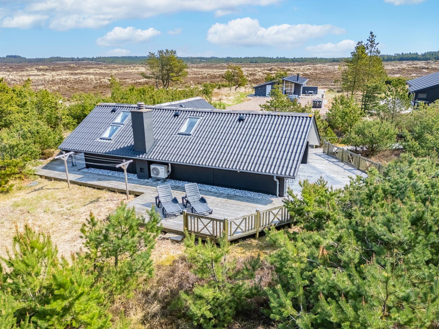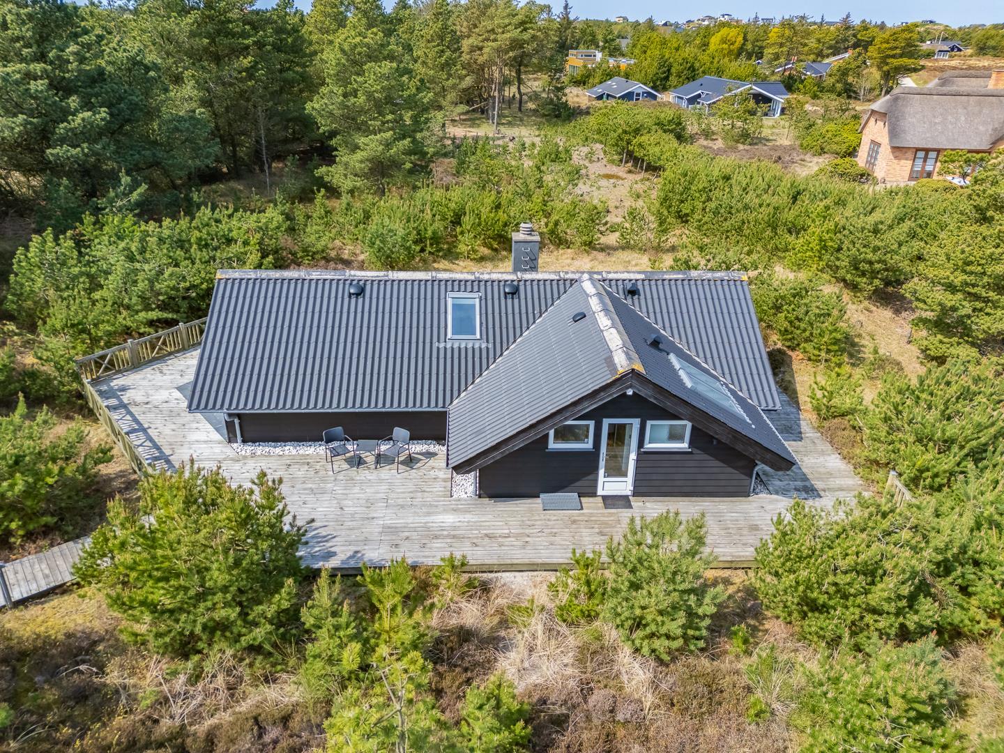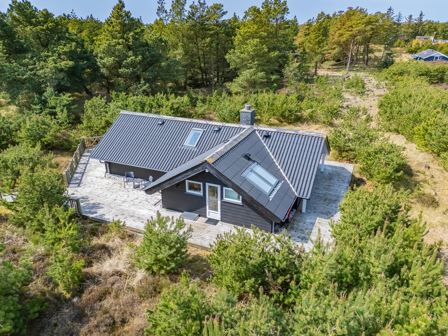 Nyd en afslappende ferie i denne charmerende oase af ro. Sommerhuset ligger fredeligt for enden af en blind vej, omgivet af tæt bevoksning og beliggende på en ugeneret klitgrund – perfekt til dig, der søger privatliv og naturskønne omgivelser.