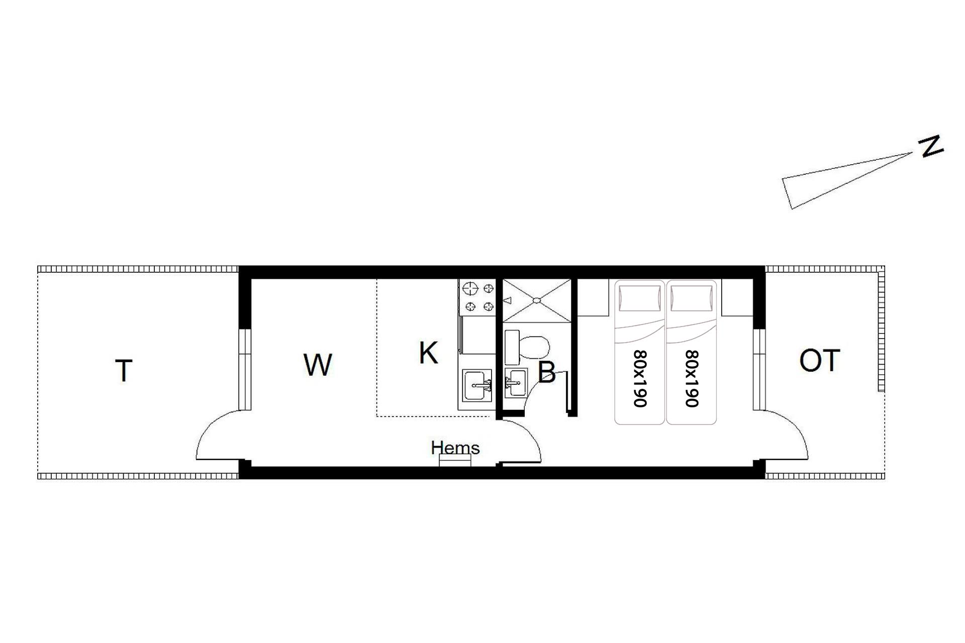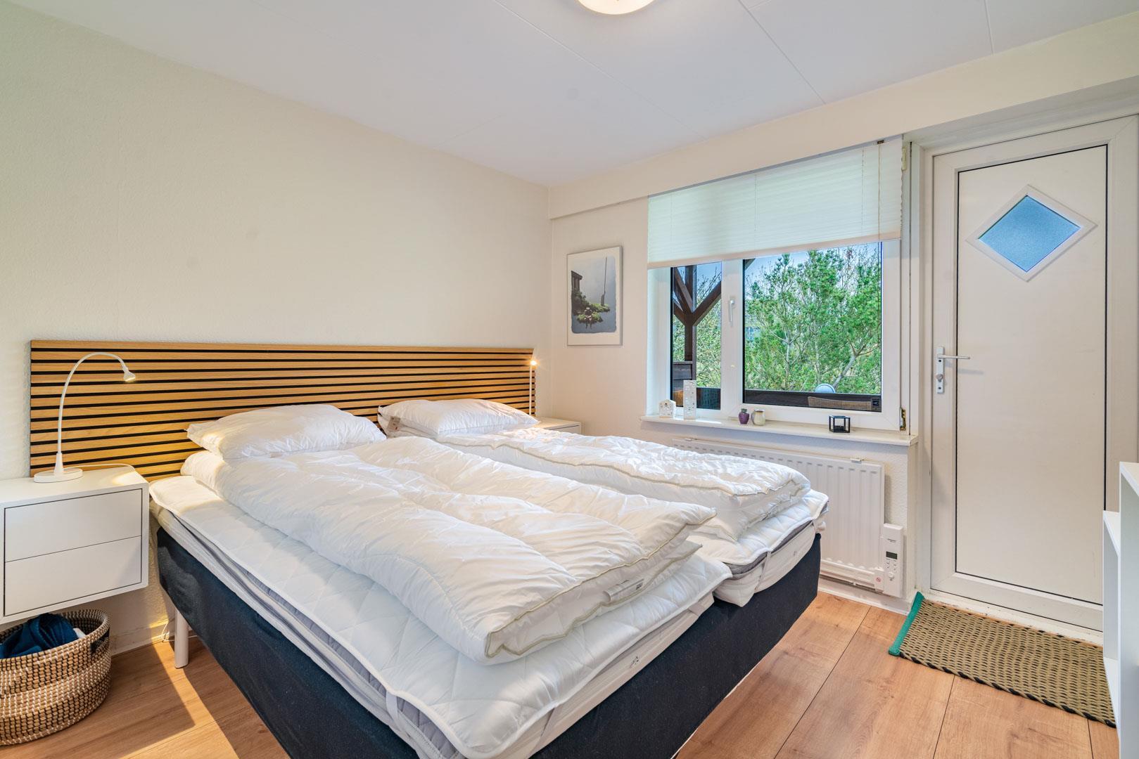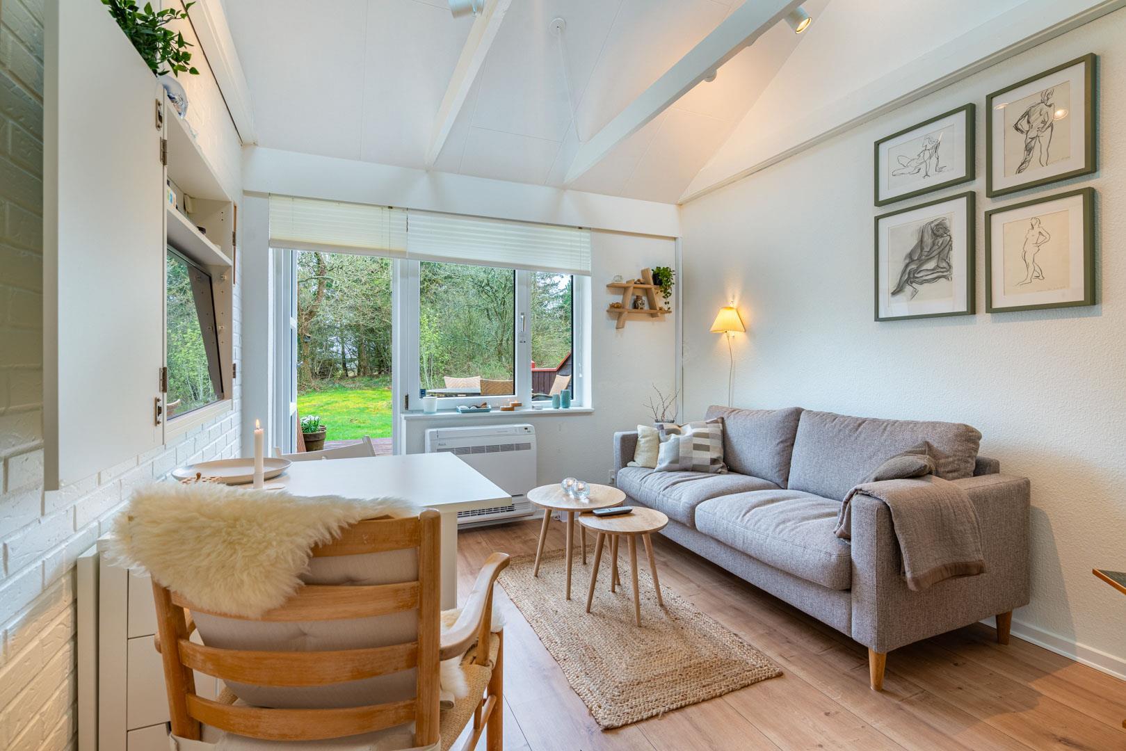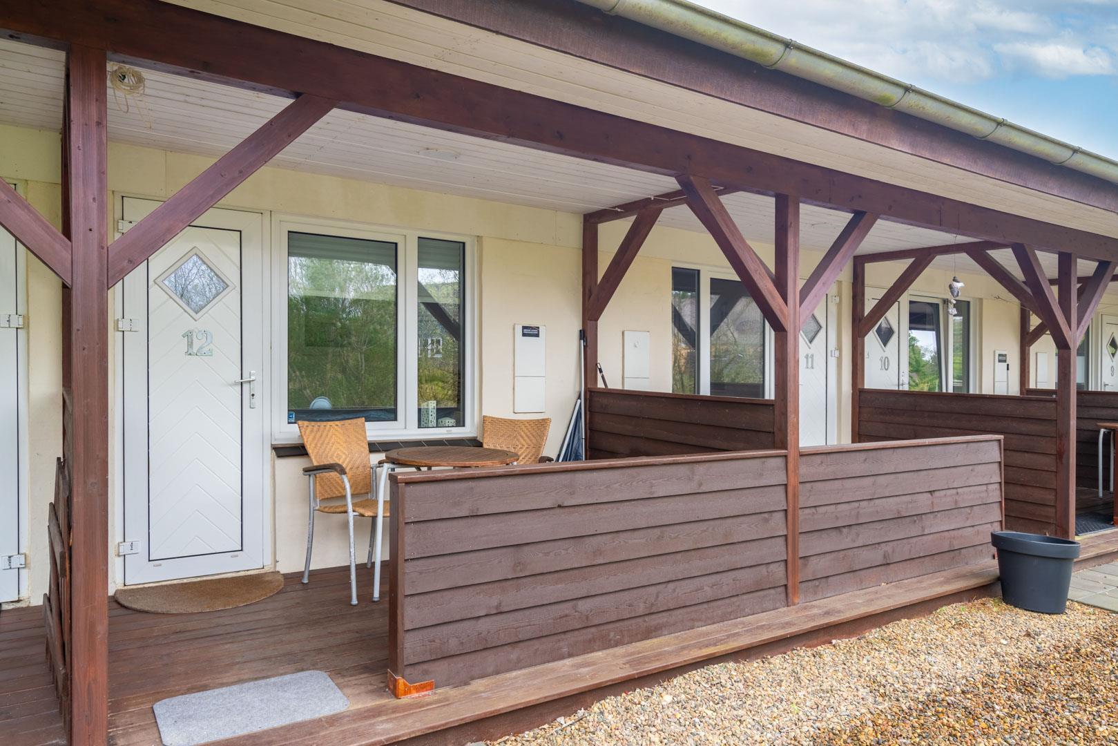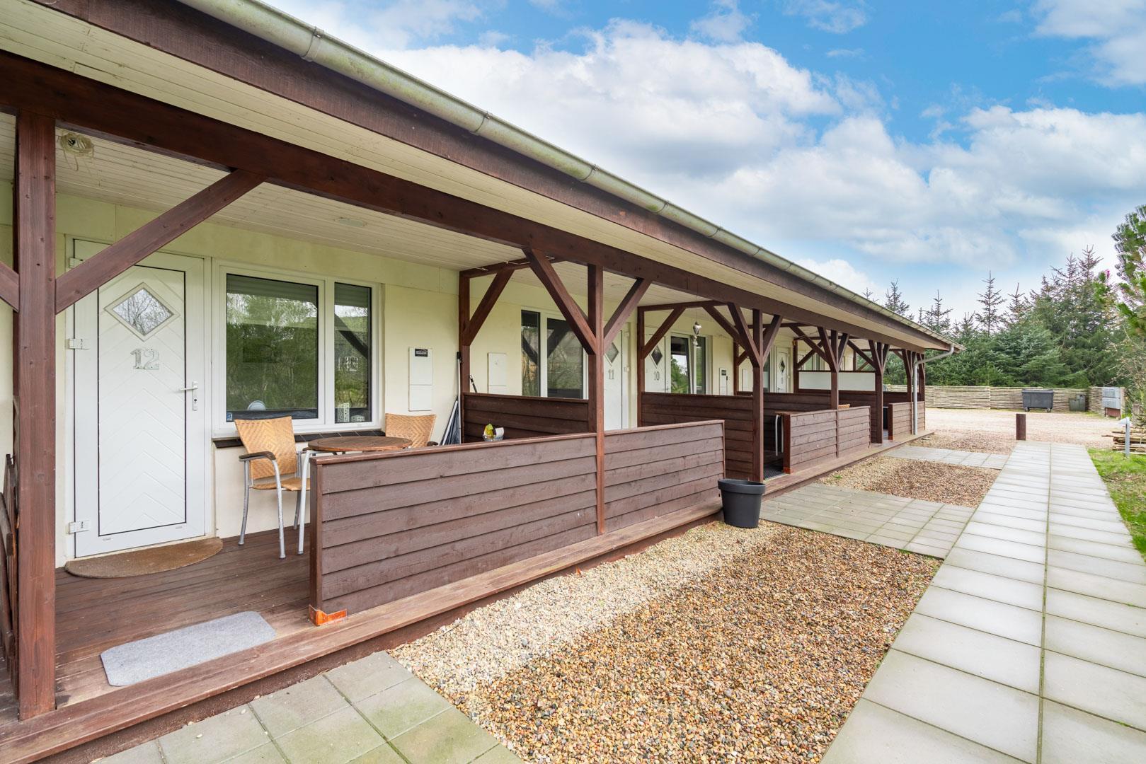 Velpasset, hyggeligt og lyst indrettet ferielejlighed opført i 2005. Der er lavet nyt badeværelse i 2024. Til lejligheden hører såvel overdækket terrasse samt en åben terrasse med havemøbler. Køkkenet ligger i forbindelse med spisestuen. Et soverum med dobbeltseng. Ferielejligheden ligger i et naturområde med gode muligheder for vandreture. Lejligheden ligger endvidere 2 minutters gang fra Henne Golfklub. Vesterhavet og Henne Strand med mange indkøbsmuligheder. I perioden fra påske til efterårsferien er der 200 m til campingpladsen, hvor der er lille købmandsbutik.