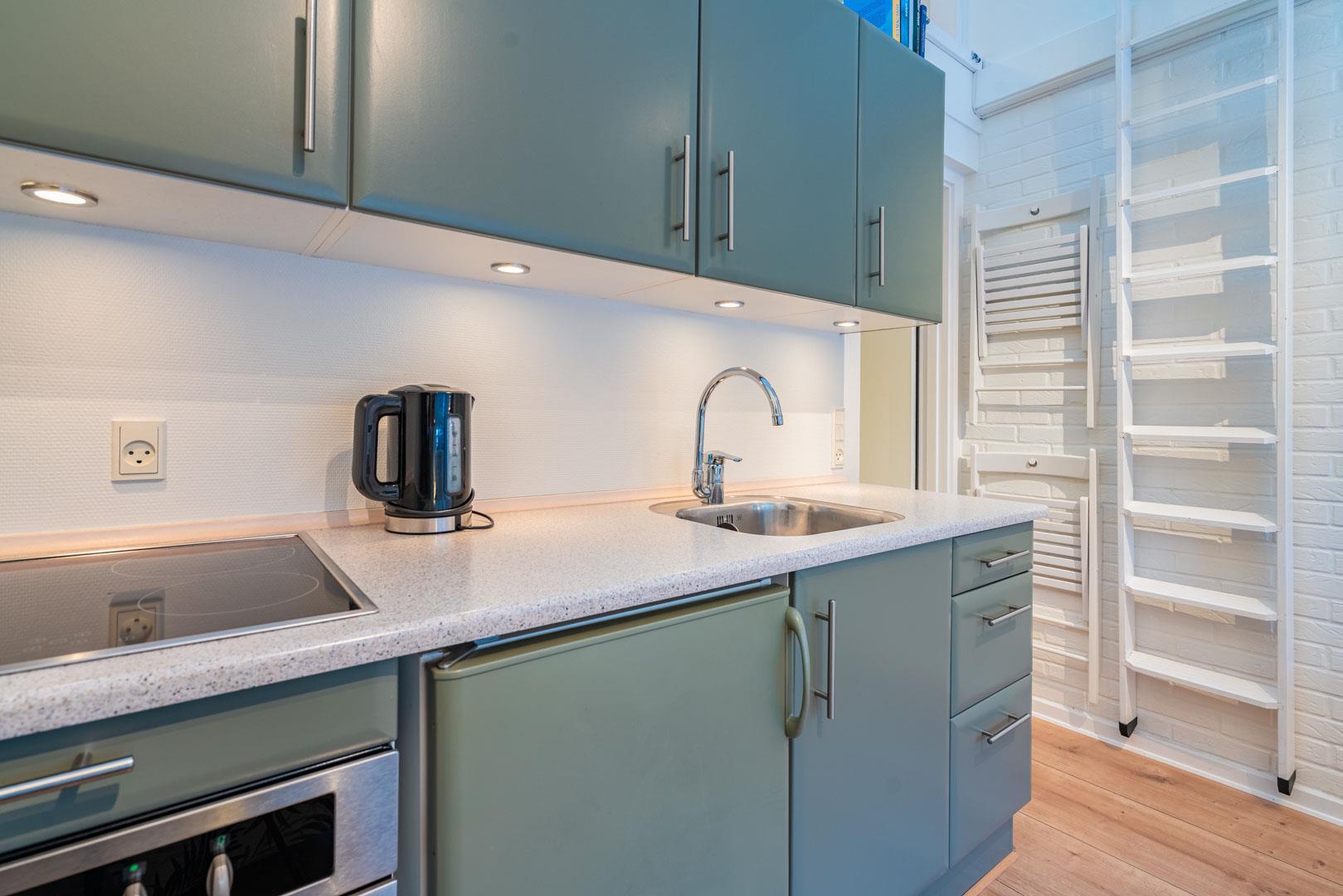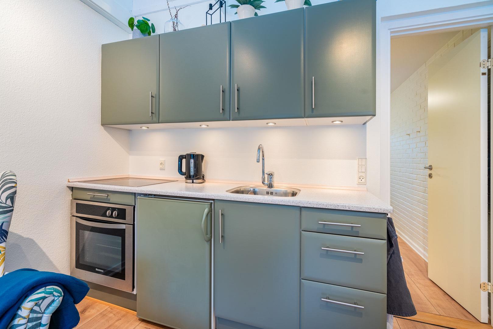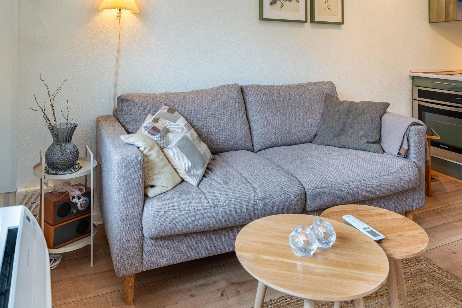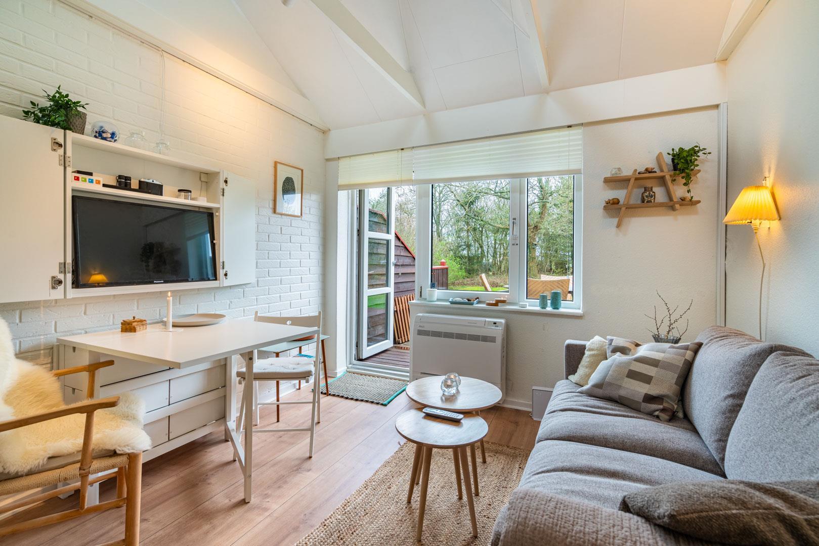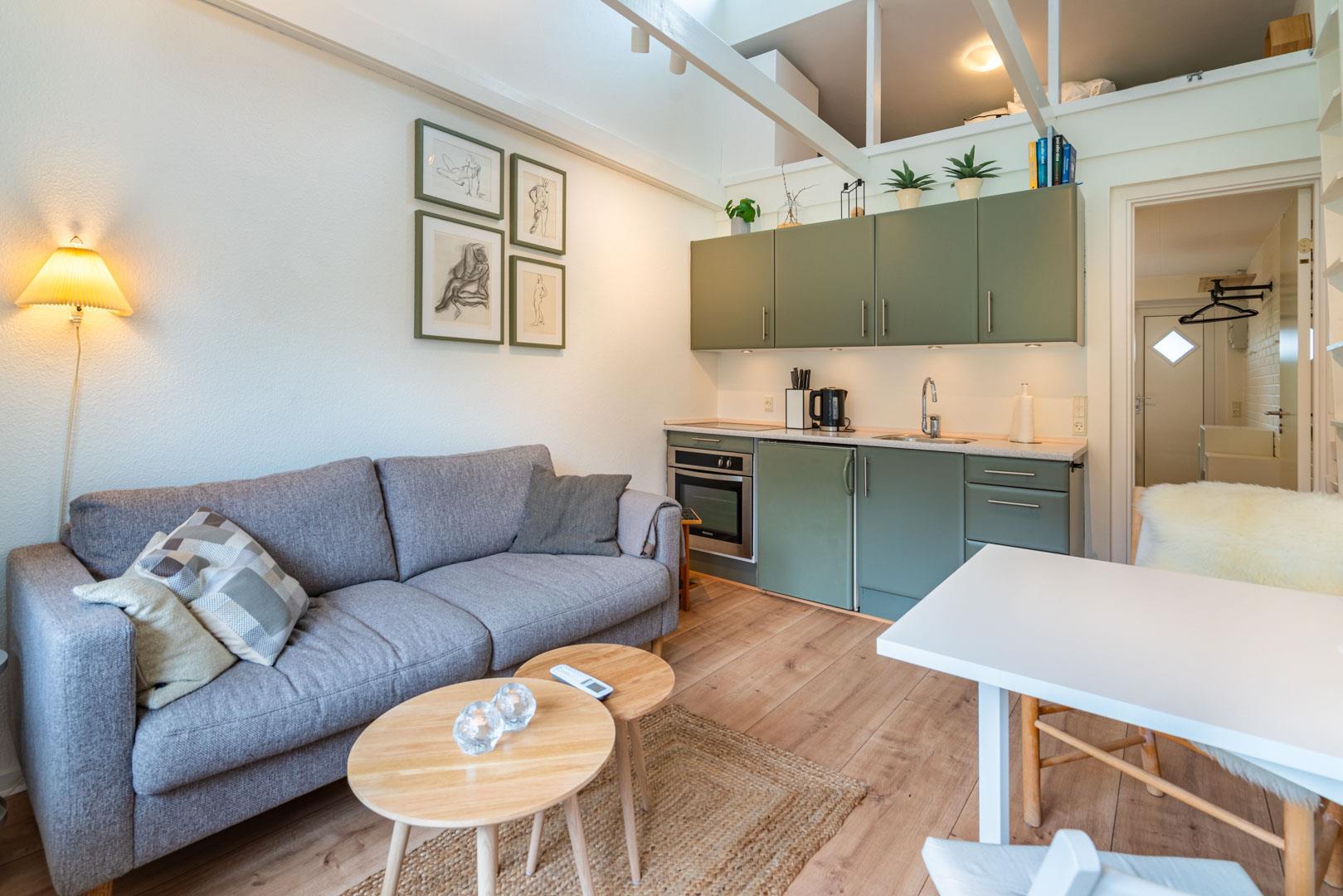 Velpasset, hyggeligt og lyst indrettet ferielejlighed opført i 2005. Der er lavet nyt badeværelse i 2024. Til lejligheden hører såvel overdækket terrasse samt en åben terrasse med havemøbler. Køkkenet ligger i forbindelse med spisestuen. Et soverum med dobbeltseng. Ferielejligheden ligger i et naturområde med gode muligheder for vandreture. Lejligheden ligger endvidere 2 minutters gang fra Henne Golfklub. Vesterhavet og Henne Strand med mange indkøbsmuligheder. I perioden fra påske til efterårsferien er der 200 m til campingpladsen, hvor der er lille købmandsbutik.