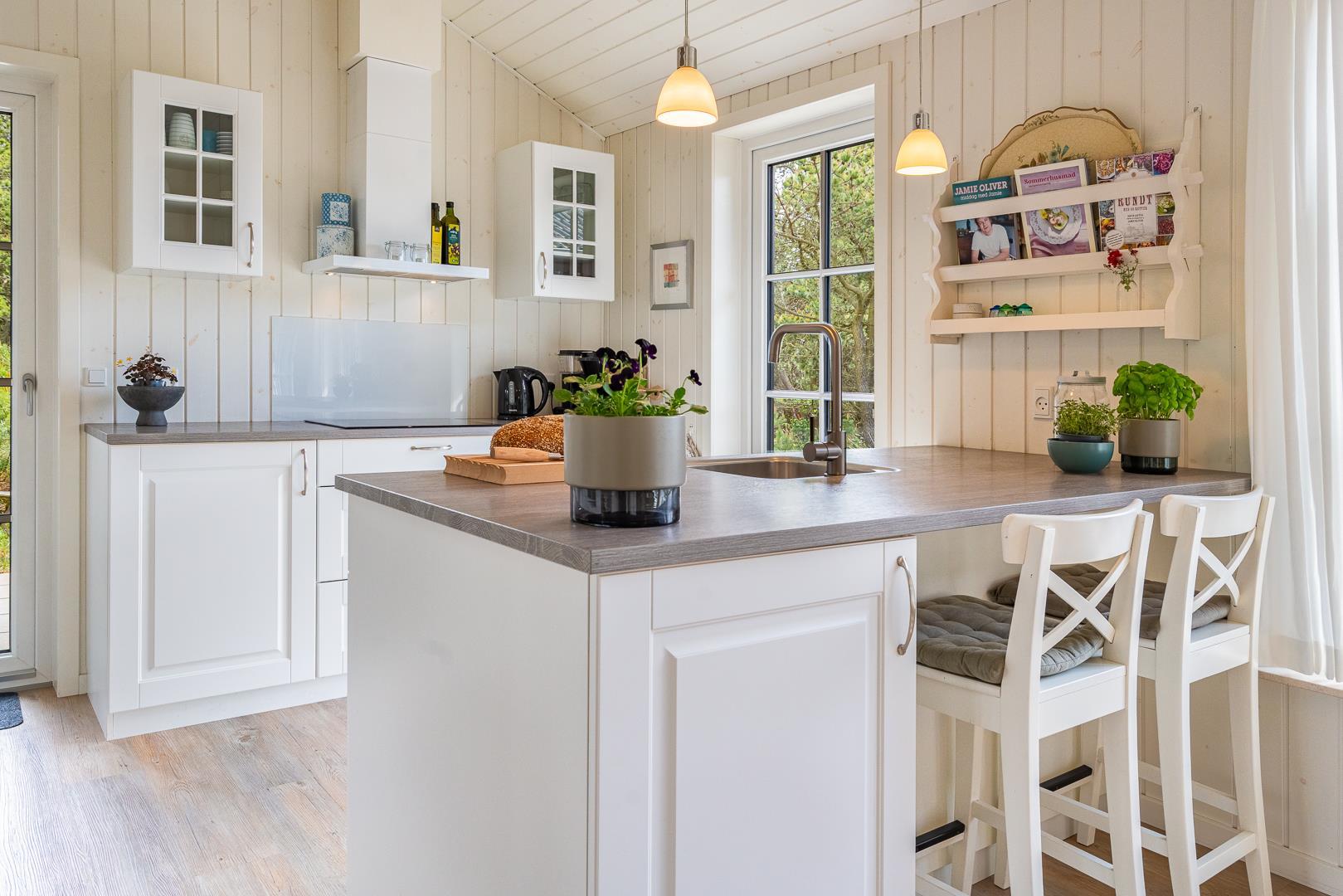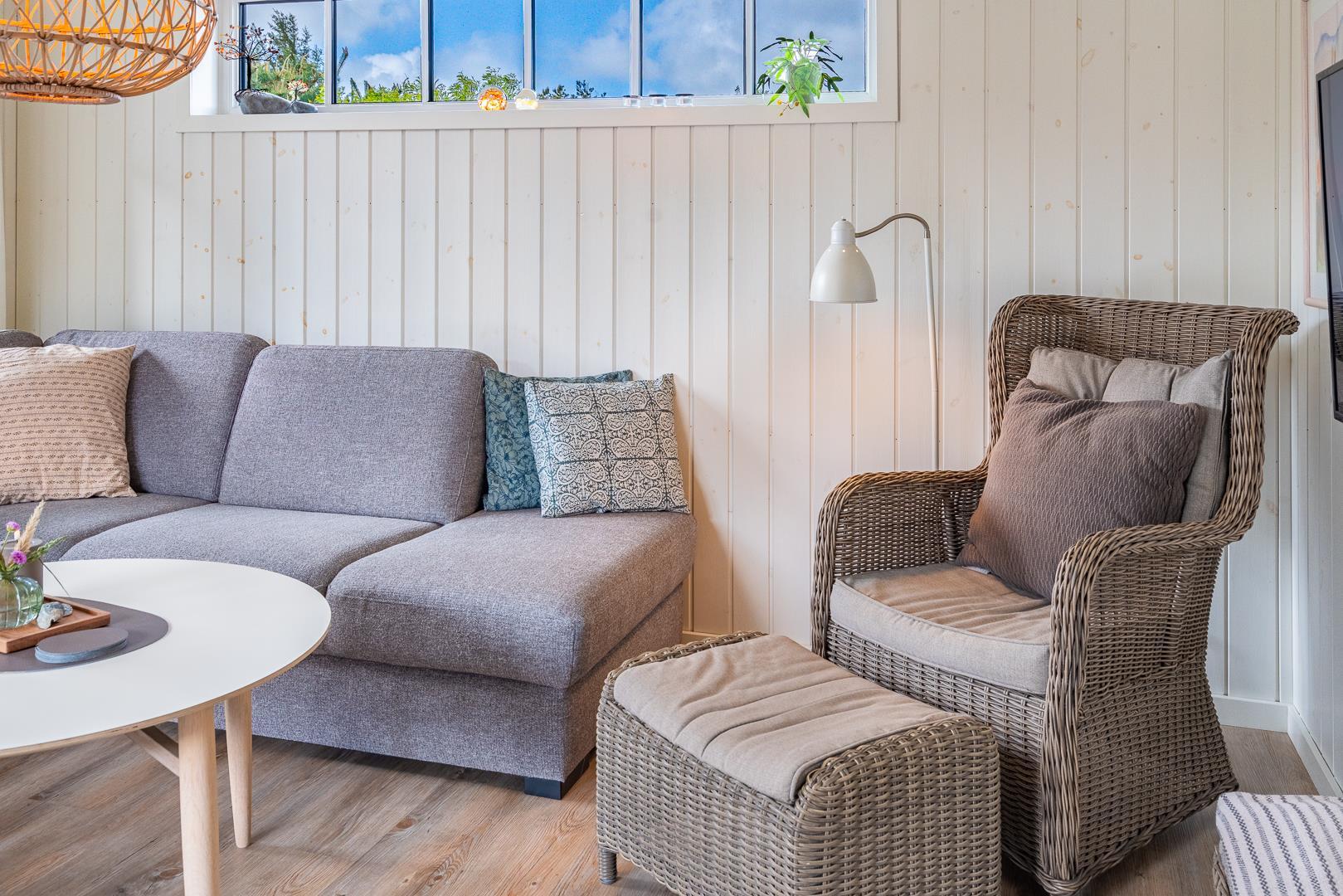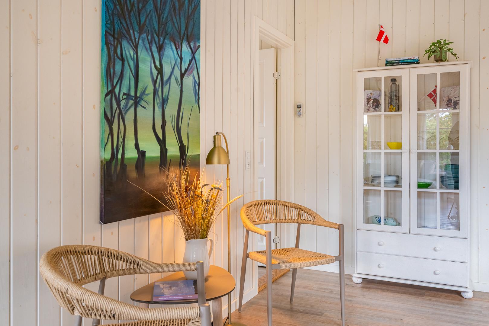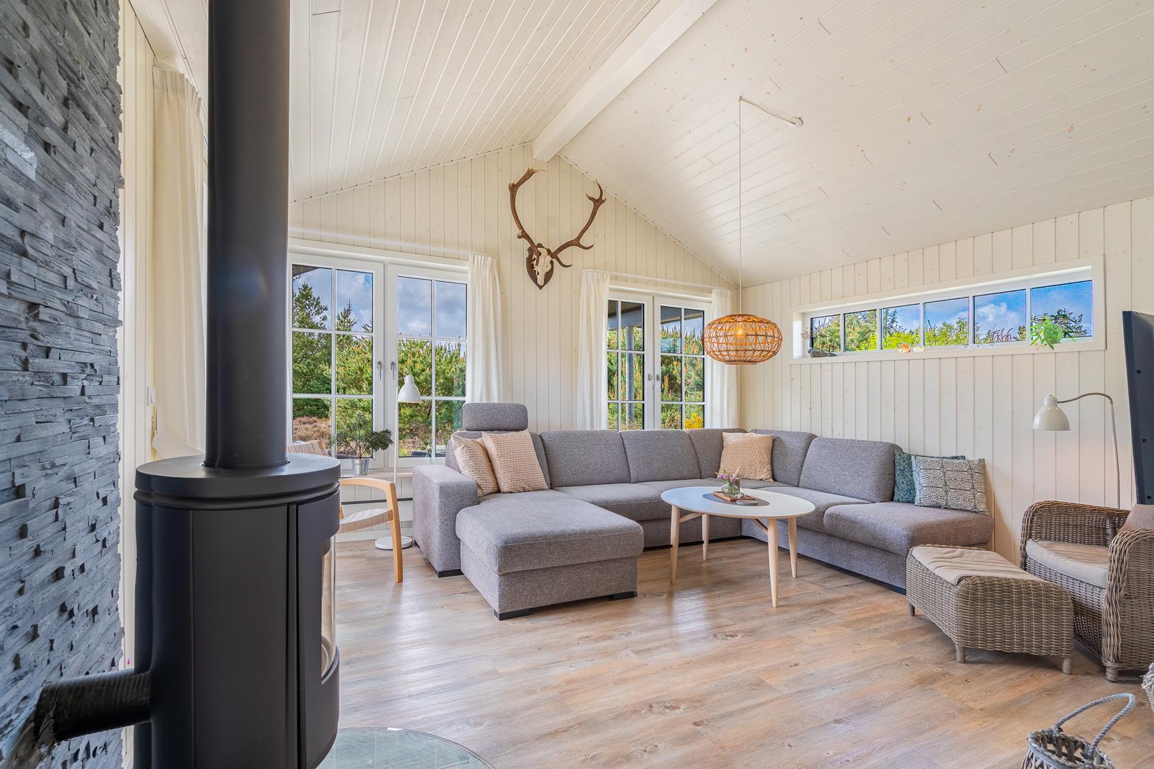 Stuen har også brændeovn til de kølige hyggeaftener, og har I lyst til at flade lidt ud foran fjernsynet, kan I tænde for Chromecasten og se videre på jeres yndlingsserie eller blot vælge imellem udvalget af danske og tyske kanaler.