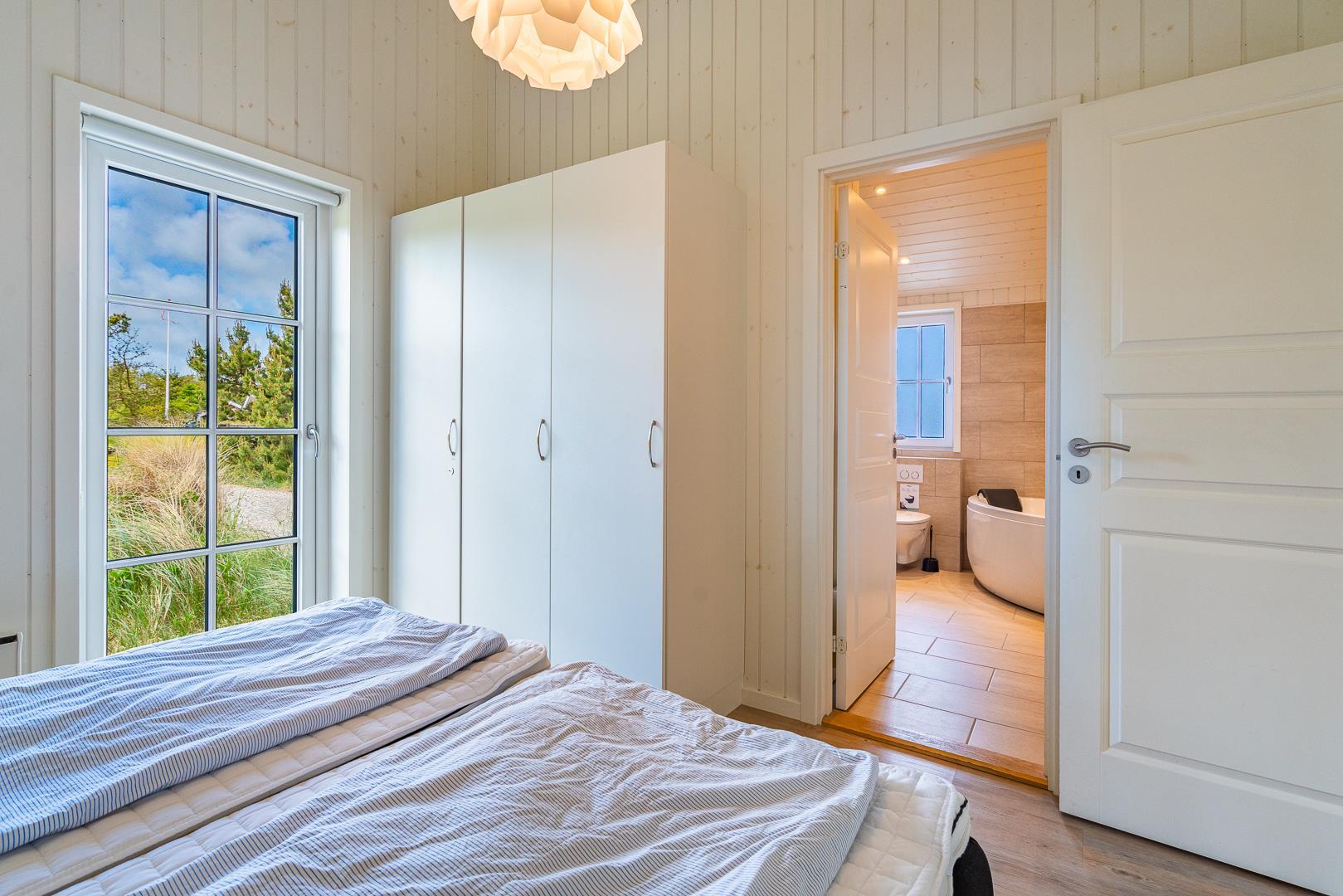 Hennes kridhvide sandstrand, Lyngbos åbne, hedelandskab og Strandvejens hyggelige cafeer og butikker er blot nogle få af Hennes skønne seværdigheder og heldigvis er I helt tæt på hele herligheden, når I holder ferie i dette dejlige sommerhus, der ligger 500 meter fra stranden og blot et par hundrede meter længere fra Strandvejen.
