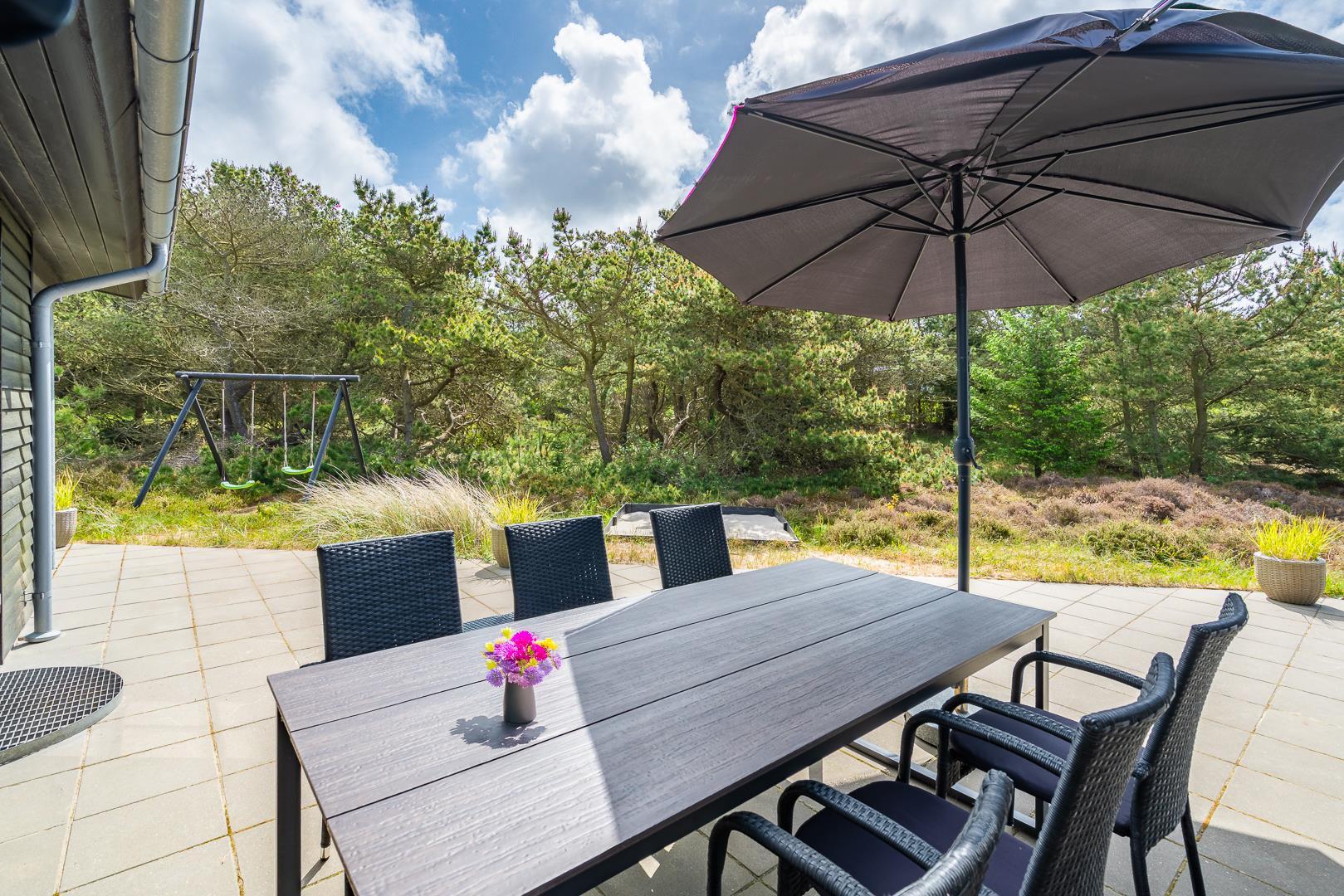 Mange ferietimer kan foregå i det fri, når sommersolen skinner højt på den blå himmel. Læn jer blot tilbage i de lækre havemøbler med en god bog på den delvist overdækket terrasse, og der er også åbne terrasseområder, hvis I nyder at ligge i solen.