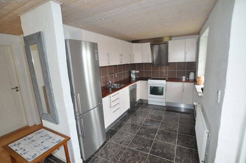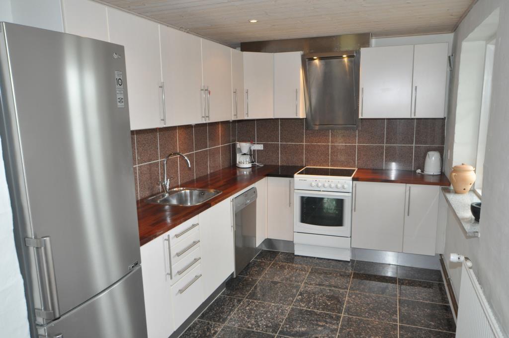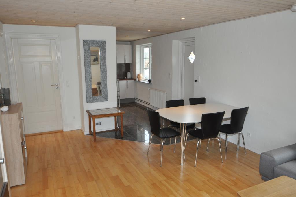 Lejligheden byder på et åbent køkken med alt, hvad du behøver for at tilberede lækre måltider, herunder keramisk komfur, emhætte, opvaskemaskine, køleskab og fryser. Køkkenet er i åben forbindelse med opholdsstuen, hvor der er et TV og et dejligt, hyggeligt miljø.