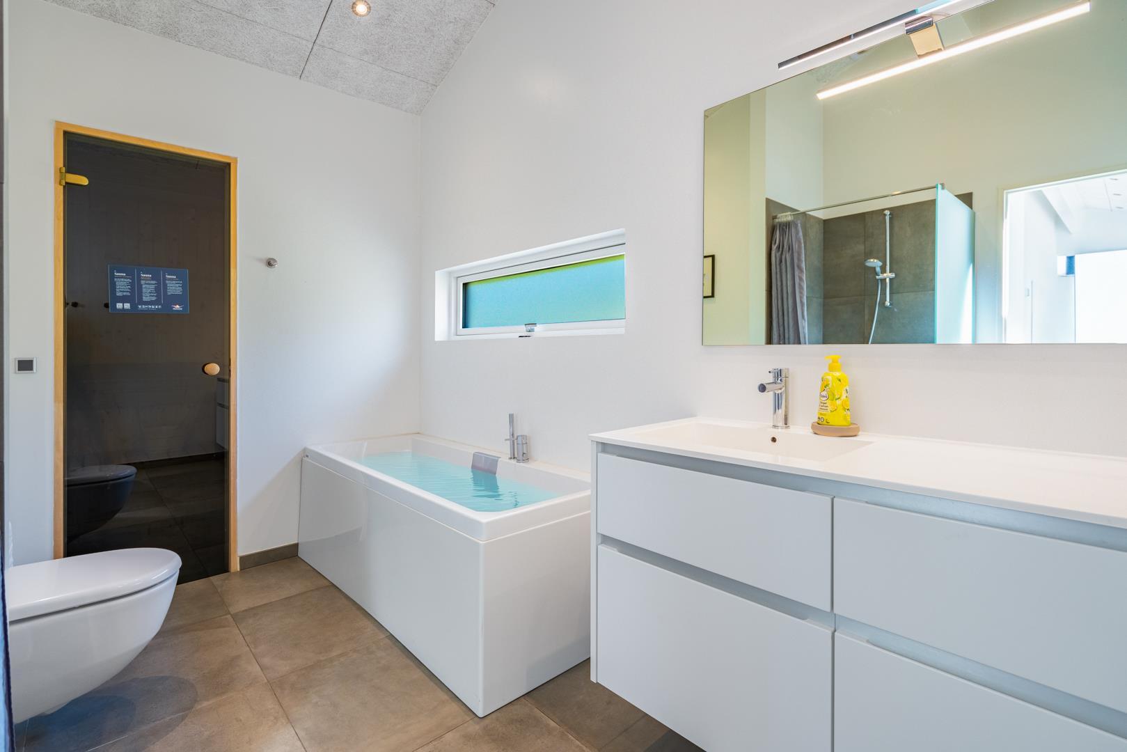 Huset har naturligvis vaskemaskine og tørretumbler, og en luft-til-vand-varmepumpe, hjælper med at holde energiniveauet i bund.