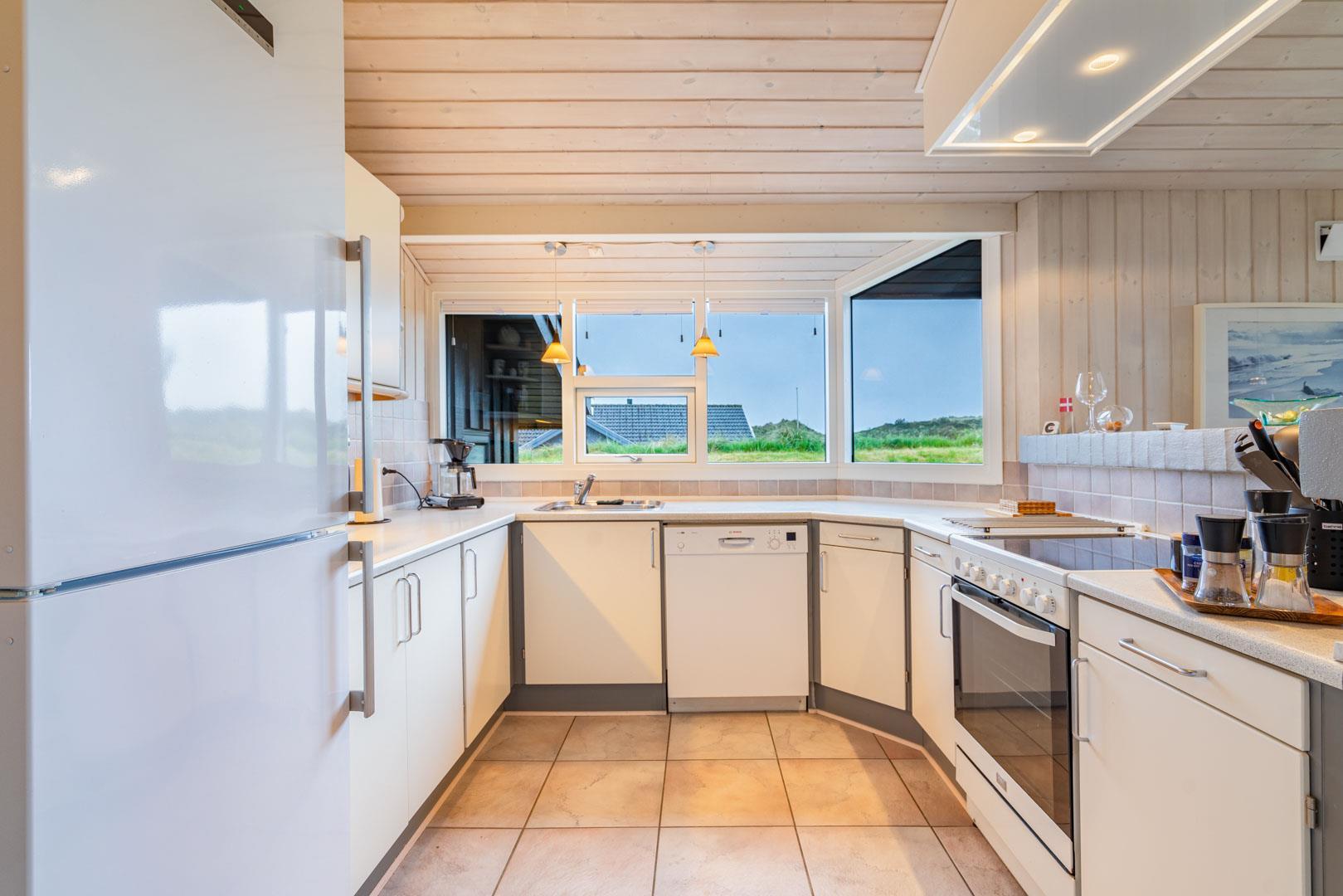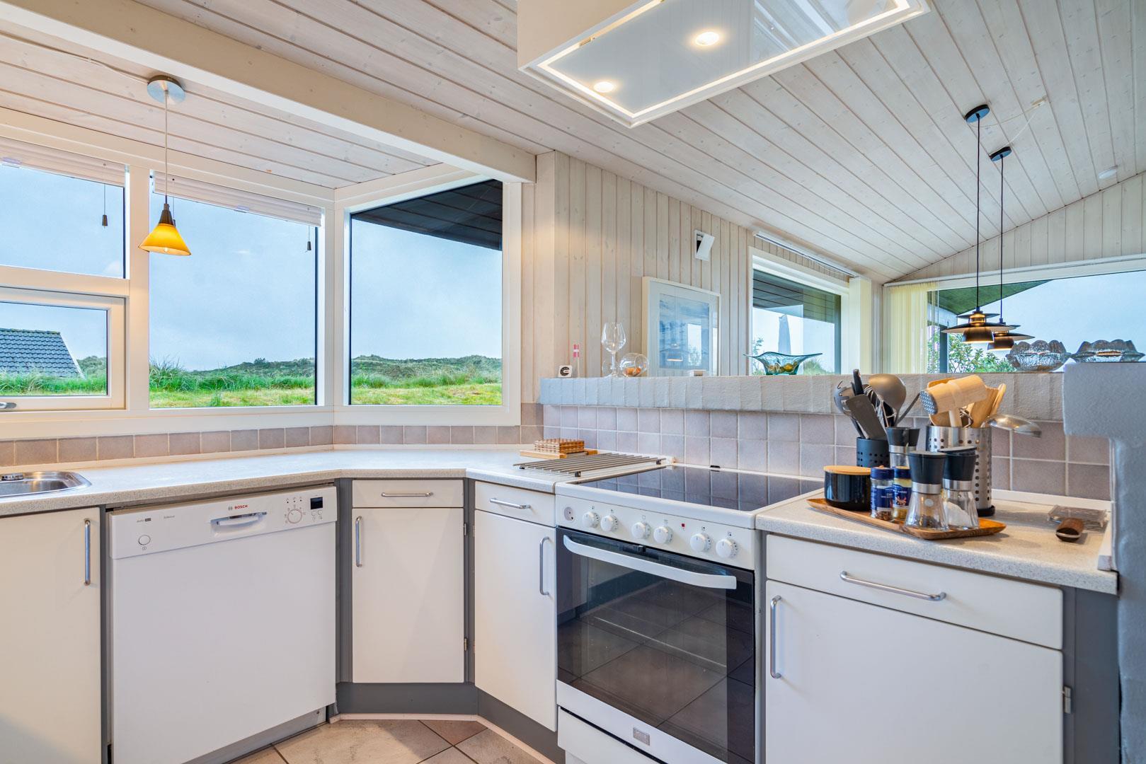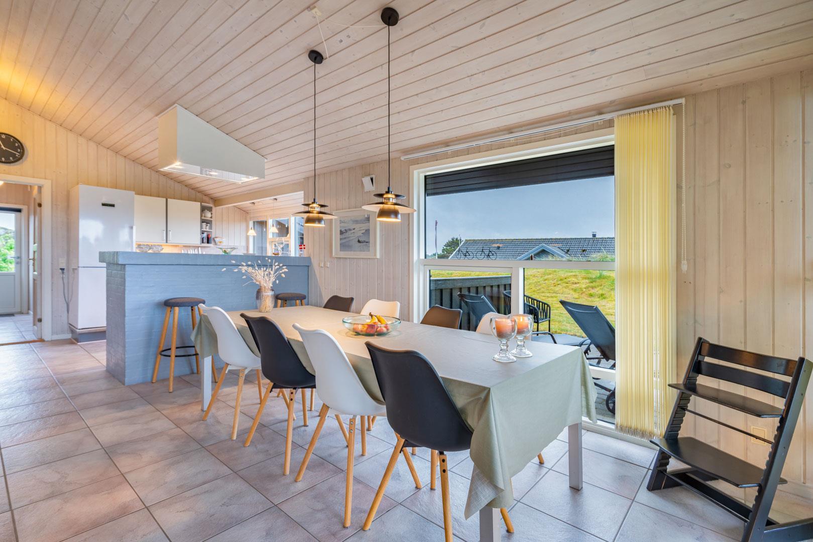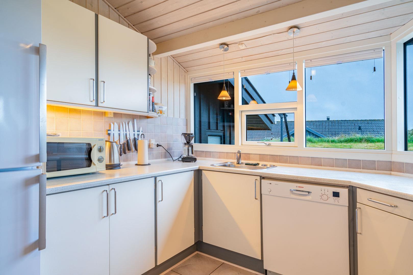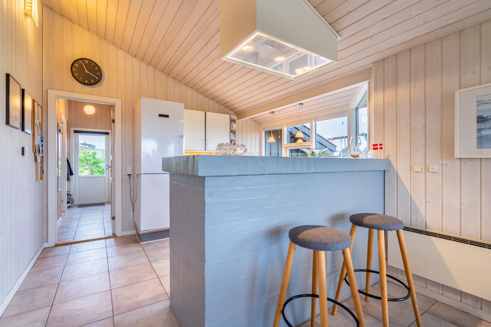 I stuen kan du hygge dig foran brændeovnen, der spreder varme og atmosfære, mens du nyder selskabet af familie og venner. Stuen flyder elegant sammen med køkken/alrummet, hvor du finder alt, hvad du behøver af moderne hårde hvidevarer til at tilberede lækre feriemåltider.