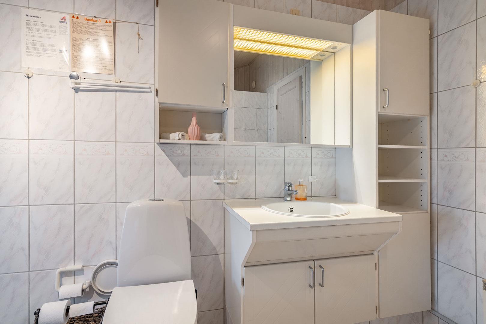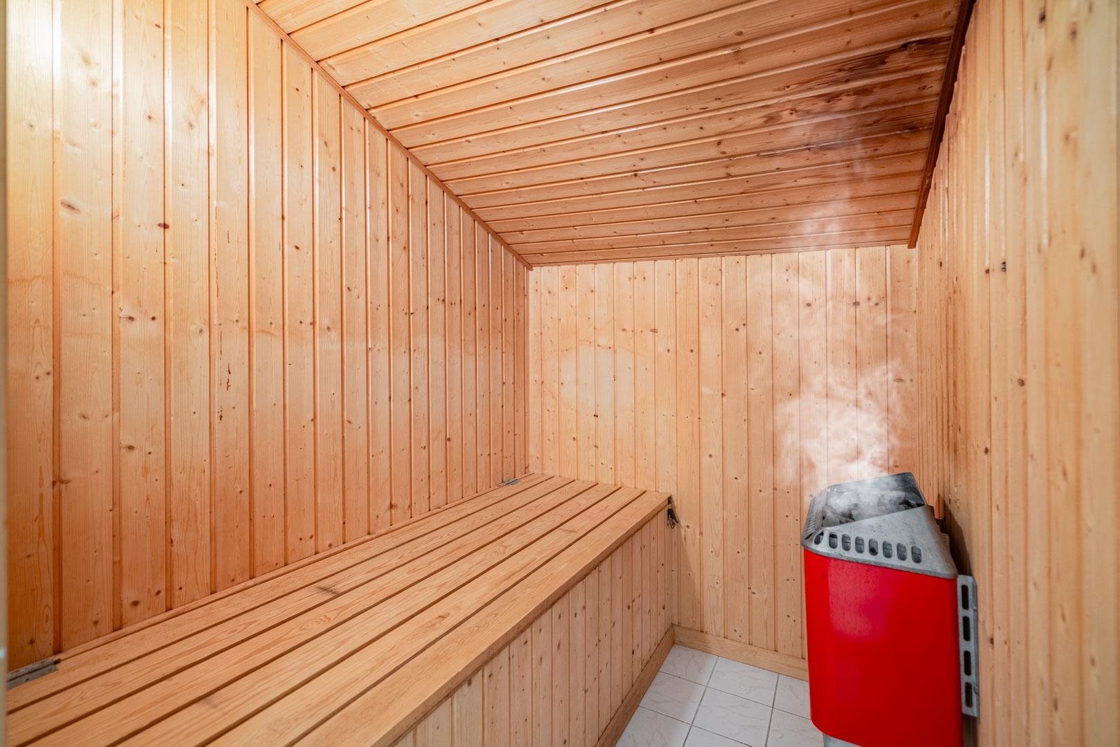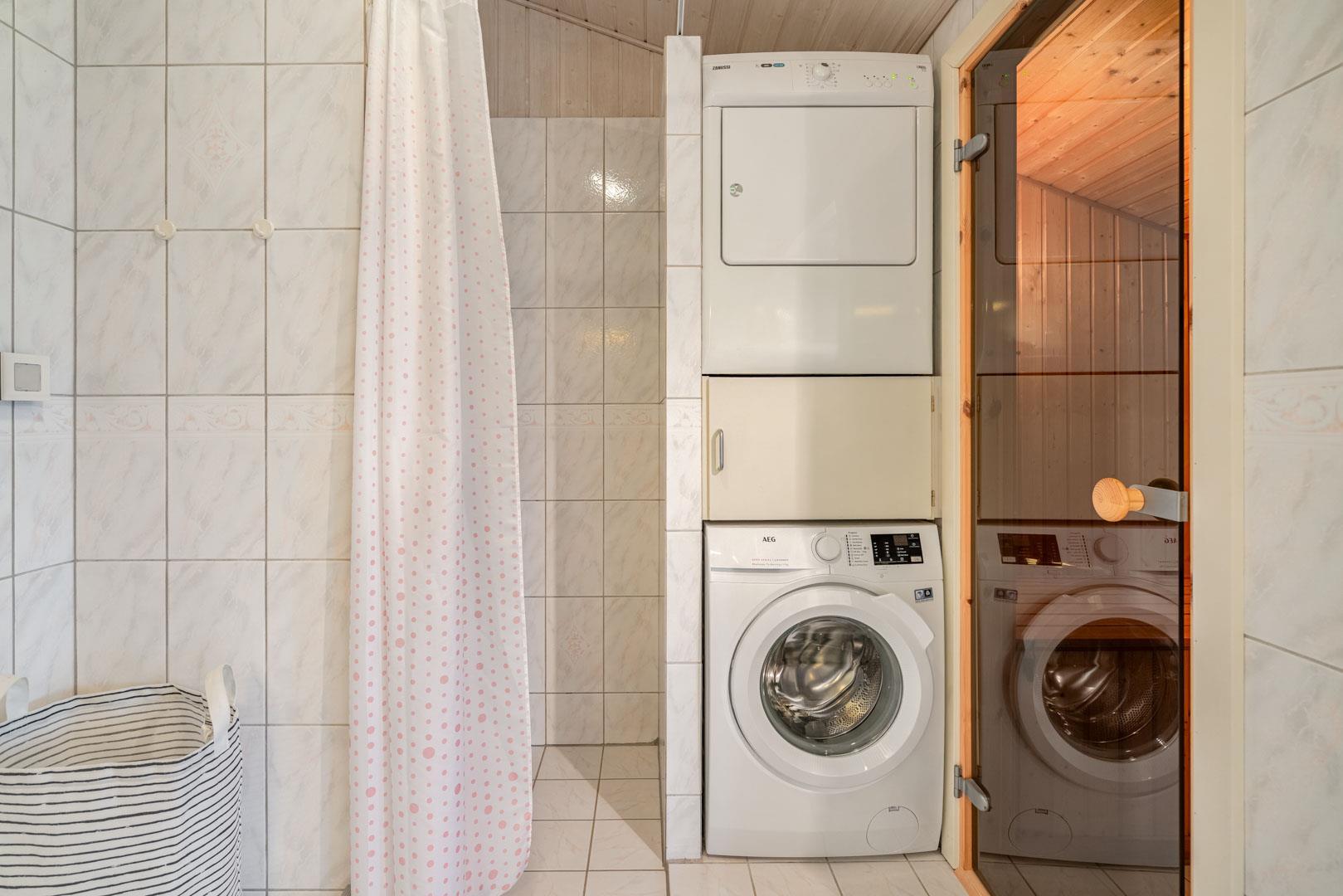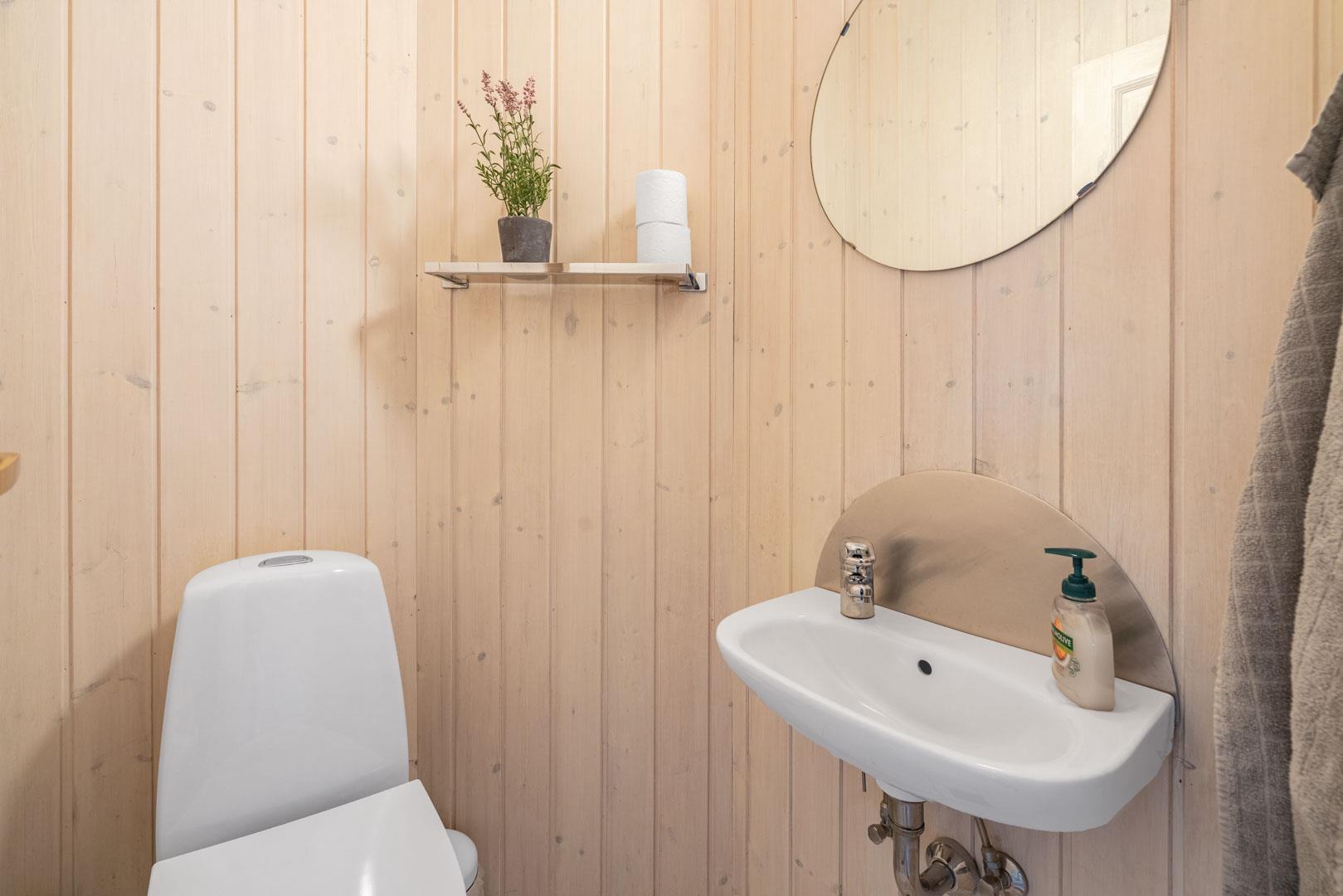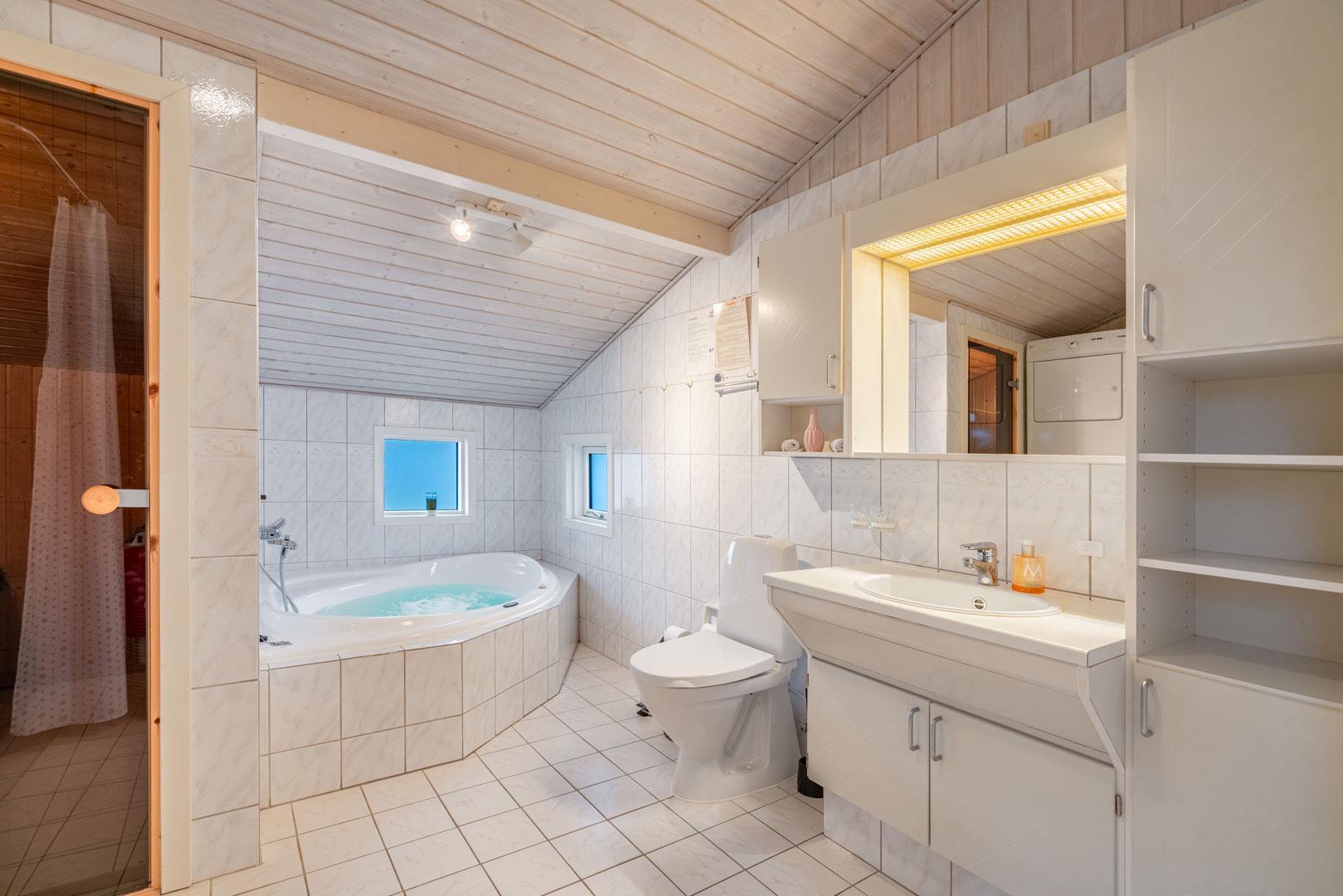 I sommerhuset er der et badeværelse og et ekstra toilet. Du har mulighed for at forkæle dig selv med lidt wellness i det dejlige store badeværelse, der er udstyret med både spa og sauna.