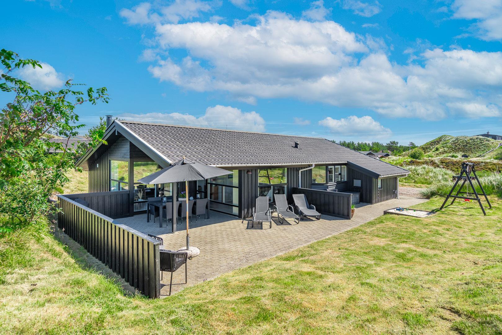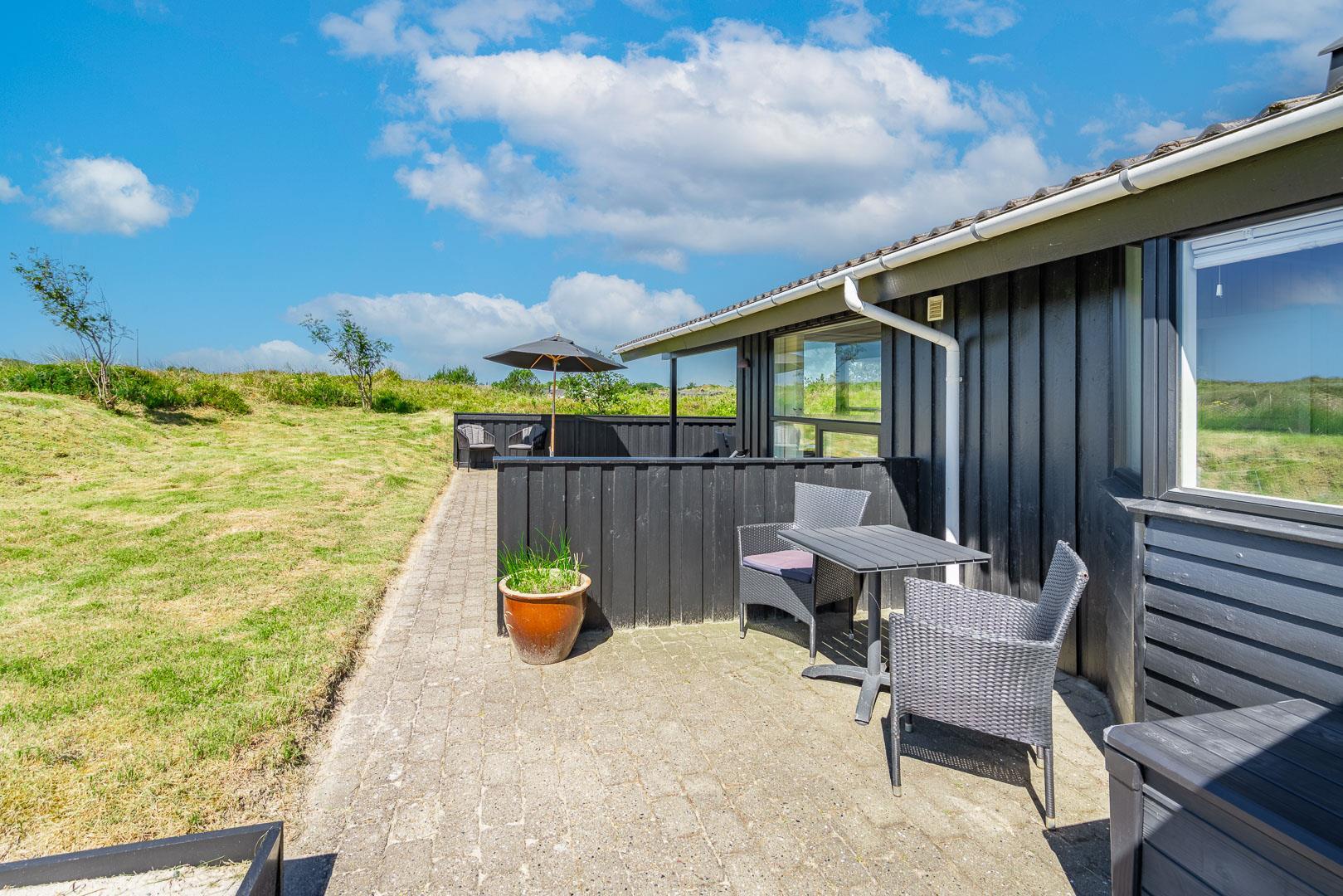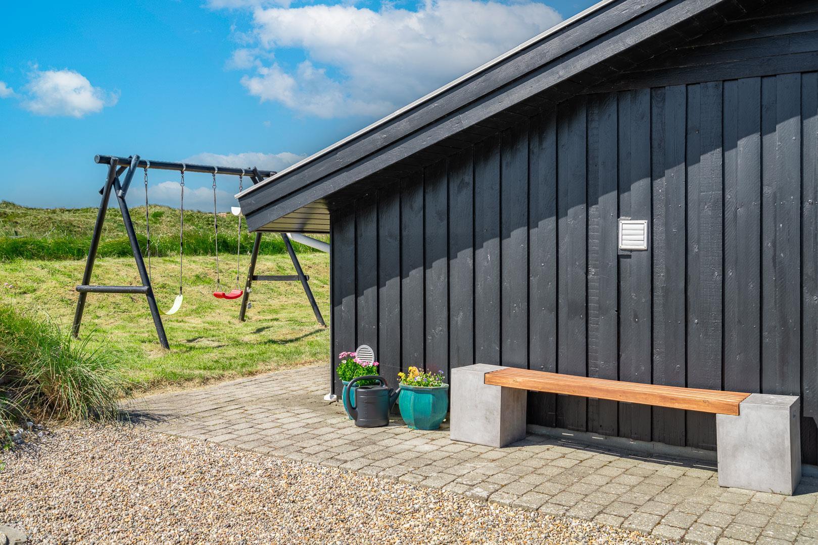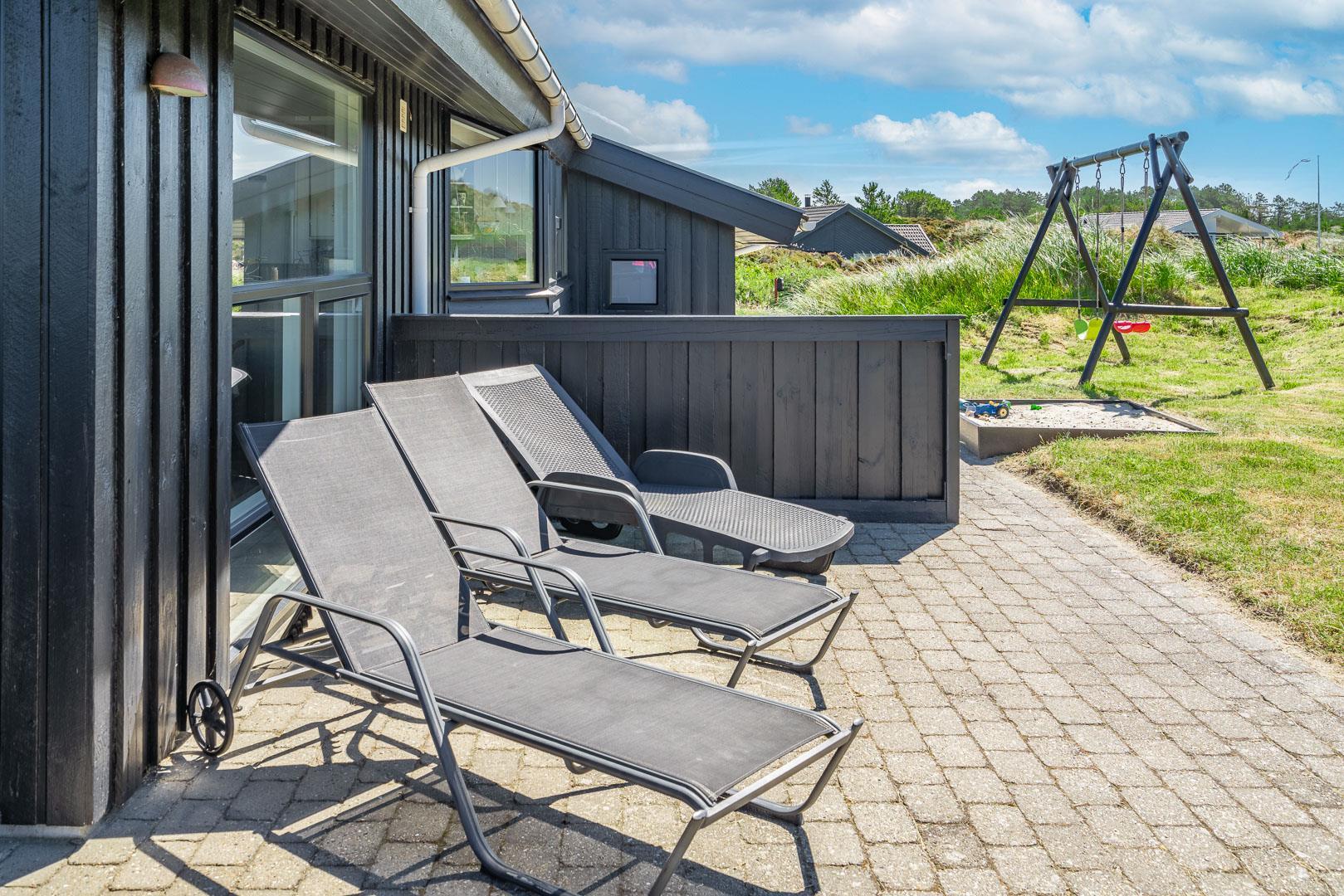 Udenfor venter endnu flere fornøjelser, med dejlige terrasser, havemøbler og liggestole til afslapning under åben himmel. Til de små feriegæster er der en sandkasse og et gyngestativ, der vil holde dem underholdt et godt stykke tid.